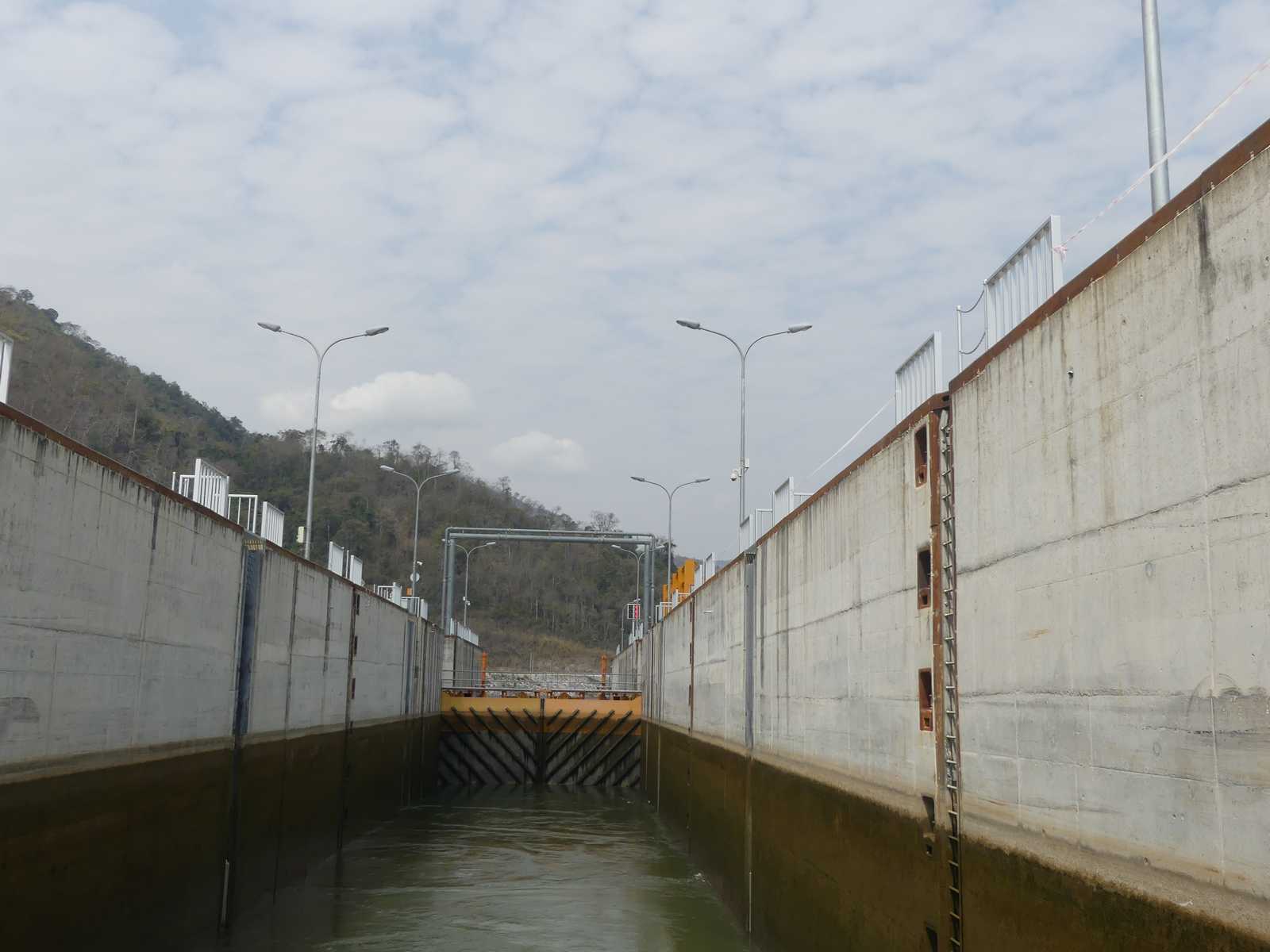 Notre guide (M. BounKong) me dit environ 1 heure (pour 30 mètres de dénivellé en 2 fois (2 écluses en faite)