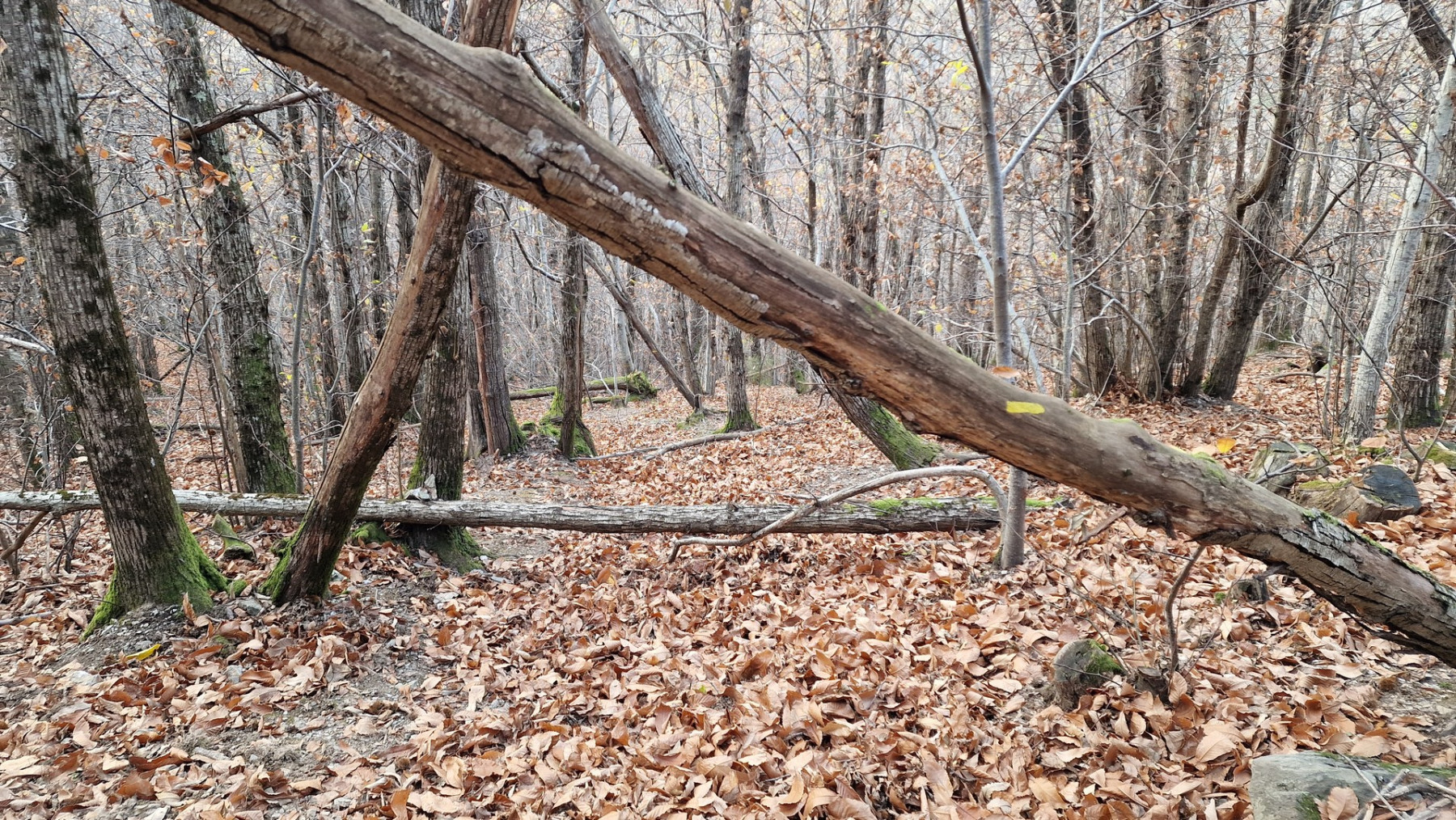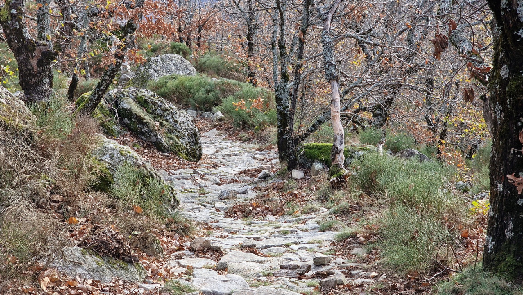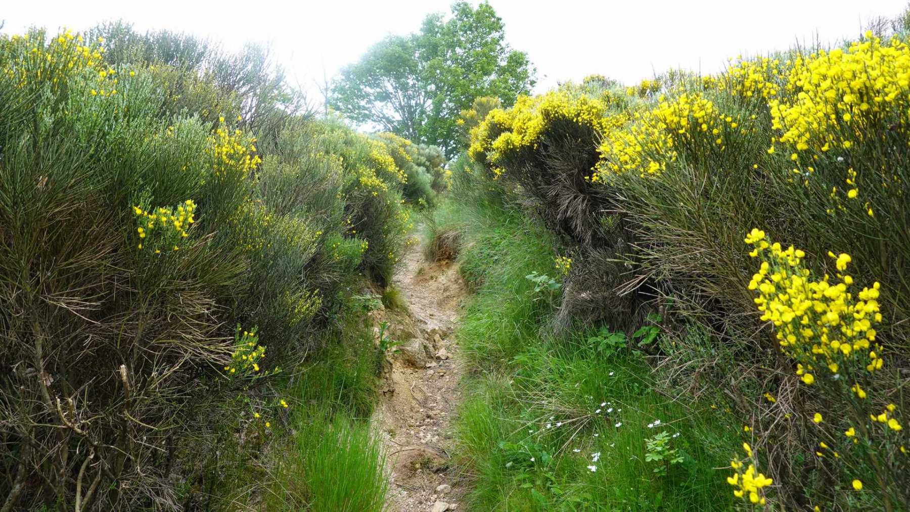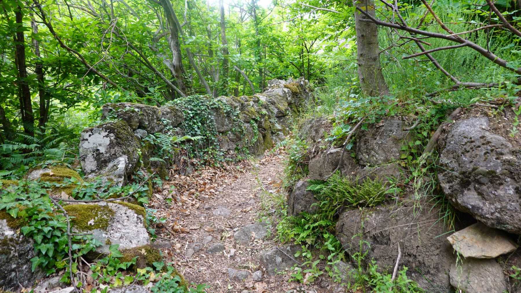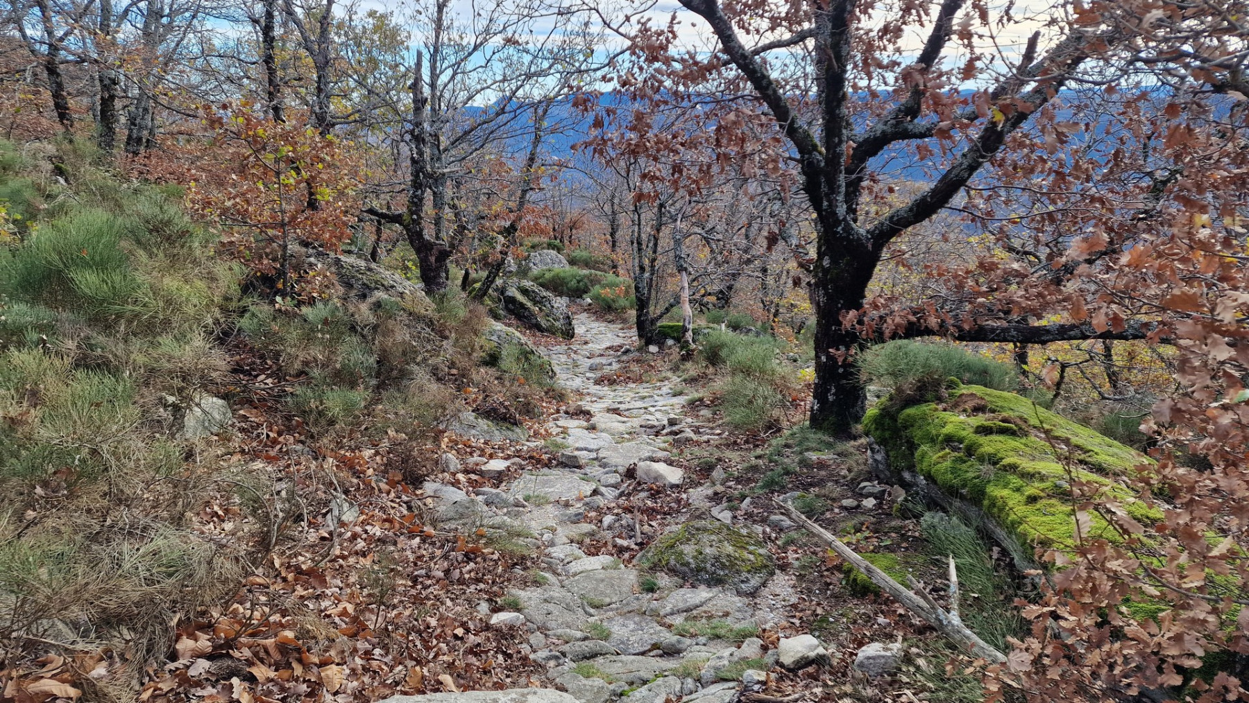 Bien que non VTTiste, je pense ne pas trop me tromper en vous disant que cela doit être sympa à faire en VTT : si l’on reprend ma carte en bas d’article avec le kilométrage, je dirais, de mémoire : passage le plus délicat un peu avant le Km 2 (juste avant le col) avec quelques “marches”, entre Km 3 et Km 4 le sentier (très beau) est quasiment caladé (mais ce n’est pas Paris-Roubaix) entre Km 4 à Km 8 piste ou sentier roulant, ainsi que toute la ligne de crête Km 8 à Km 11, la redescente en sentier Km 11 à Km 12 se fait en forêt avec un épais tapis de feuilles mais en dessous c’est plutôt de la terre, et pour finir la fin du parcours se fait sur l’ancienne voie de chemin de fer (sans rails et traverses avec un ballast de mémoire assez tassé !).
