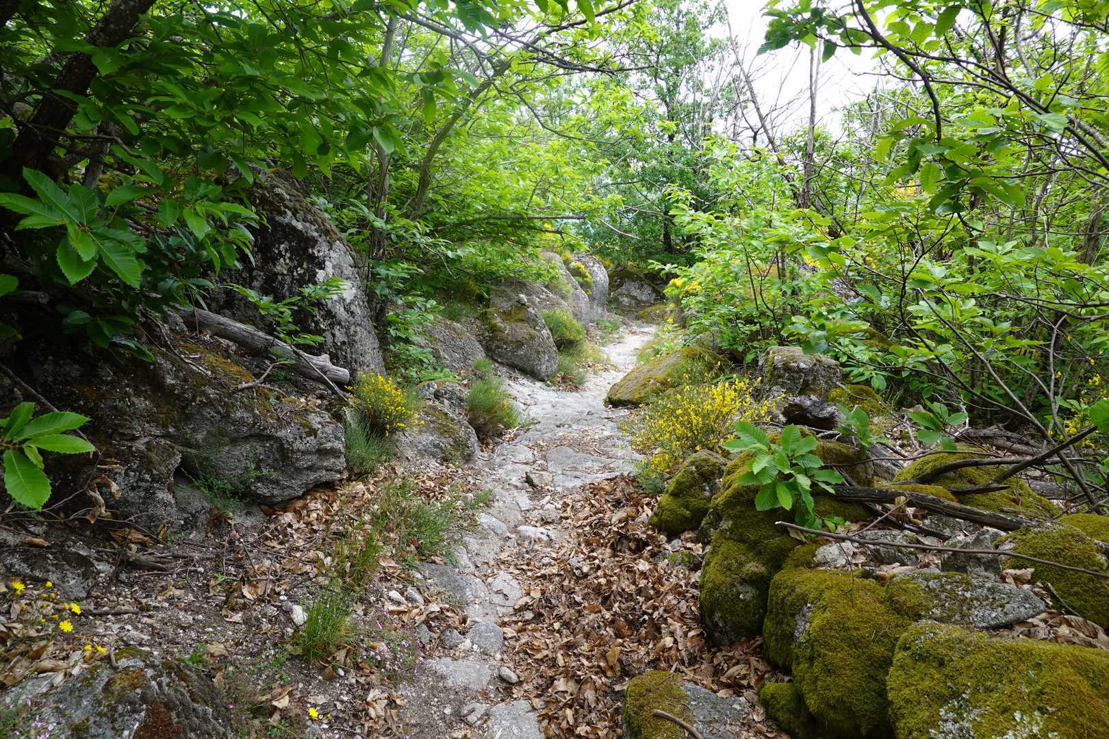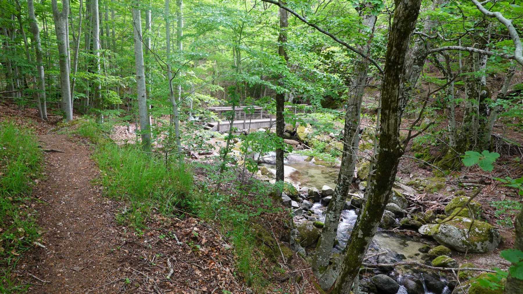 – une ascension sur de petits sentiers en forêt, rafraîchi par le doux bruit du torrent tout proche.