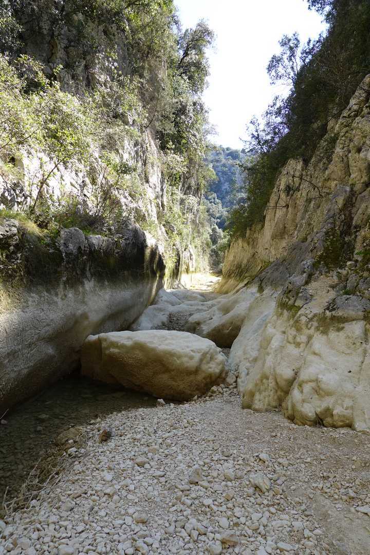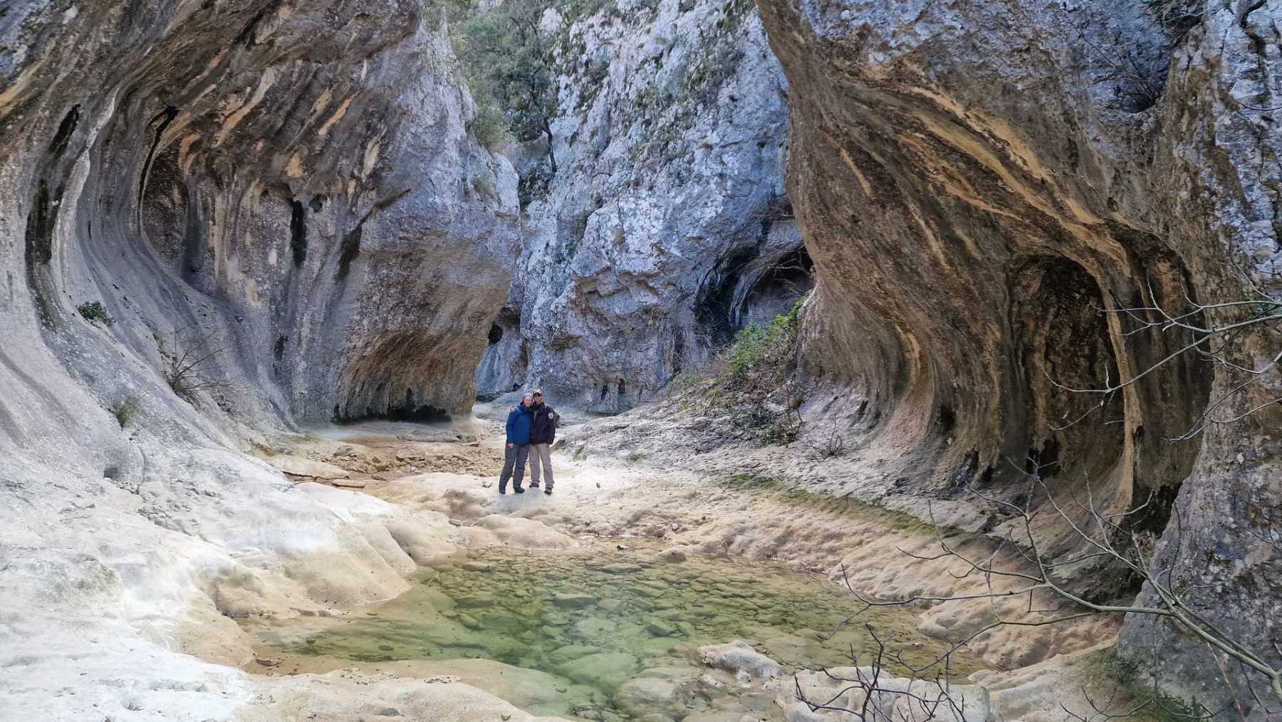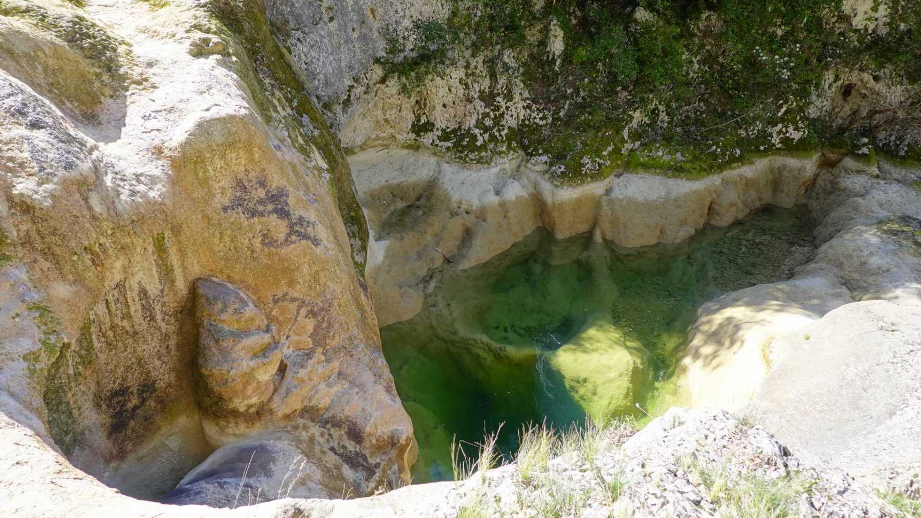 – Progression dans 2 gorges d’anciens cours d’eau : le Merderis et surtout l’Aiguillon (gorges très profondes, imposantes),