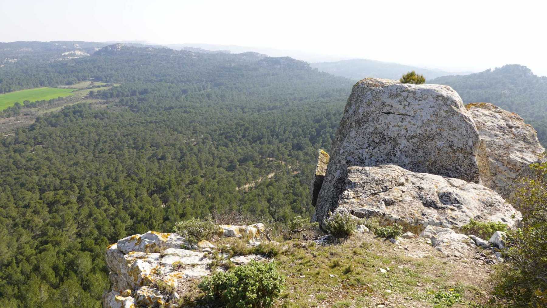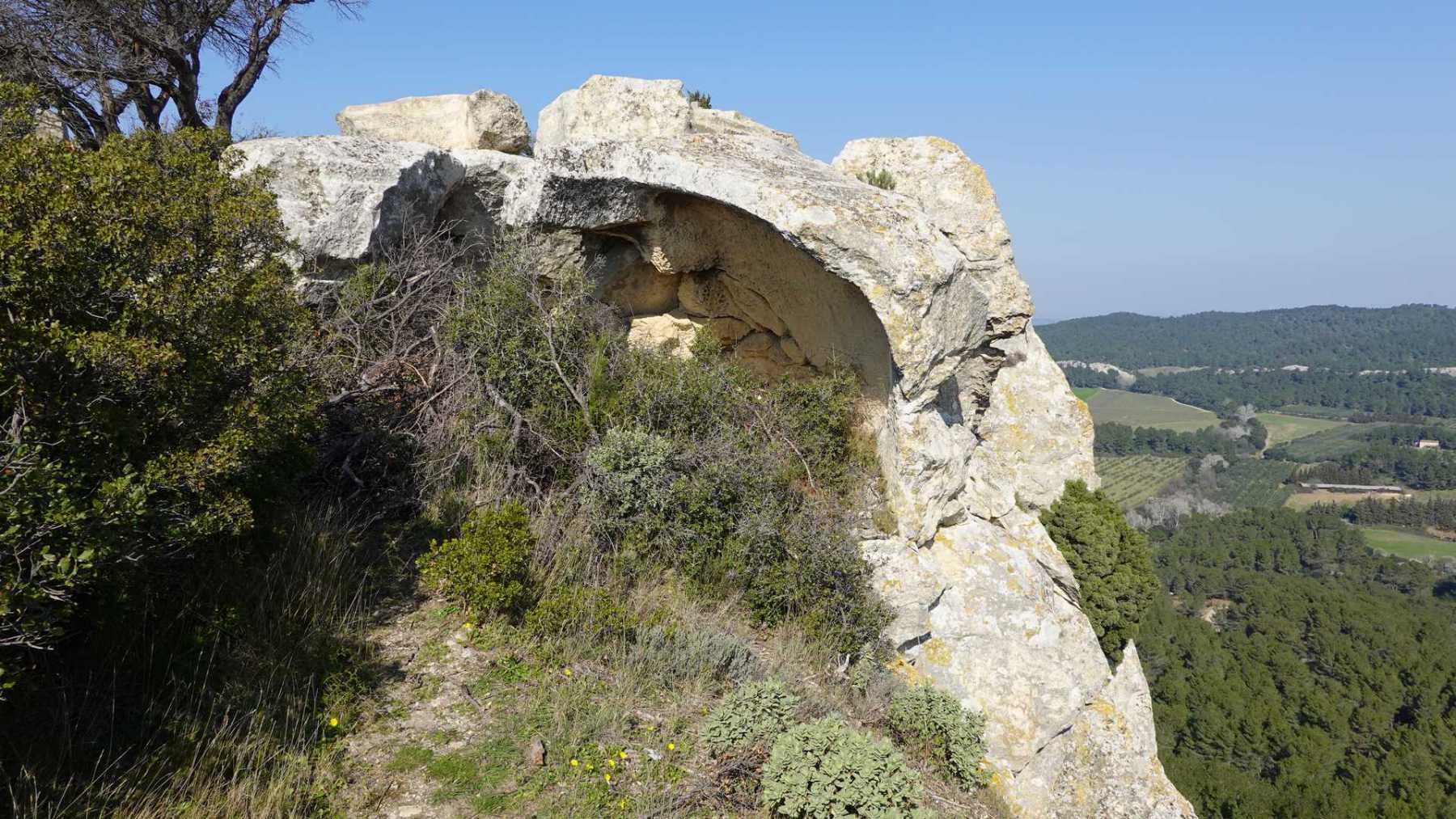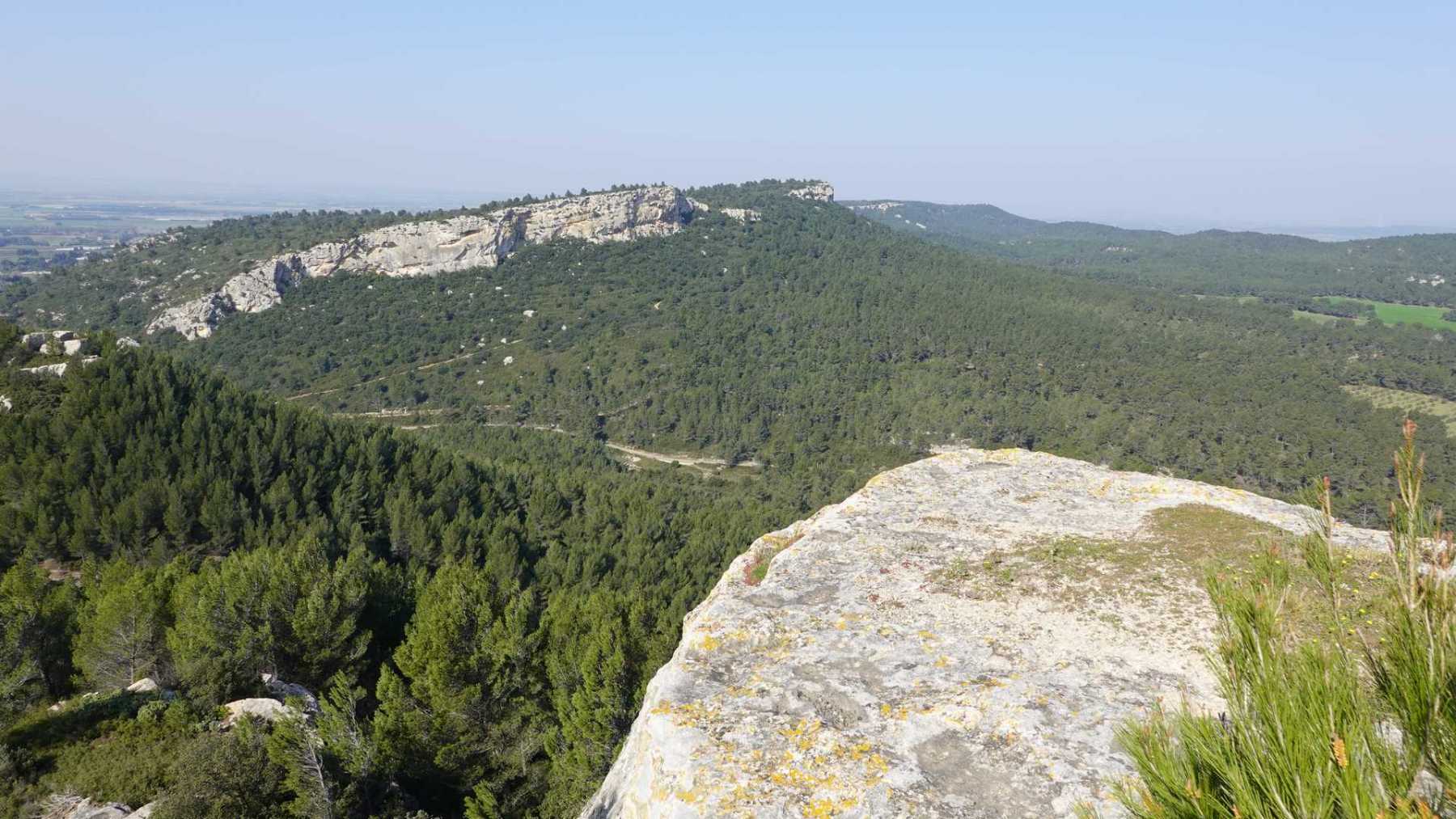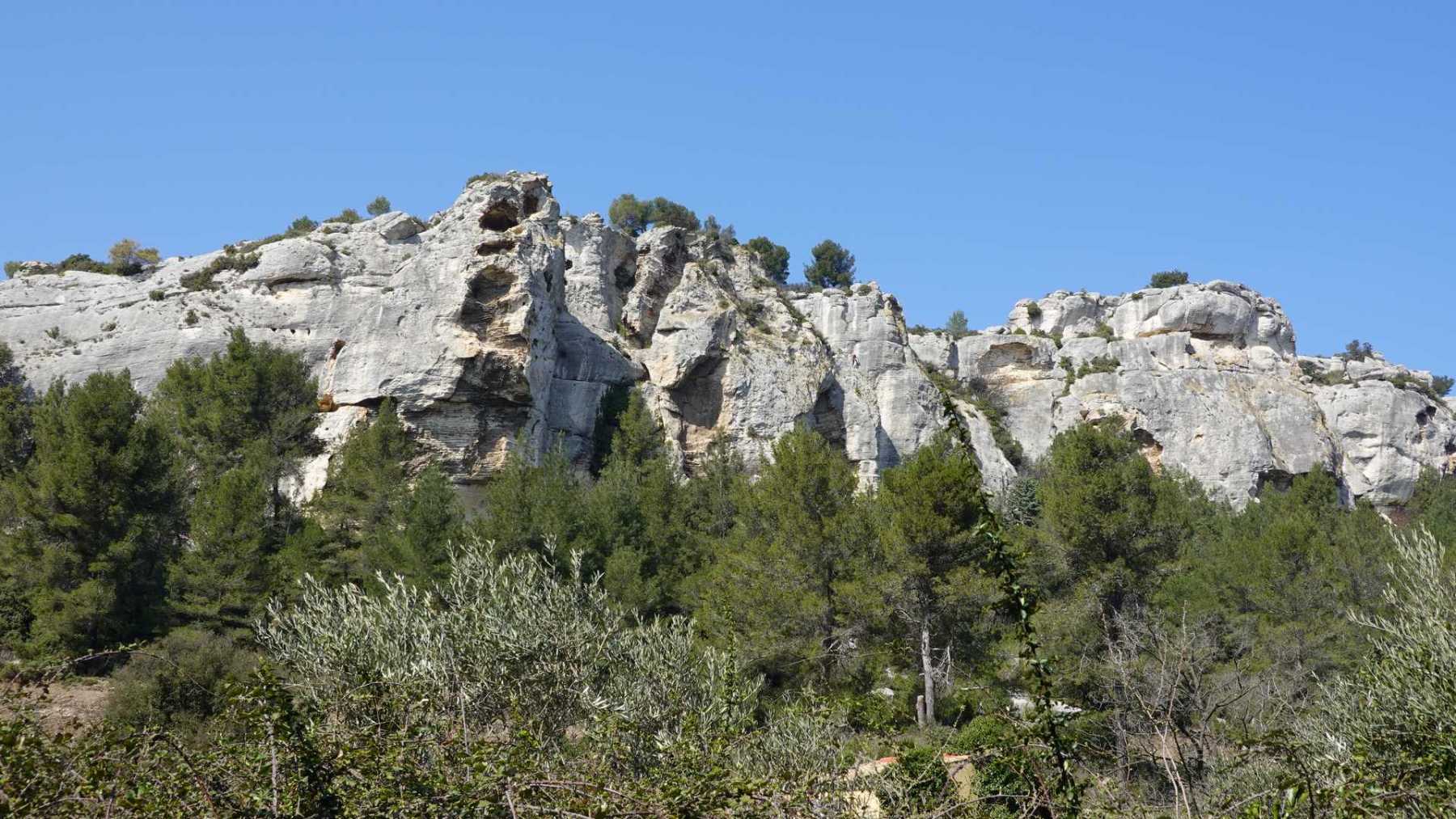 - Commentaires : Bien que proposant de nombreuses portions parallèles très rapprochées, ce parcours est une boucle aux paysages de Provence très variés : Nombreuses oliveraies, vignes, mais aussi immenses serres ( ! ), sentiers le long de canaux d’irrigation très agréables, massifs rocheux contreforts ouest des Alpilles et belle garrigue. Avec 2 spots remarquables : le castrum du Mont Paon et le vallon de la Lèque avec ses imposantes falaises du haut desquelles on bénéficie, comme du sommet du mont Paon d’une magnifique vue sur la région. A noter que le sommet proposé dans le vallon de la Lèque n’est d’aucun intérêt (aucune vue et la tour de guet est une tour moderne de surveillance pour les incendies).