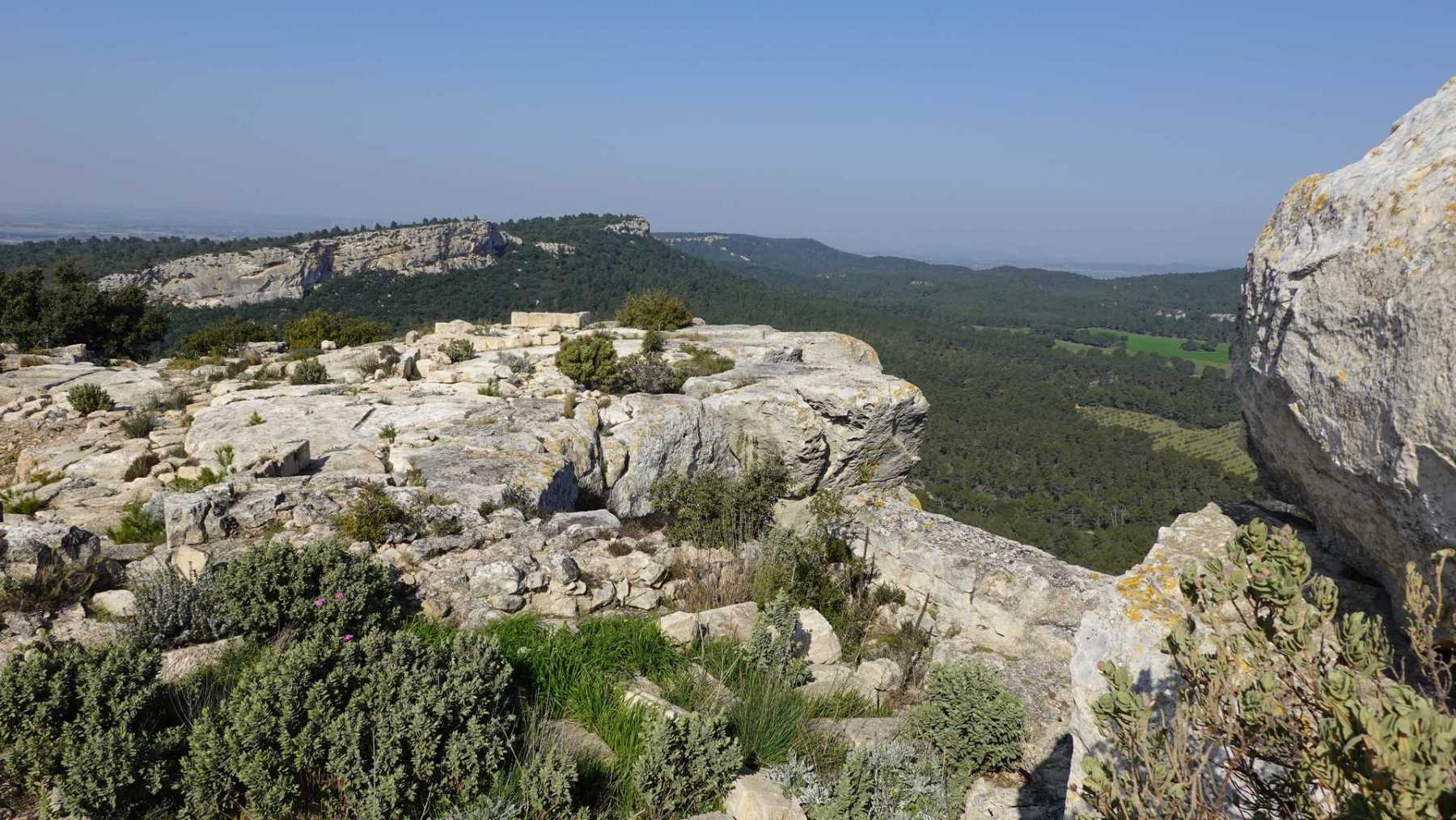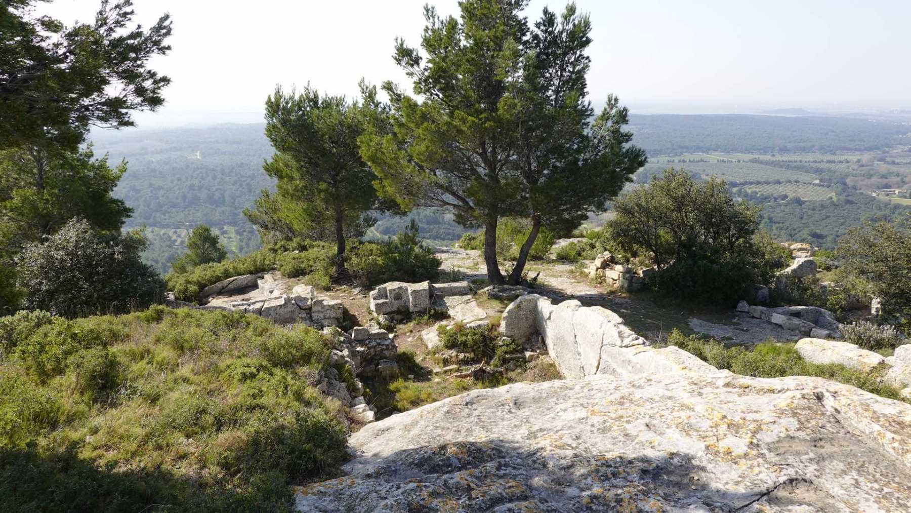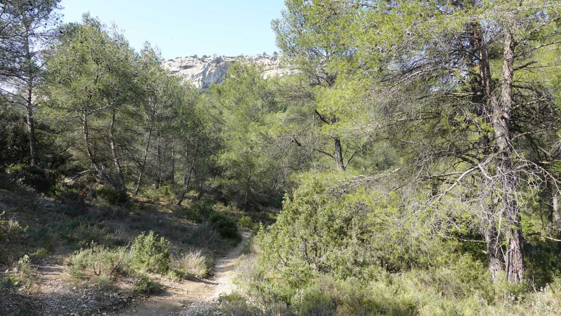 - Commentaires : Bien que proposant de nombreuses portions parallèles très rapprochées, ce parcours est une boucle aux paysages de Provence très variés : Nombreuses oliveraies, vignes, mais aussi immenses serres ( ! ), sentiers le long de canaux d’irrigation très agréables, massifs rocheux contreforts ouest des Alpilles et belle garrigue. Avec 2 spots remarquables : le castrum du Mont Paon et le vallon de la Lèque avec ses imposantes falaises du haut desquelles on bénéficie, comme du sommet du mont Paon d’une magnifique vue sur la région. A noter que le sommet proposé dans le vallon de la Lèque n’est d’aucun intérêt (aucune vue et la tour de guet est une tour moderne de surveillance pour les incendies).