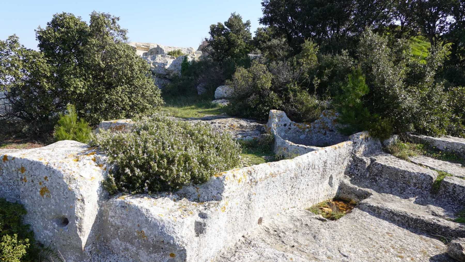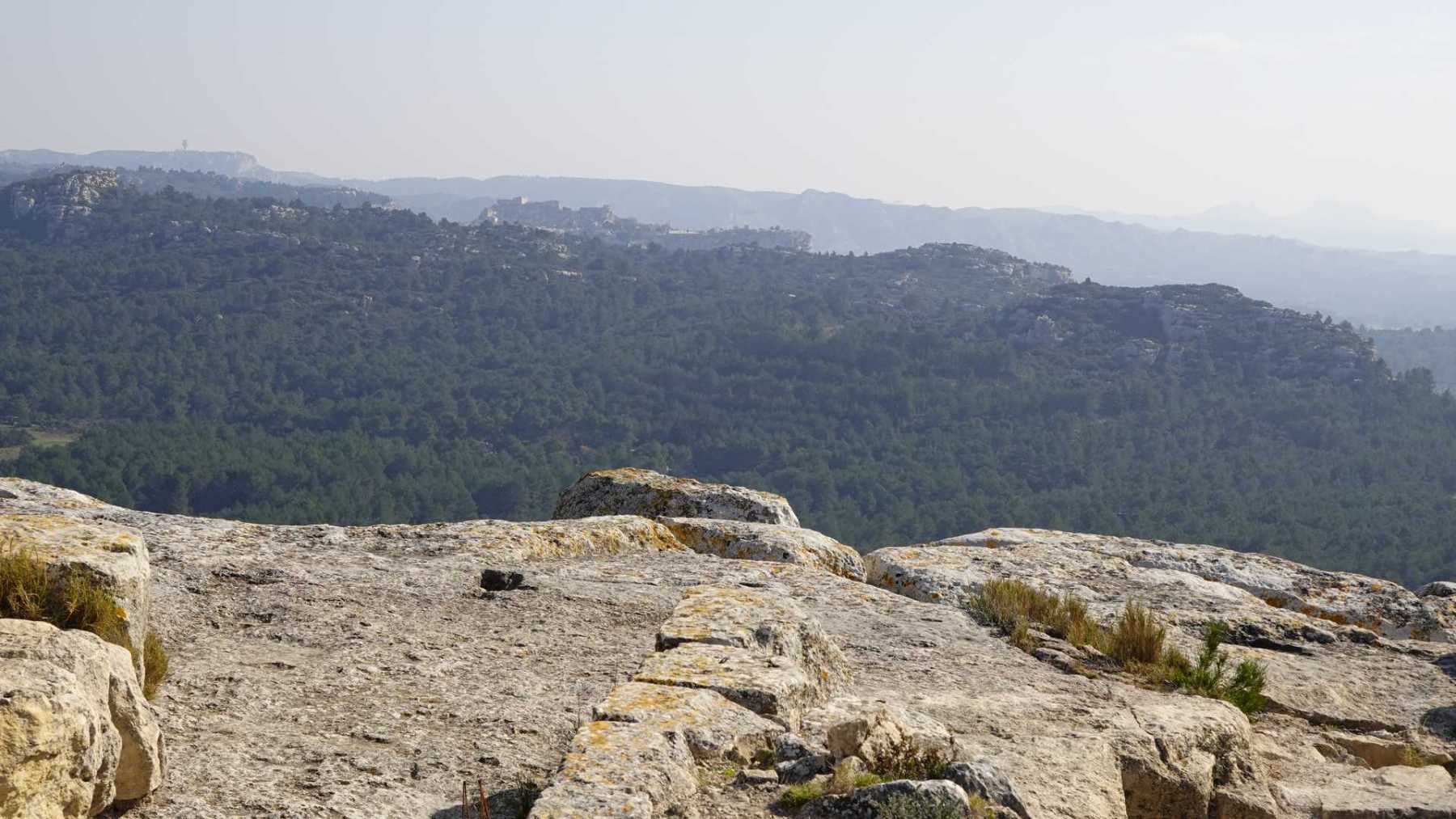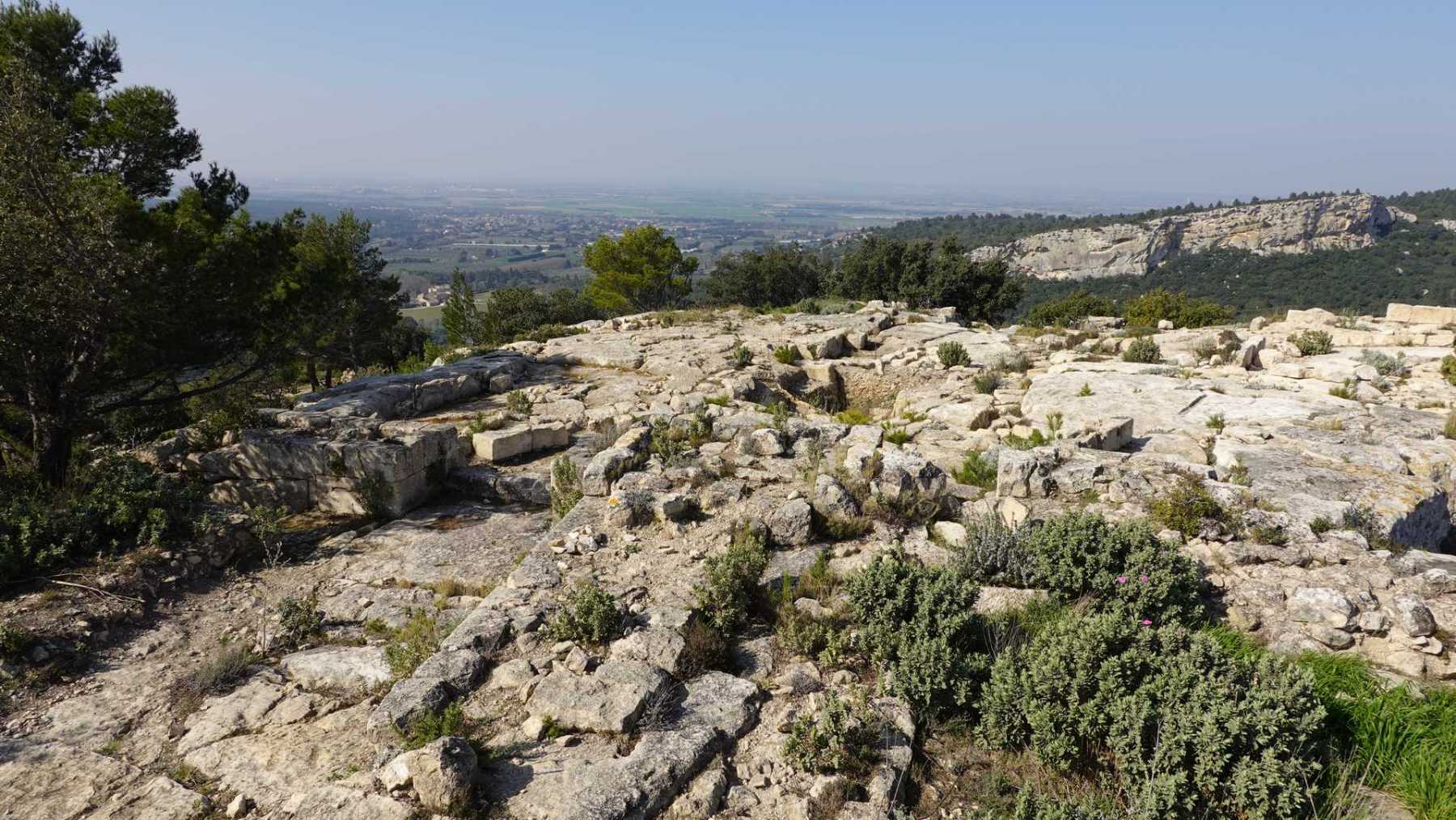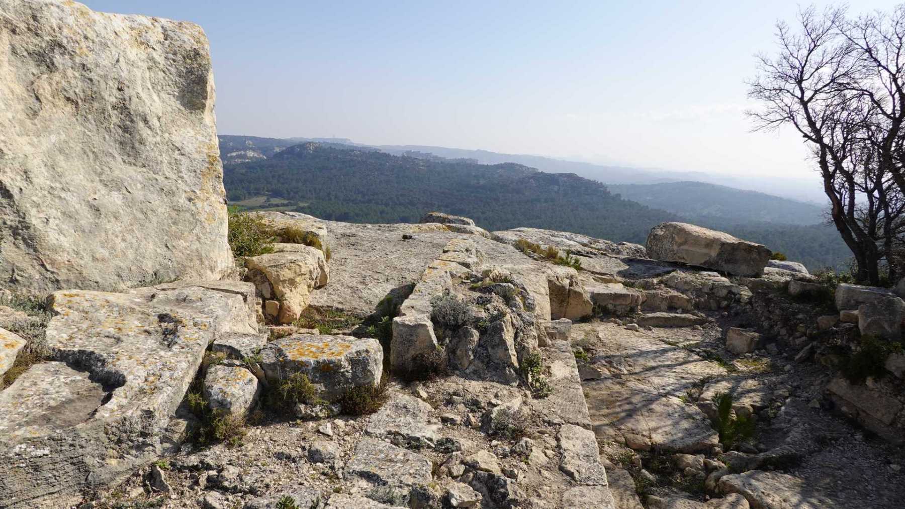 - Commentaires : Bien que proposant de nombreuses portions parallèles très rapprochées, ce parcours est une boucle aux paysages de Provence très variés : Nombreuses oliveraies, vignes, mais aussi immenses serres ( ! ), sentiers le long de canaux d’irrigation très agréables, massifs rocheux contreforts ouest des Alpilles et belle garrigue. Avec 2 spots remarquables : le castrum du Mont Paon et le vallon de la Lèque avec ses imposantes falaises du haut desquelles on bénéficie, comme du sommet du mont Paon d’une magnifique vue sur la région. A noter que le sommet proposé dans le vallon de la Lèque n’est d’aucun intérêt (aucune vue et la tour de guet est une tour moderne de surveillance pour les incendies).