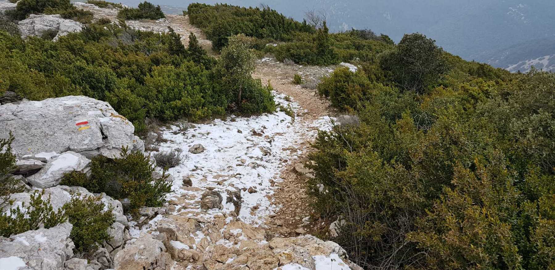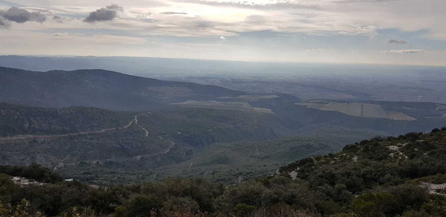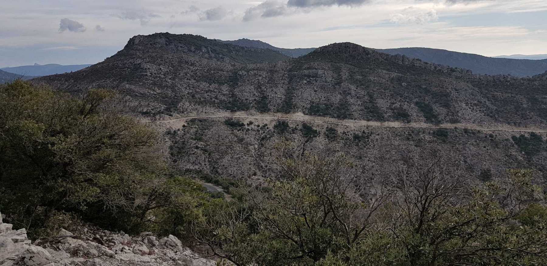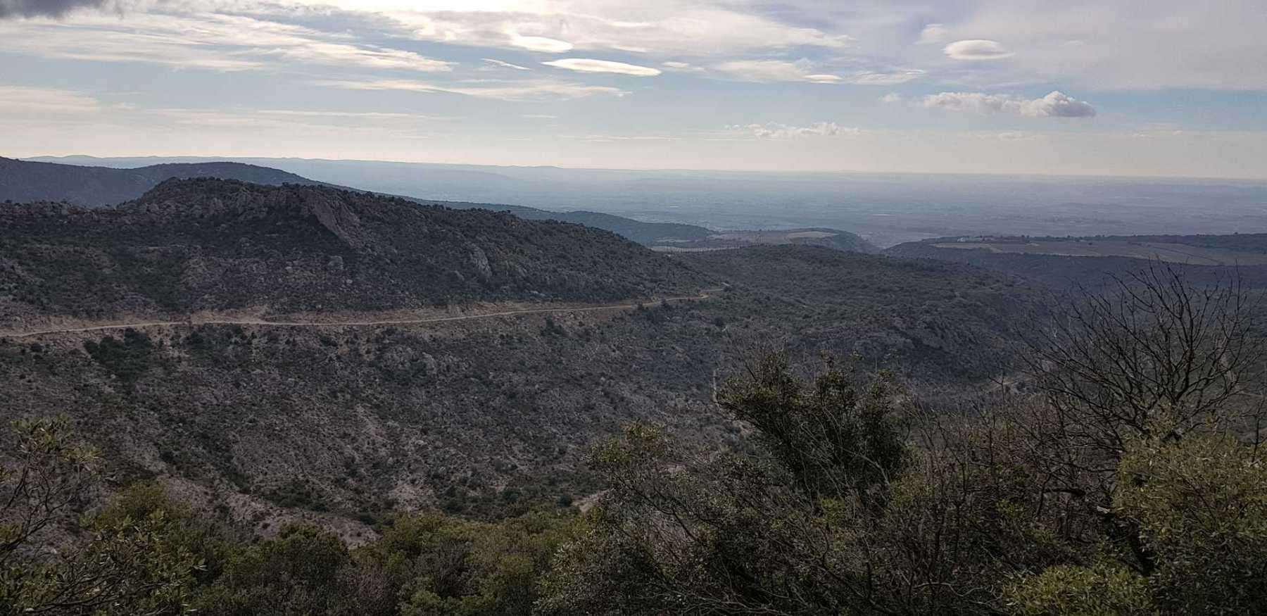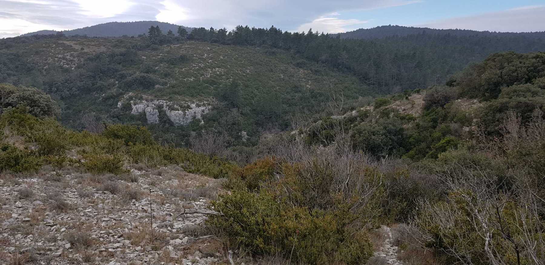 - Commentaires : Une belle journée d’hiver avec une météo inattendue sur le parcours : un froid de canard, un vent à décorner les bœufs et à vous couper le souffle au sommet et sur le plateau du Larzac, mais une très bonne visibilité (ce qui ne semble pas évident sur les photos) : des sommets enneigés du Ventoux au Canigou (en fait toute la chaîne des Pyrénées aux sommets enneigés allumée par le soleil), sans oublier les petits locaux : Massif de la Séranne, cirque de l’Infernet, Hortus, Pic St Loup, montagne Ste Claire, Massif de la Gardiole, rocher des 2 Vierges, Vissou, Liausson, Caroux. Montée en lacet sur le sentier très large et roulant du PR, puis petite portion en crête sur les bords du plateau du Larzac, redescente par un très beau sentier dans un cadre sauvage sous une forêt de chênes avec une progression dans le lit d’un ruisseau à sec assez sympathique !