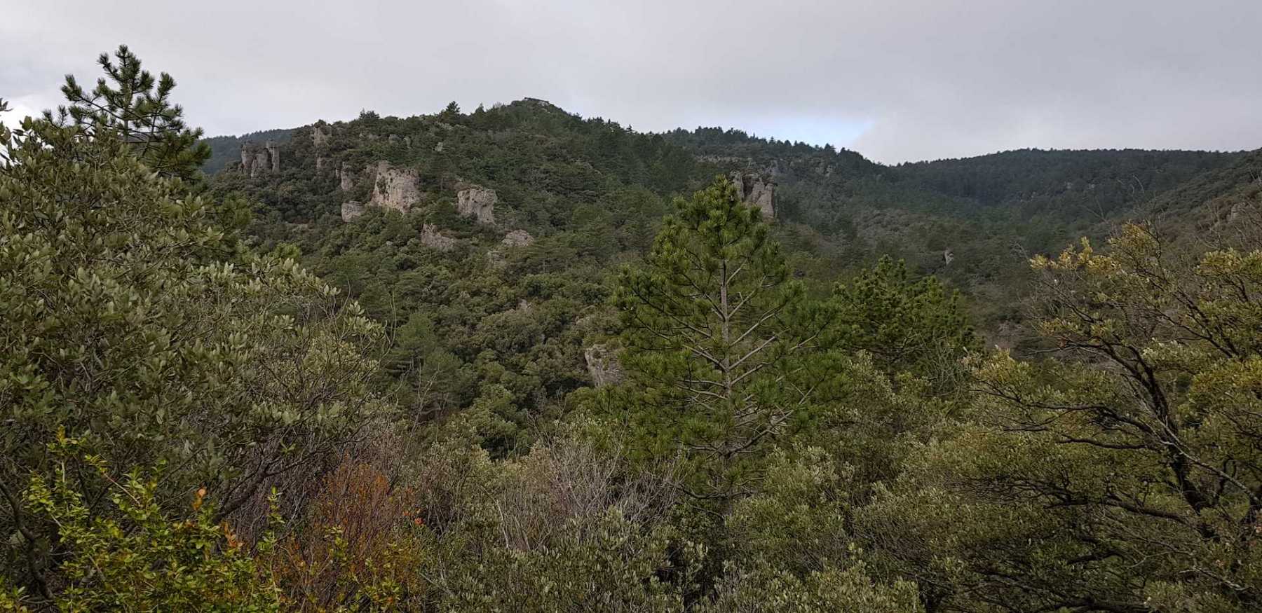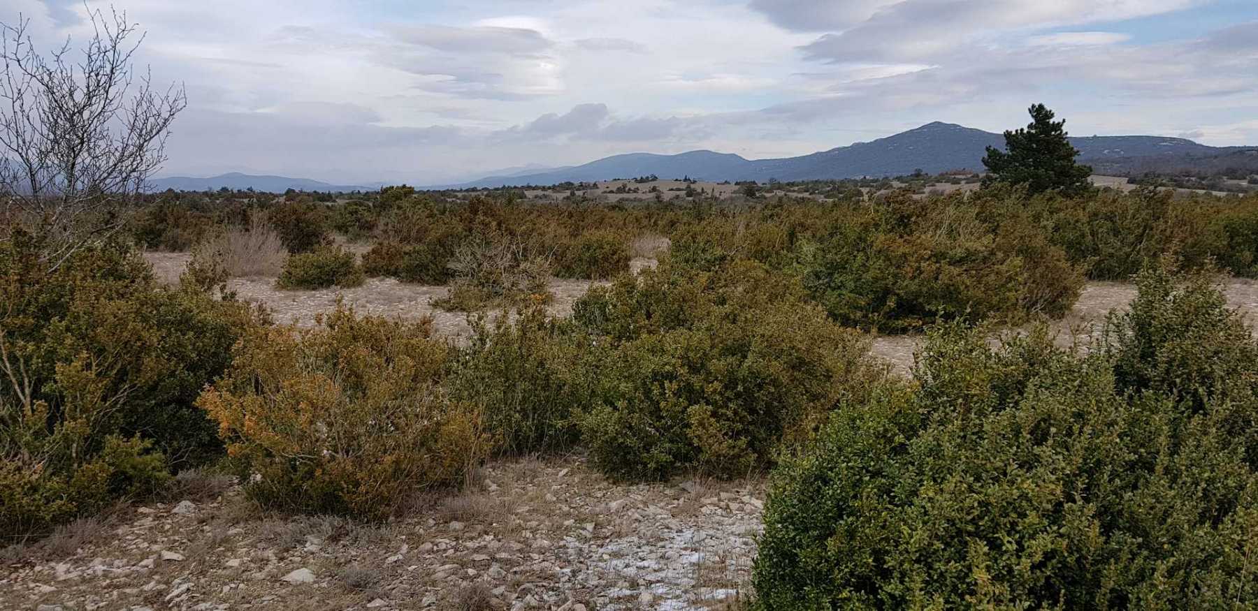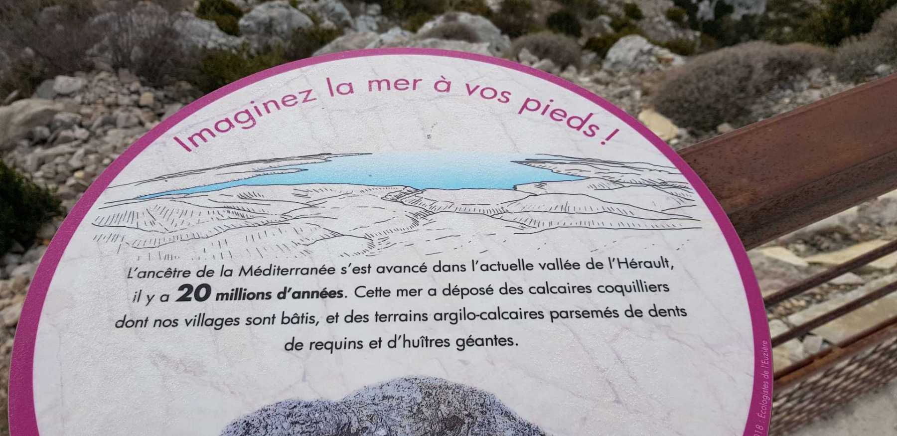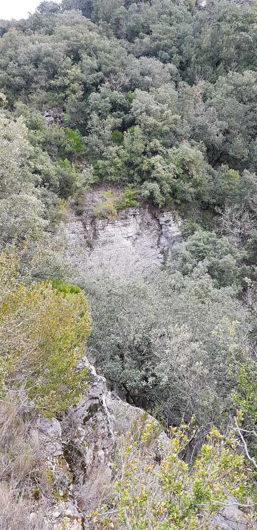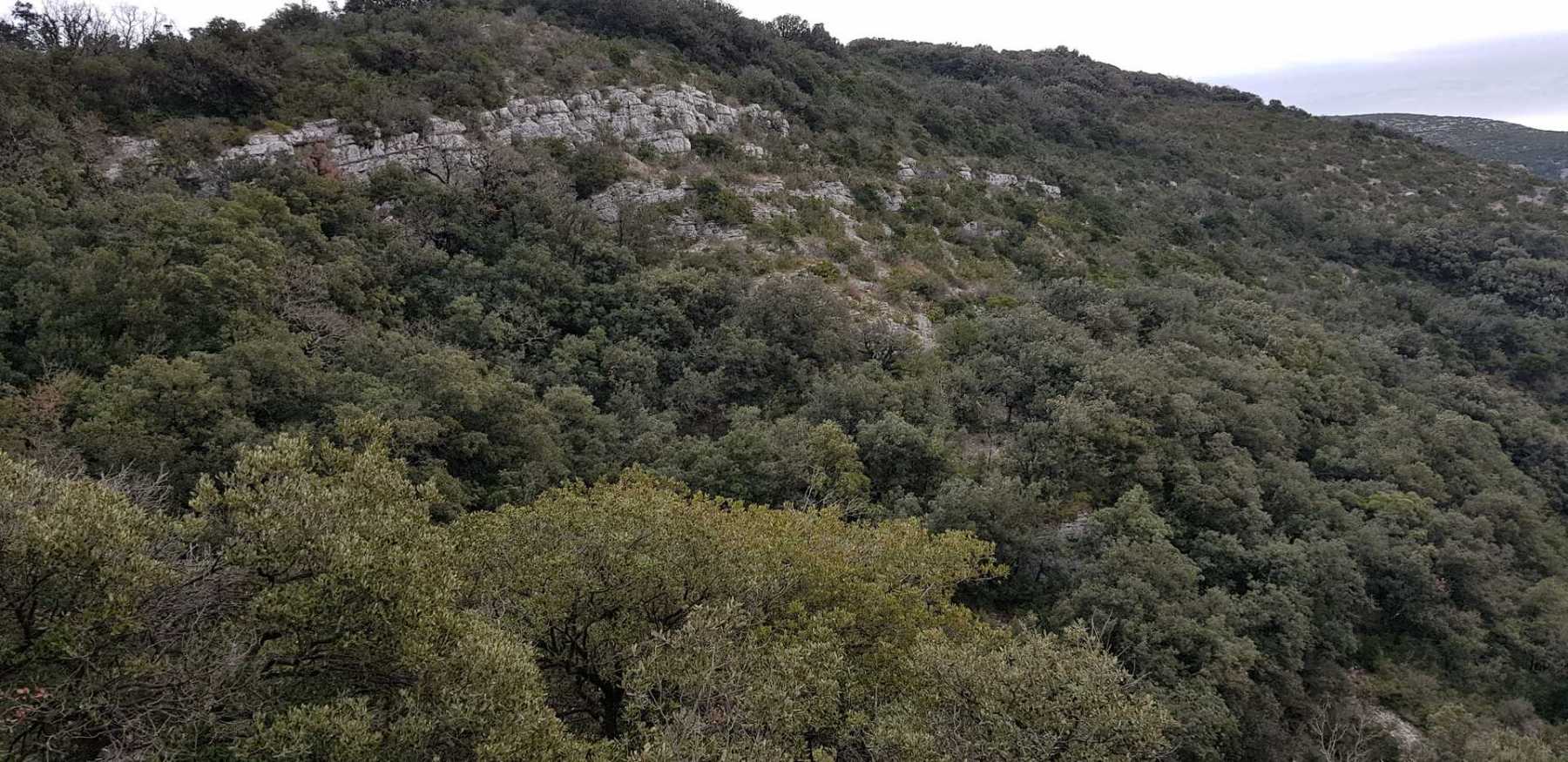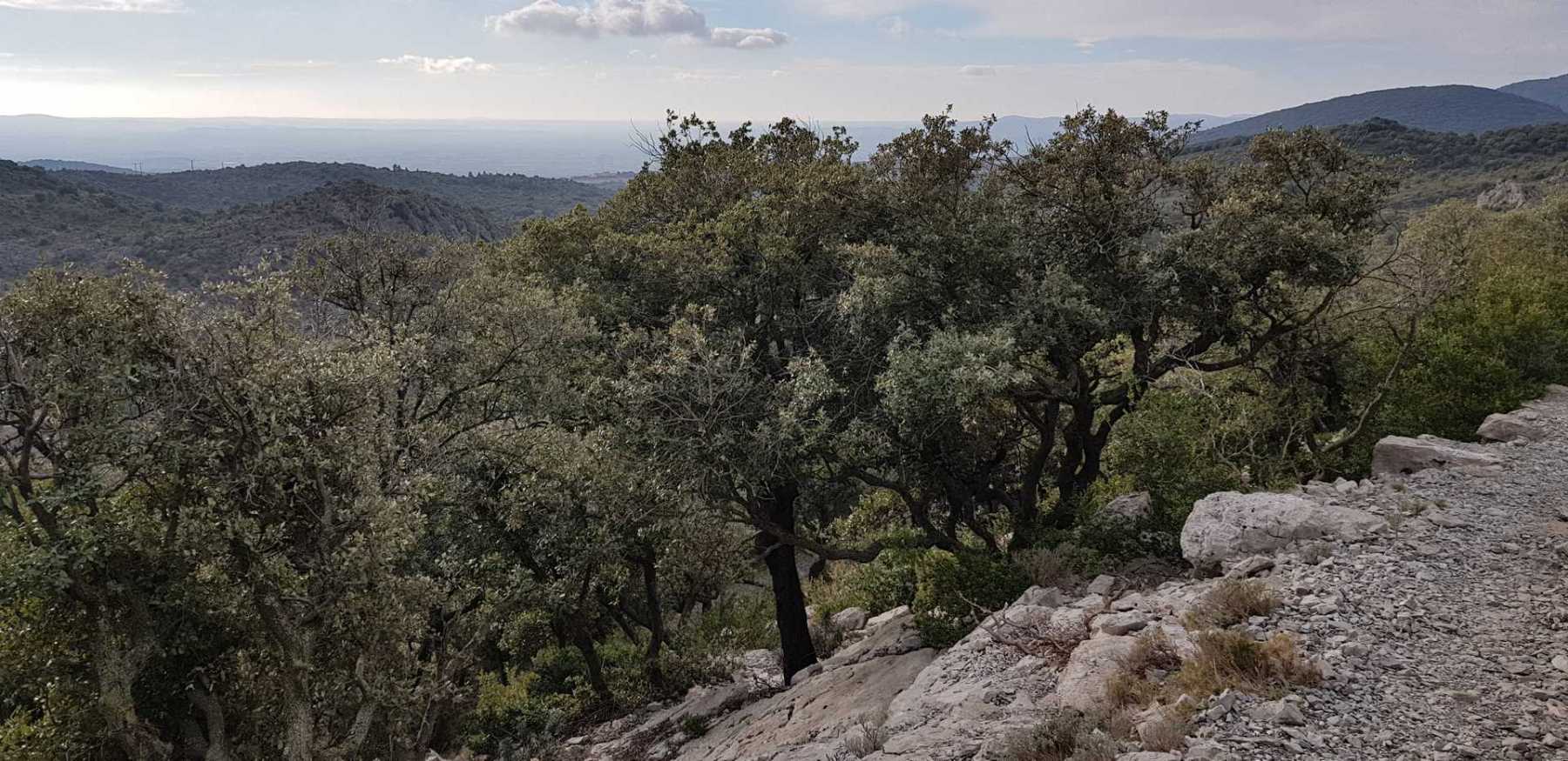- Commentaires : Une belle journée d’hiver avec une météo inattendue sur le parcours : un froid de canard, un vent à décorner les bœufs et à vous couper le souffle au sommet et sur le plateau du Larzac, mais une très bonne visibilité (ce qui ne semble pas évident sur les photos) : des sommets enneigés du Ventoux au Canigou (en fait toute la chaîne des Pyrénées aux sommets enneigés allumée par le soleil), sans oublier les petits locaux : Massif de la Séranne, cirque de l’Infernet, Hortus, Pic St Loup, montagne Ste Claire, Massif de la Gardiole, rocher des 2 Vierges, Vissou, Liausson, Caroux. Montée en lacet sur le sentier très large et roulant du PR, puis petite portion en crête sur les bords du plateau du Larzac, redescente par un très beau sentier dans un cadre sauvage sous une forêt de chênes avec une progression dans le lit d’un ruisseau à sec assez sympathique !