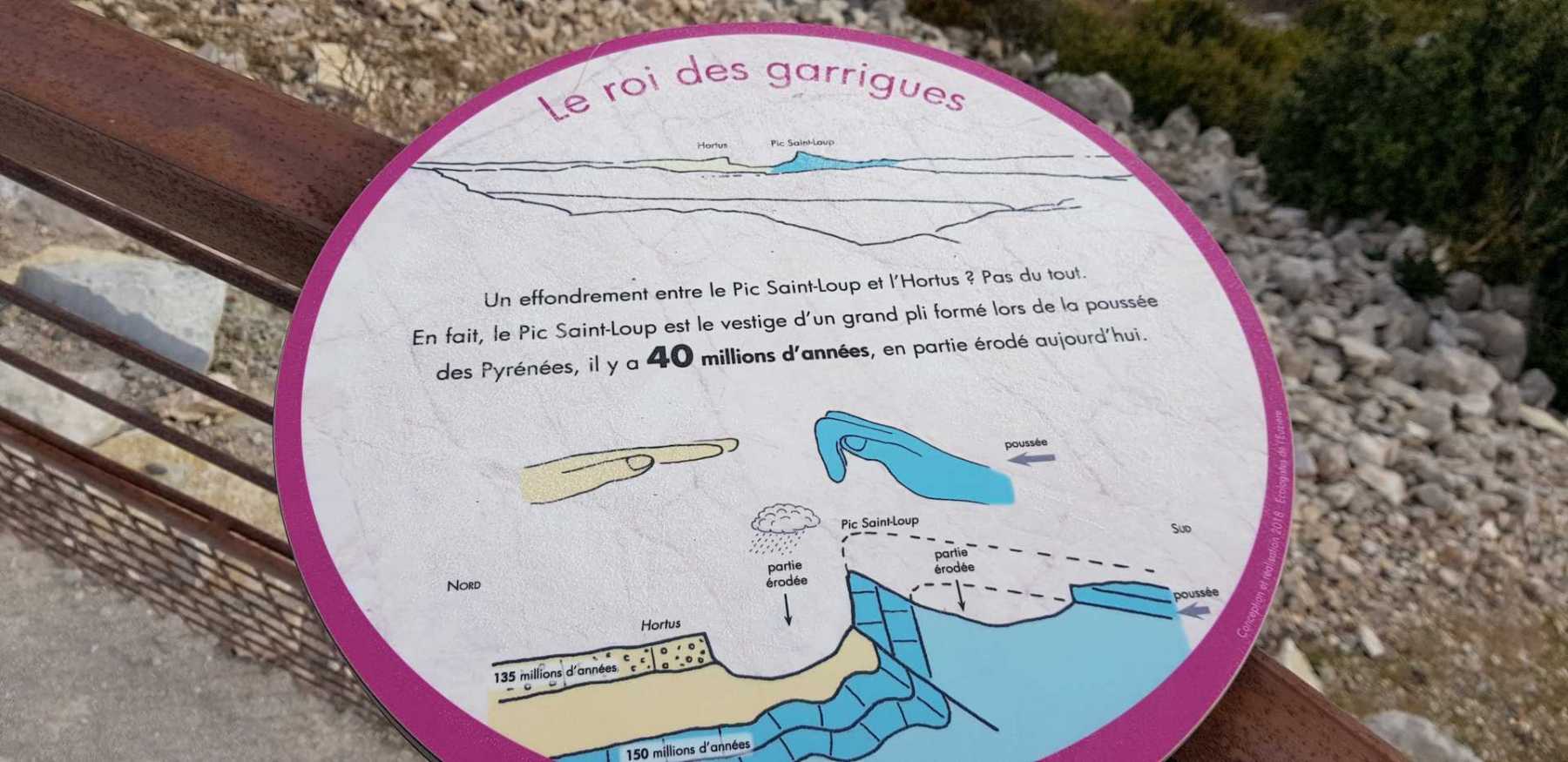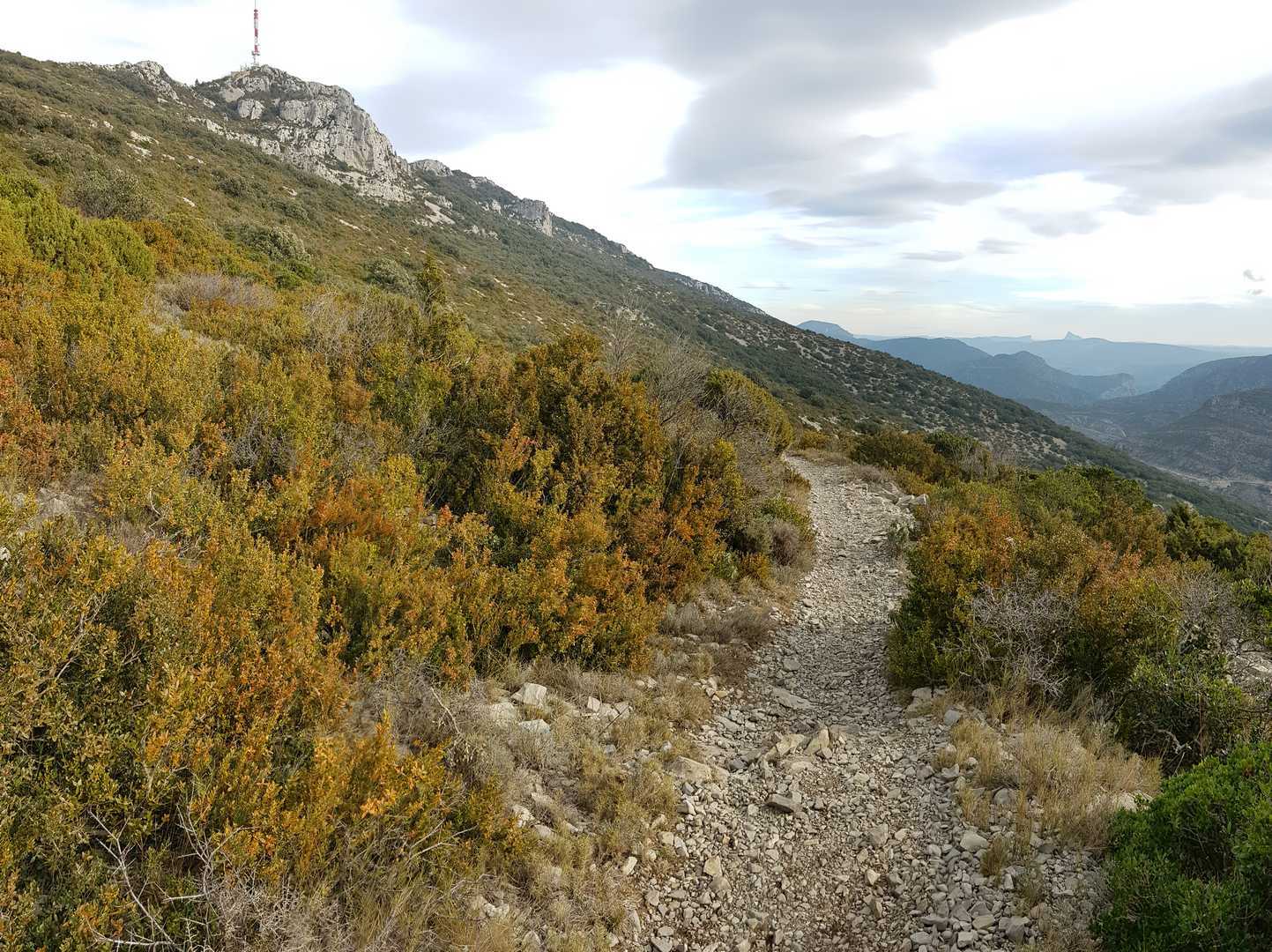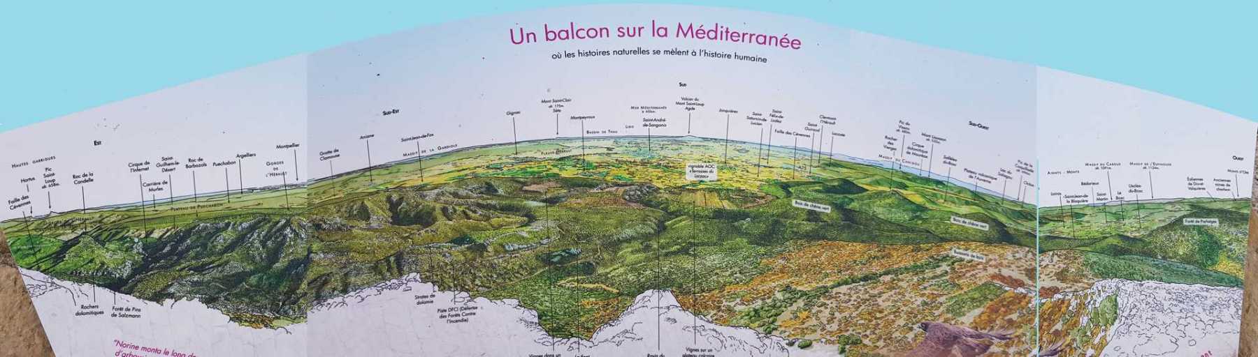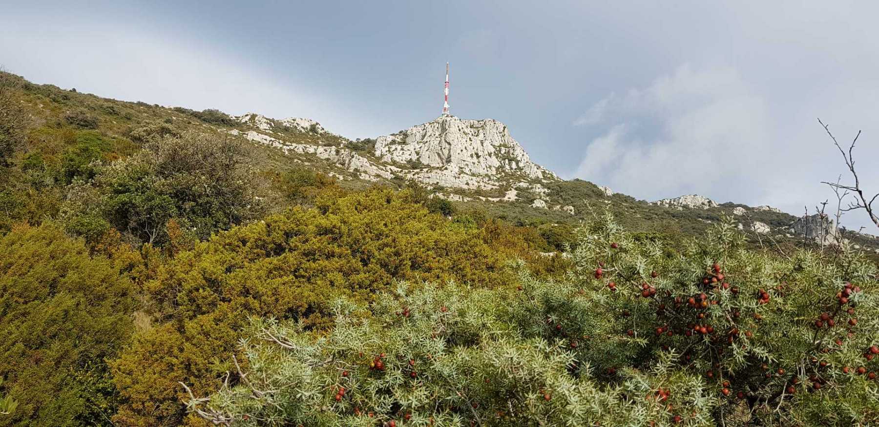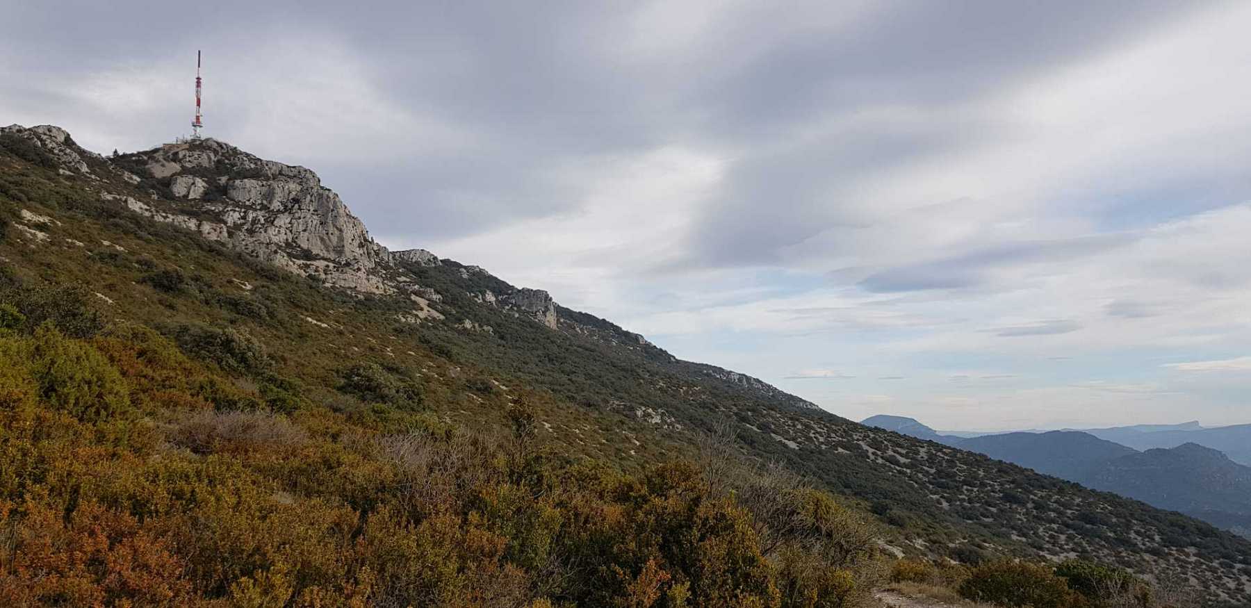 - Commentaires : Une belle journée d’hiver avec une météo inattendue sur le parcours : un froid de canard, un vent à décorner les bœufs et à vous couper le souffle au sommet et sur le plateau du Larzac, mais une très bonne visibilité (ce qui ne semble pas évident sur les photos) : des sommets enneigés du Ventoux au Canigou (en fait toute la chaîne des Pyrénées aux sommets enneigés allumée par le soleil), sans oublier les petits locaux : Massif de la Séranne, cirque de l’Infernet, Hortus, Pic St Loup, montagne Ste Claire, Massif de la Gardiole, rocher des 2 Vierges, Vissou, Liausson, Caroux. Montée en lacet sur le sentier très large et roulant du PR, puis petite portion en crête sur les bords du plateau du Larzac, redescente par un très beau sentier dans un cadre sauvage sous une forêt de chênes avec une progression dans le lit d’un ruisseau à sec assez sympathique !