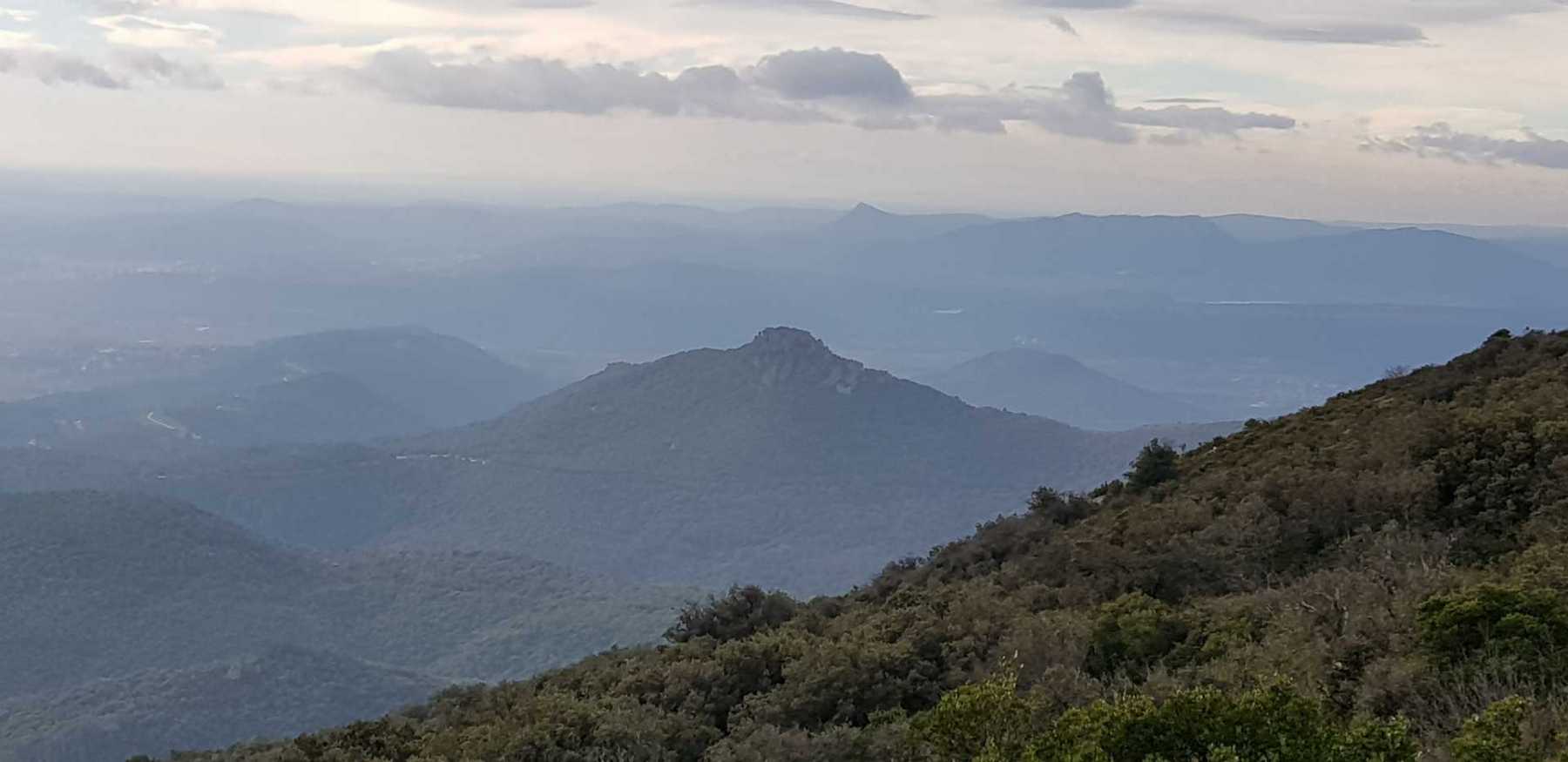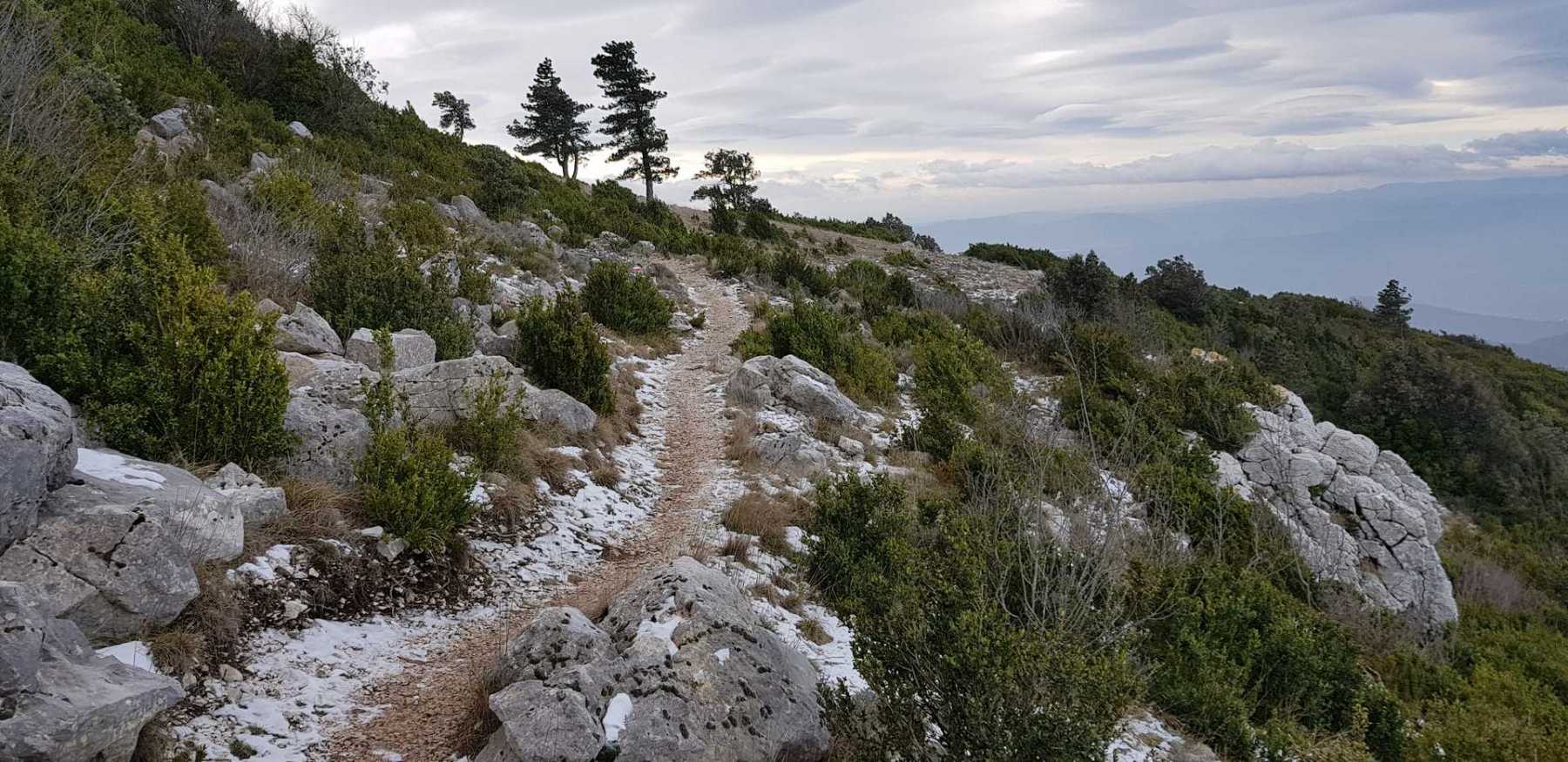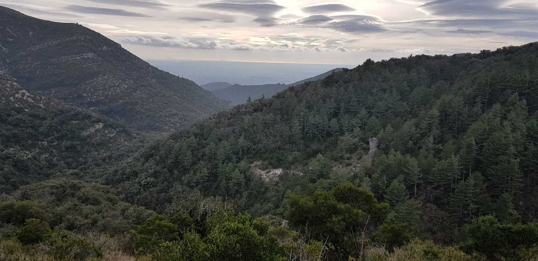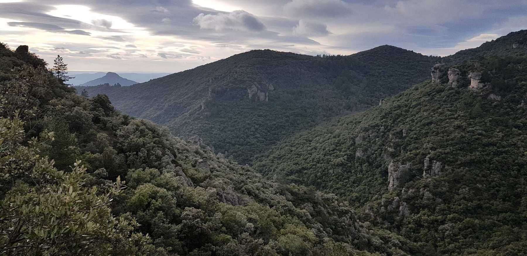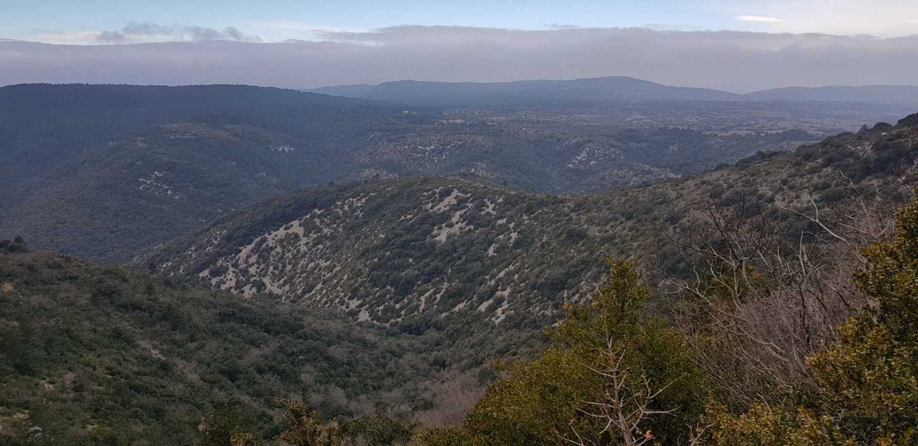 - Commentaires : Une belle journée d’hiver avec une météo inattendue sur le parcours : un froid de canard, un vent à décorner les bœufs et à vous couper le souffle au sommet et sur le plateau du Larzac, mais une très bonne visibilité (ce qui ne semble pas évident sur les photos) : des sommets enneigés du Ventoux au Canigou (en fait toute la chaîne des Pyrénées aux sommets enneigés allumée par le soleil), sans oublier les petits locaux : Massif de la Séranne, cirque de l’Infernet, Hortus, Pic St Loup, montagne Ste Claire, Massif de la Gardiole, rocher des 2 Vierges, Vissou, Liausson, Caroux. Montée en lacet sur le sentier très large et roulant du PR, puis petite portion en crête sur les bords du plateau du Larzac, redescente par un très beau sentier dans un cadre sauvage sous une forêt de chênes avec une progression dans le lit d’un ruisseau à sec assez sympathique !