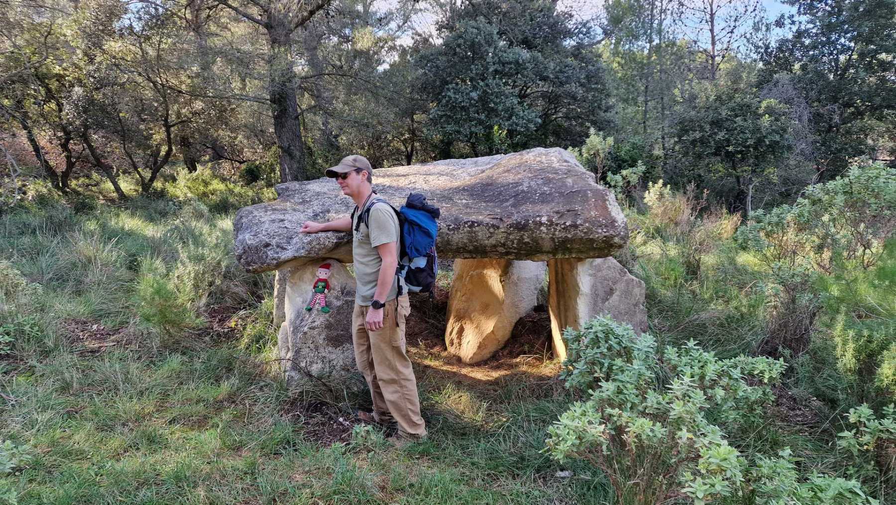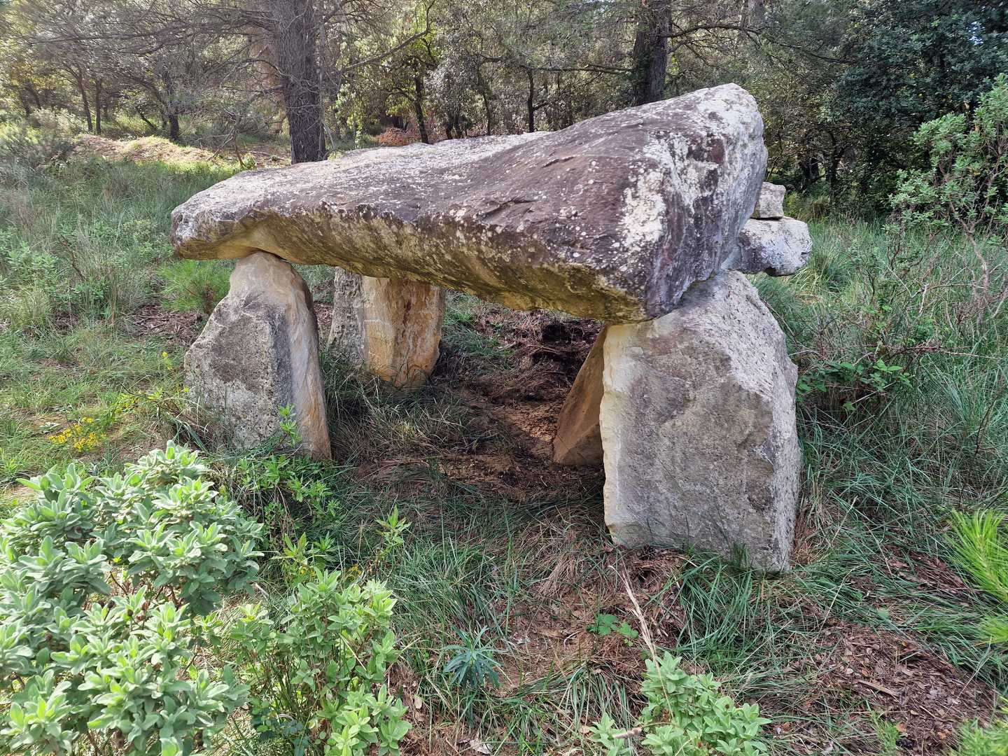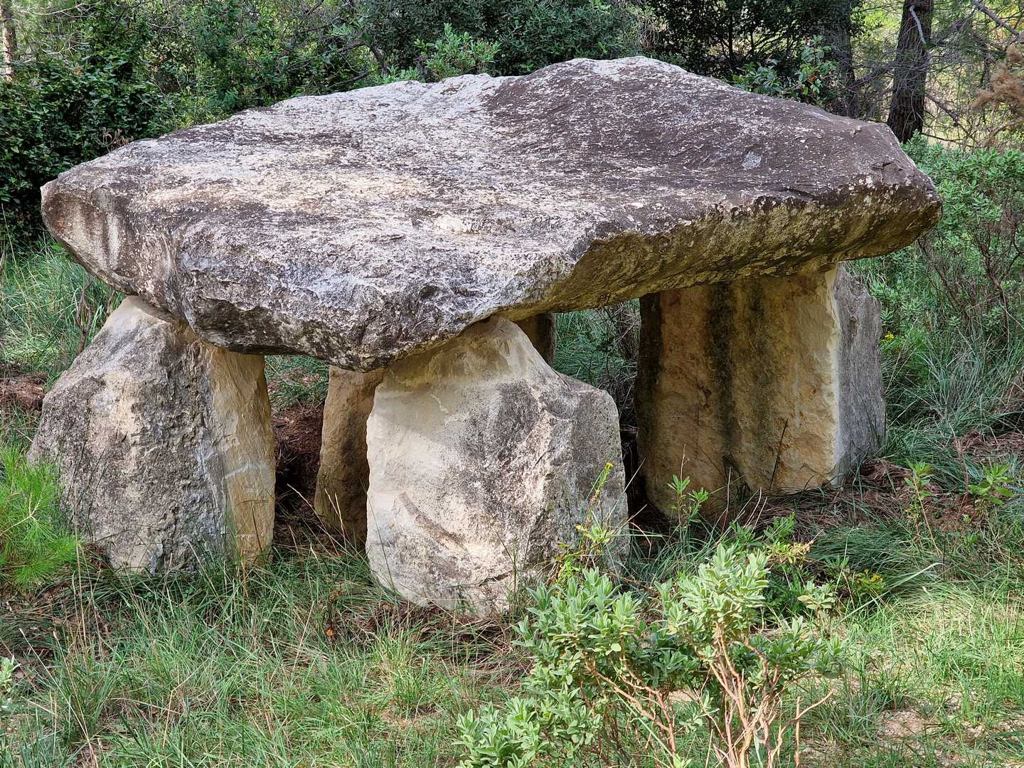 - Surprise de découvrir un imposant et très beau Dolmen ! Quelques recherches sur internet permettent de découvrir qu’il s’agit d’un monument érigé par un seul homme, en moins d’une heure, à l’été 2008, dans un but pédagogique pour le club de paléonthologie local (paleolab !).