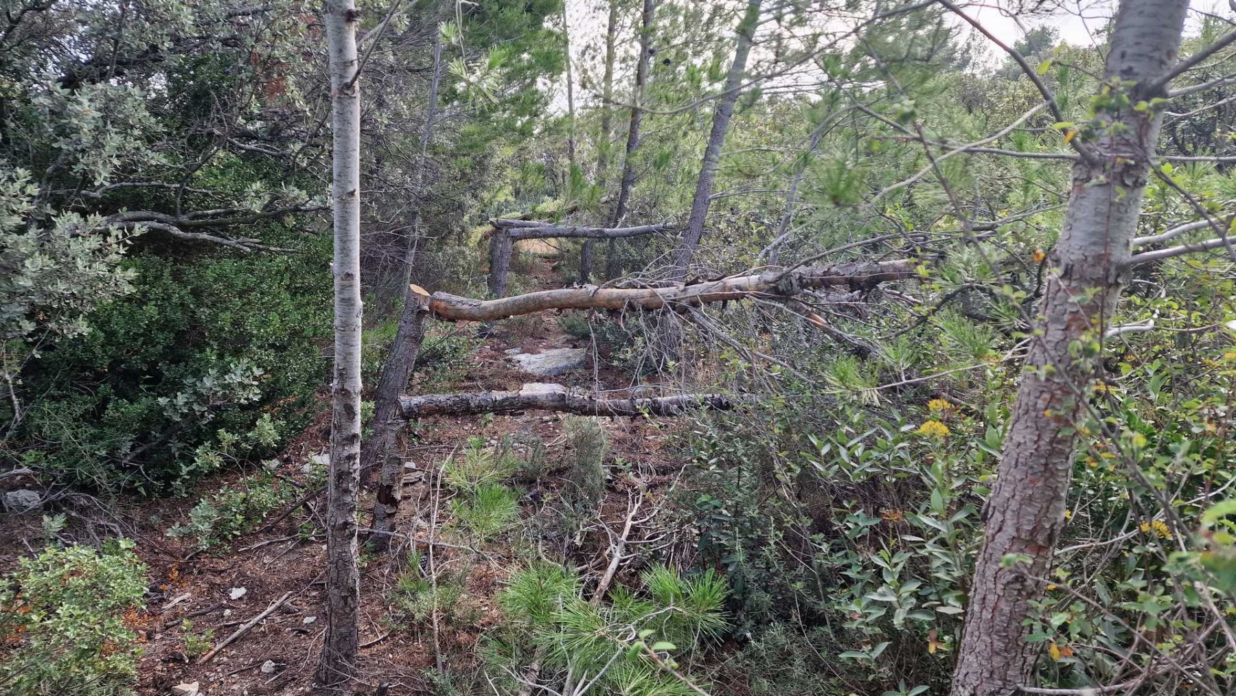 3. Dans le lieu dénommé le désert, lorsque l’on arrive au-dessus des maisons du hameau St MARTIN (Km 8,4), des restanques ont été construites (certainement pour prévenir des éventuels éboulements, du coup le sentier disparaît sur environ 50 m (bien suivre la trace !)
