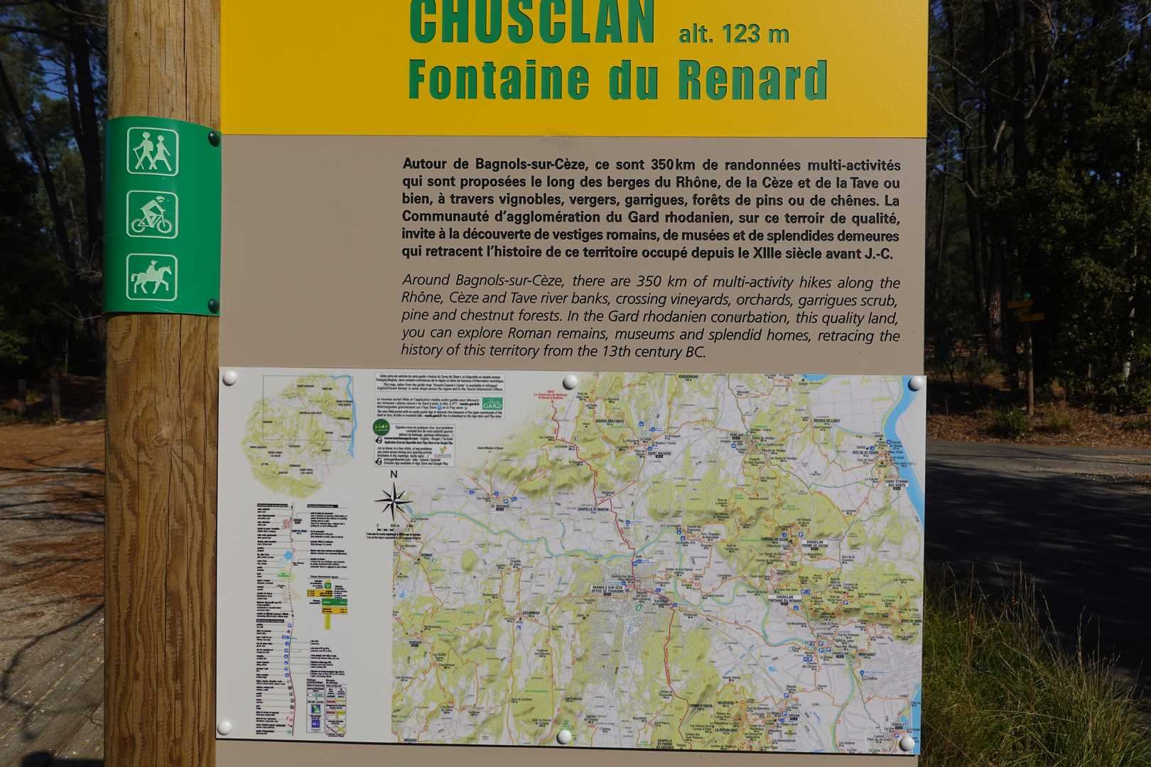 Avec tous ces sentiers et chemins, noter que la navigation n’est pas toujours facile (même avec un GPS), en particulier au départ lorsque l’on quitte le sentier de découverte au niveau de l’observatoire faisant face à Bagnols sur Cèze pour rejoindre les hauteurs (Mourre de la Folle) : bien contourner par la gauche le rocher avec sa cavité). - Note (sur 20) : 16