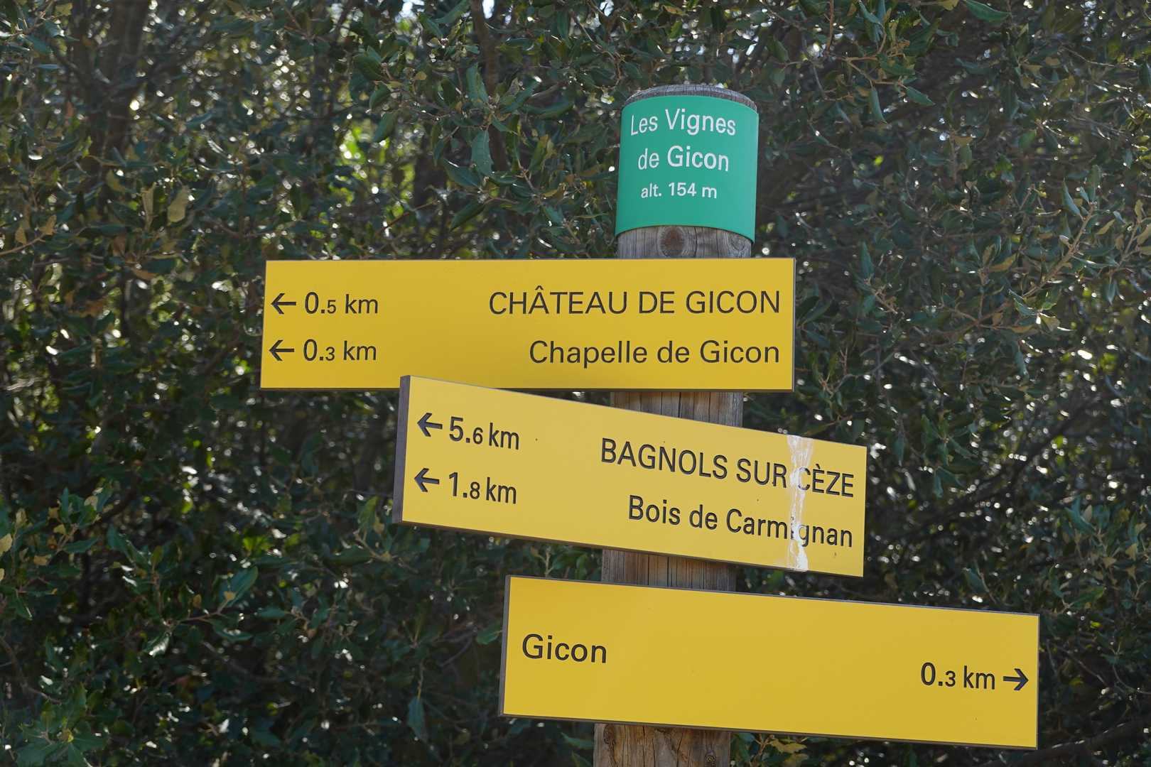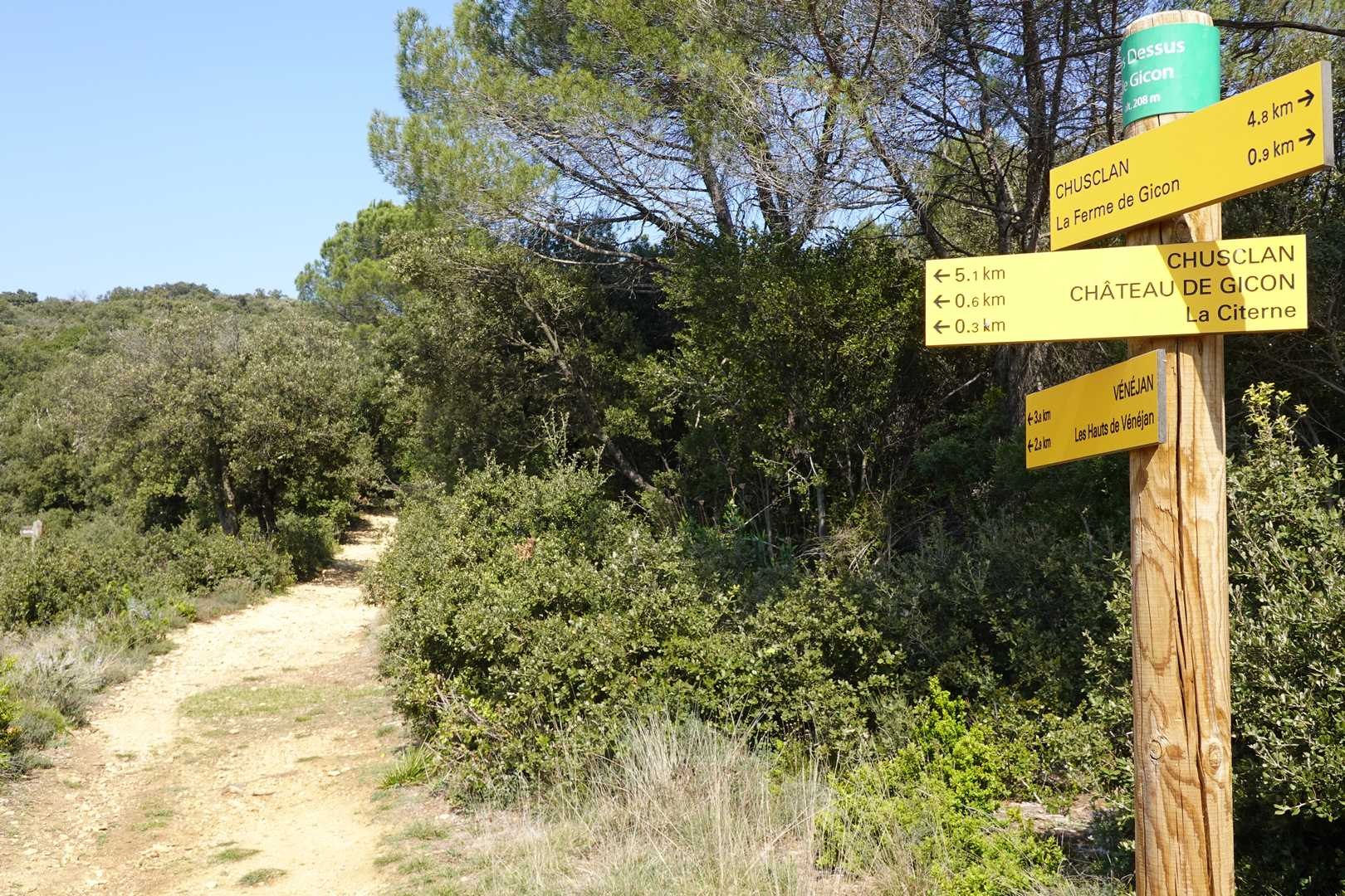 Côté patrimonial : 2 beaux châteaux trônent dans le paysage : site médiéval de Gicon à visiter et château du Jonquier (privé). Si la météo est favorable de belles vues sur la vallée de la Cèze et sur celle du Rhône avec au loin les massifs de Mornas, les dentelles de Montmirail et le mont Ventoux.