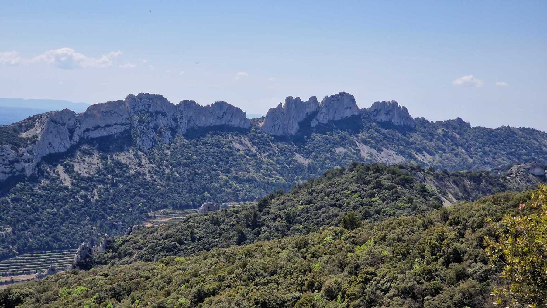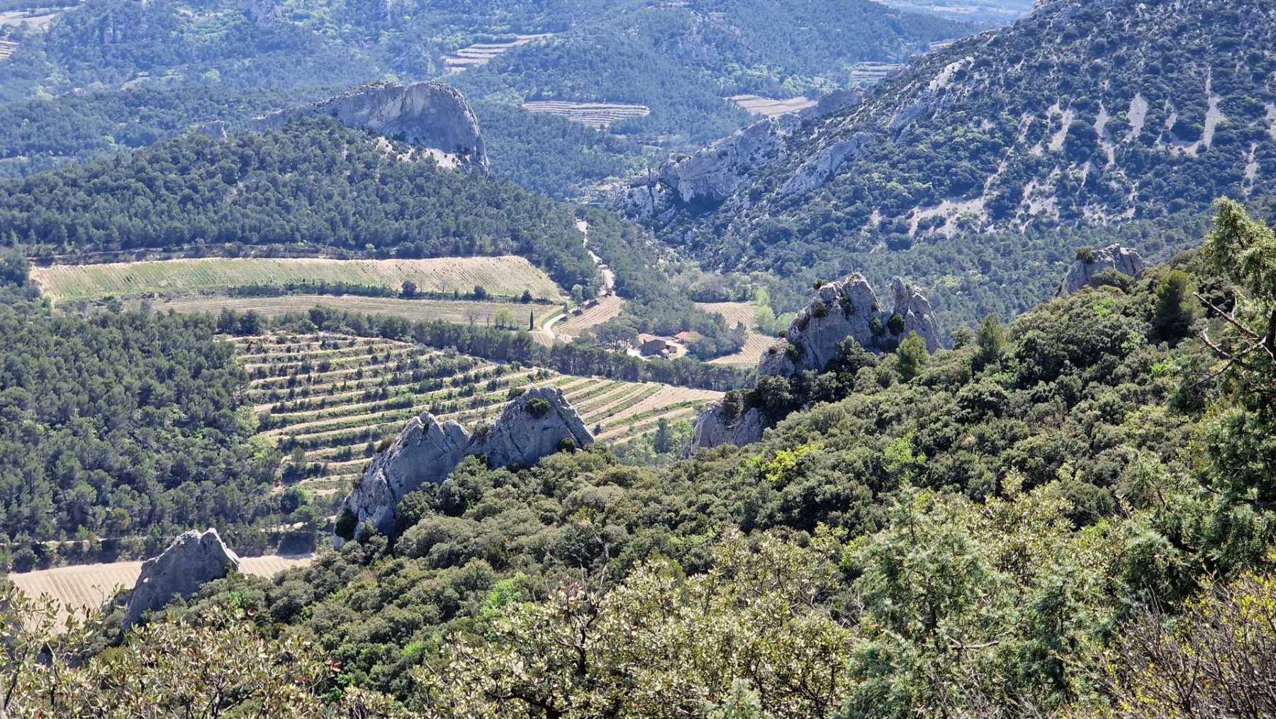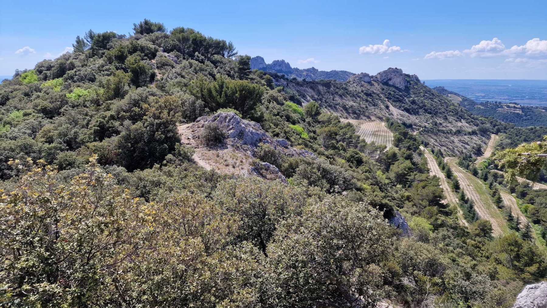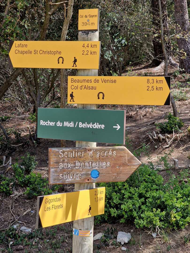 - Commentaires : Le tour des réputées dentelles de Montmirail fait environ 8 Km. Avec le circuit réalisé, un peu plus long (15 Km), on pourra les observer sous toutes ses coutures ! Le départ se fait du village de Lafare. On retrouve les points forts de la randonnée plus sportive proposée : cascade, charmante chapelle romane : la chapelle St Christophe, vue sur le Mont Ventoux. Les points de vues sur les dentelles Sarrasines depuis les crêtes au nord (Le Pourra) sont magistraux !