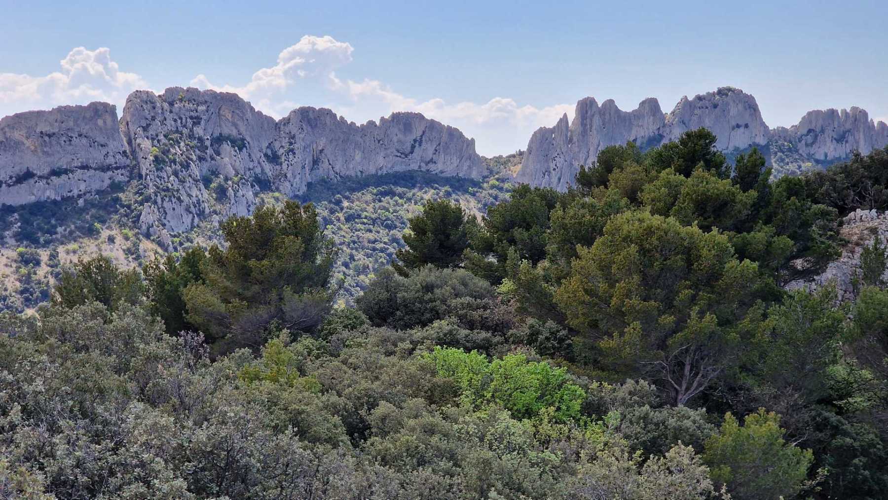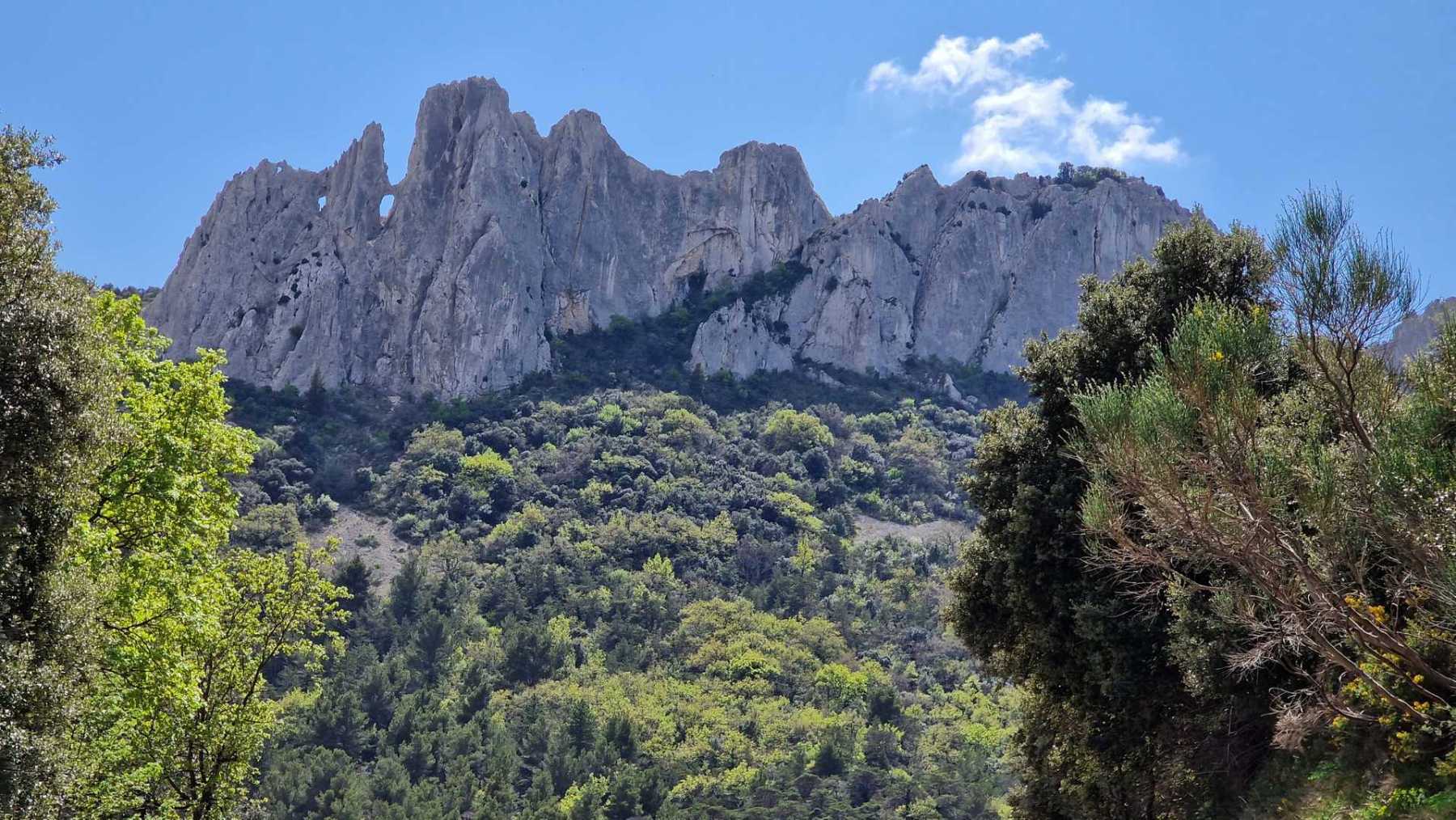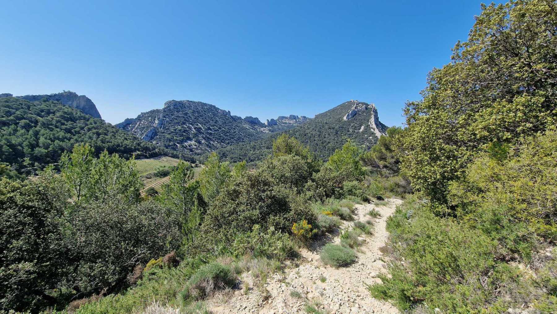 - Commentaires : Le tour des réputées dentelles de Montmirail fait environ 8 Km. Avec le circuit réalisé, un peu plus long (15 Km), on pourra les observer sous toutes ses coutures ! Le départ se fait du village de Lafare. On retrouve les points forts de la randonnée plus sportive proposée : cascade, charmante chapelle romane : la chapelle St Christophe, vue sur le Mont Ventoux. Les points de vues sur les dentelles Sarrasines depuis les crêtes au nord (Le Pourra) sont magistraux !