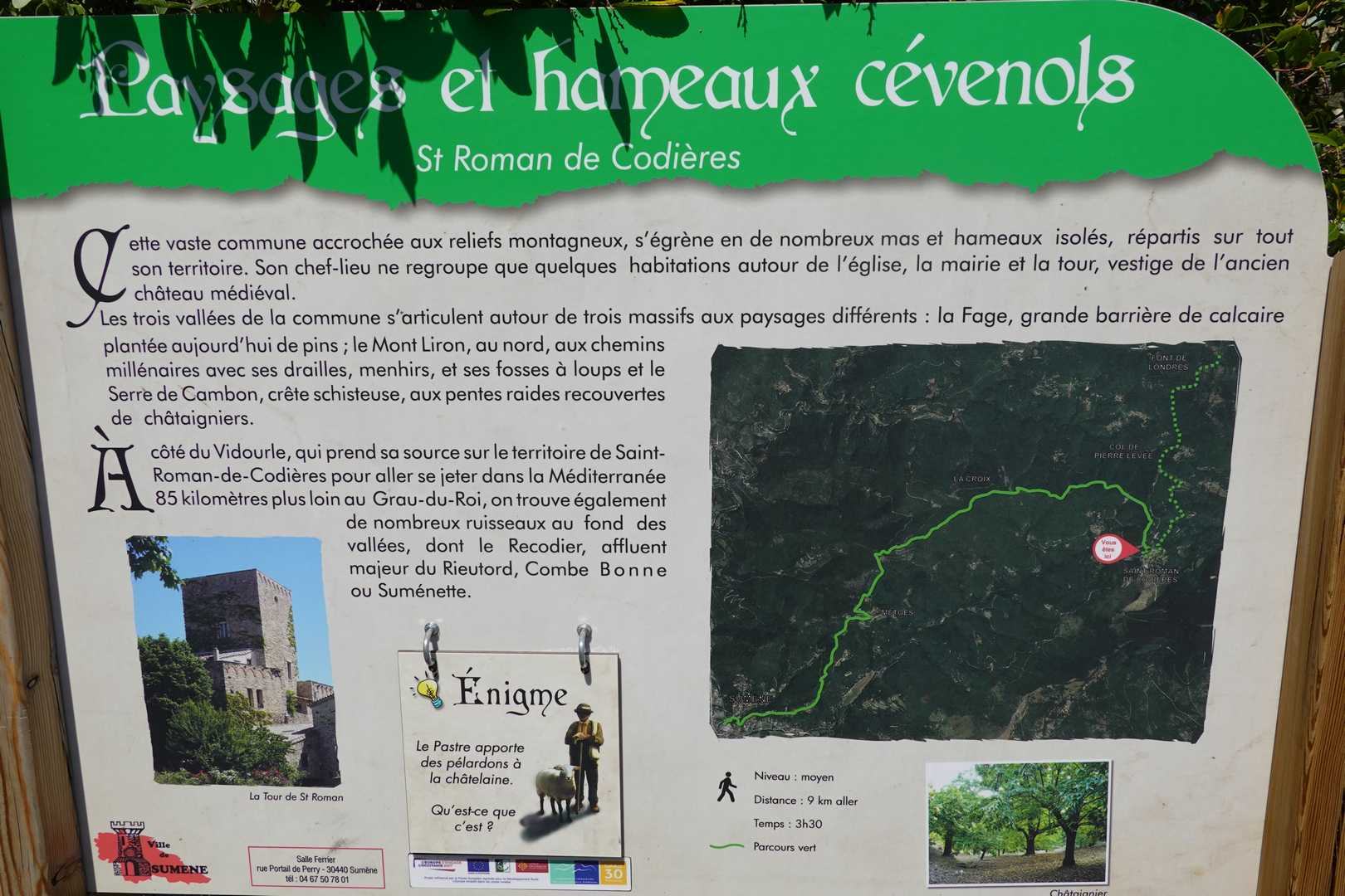 A mi-chemin, à l’extrémité nord le beau hameau de St Roman de Codières où vous pourrez vous reposer, restaurer, admirer la vue à la tour carrée, dernier vestige d’un château médiéval (café, gîte ouvert en saison).