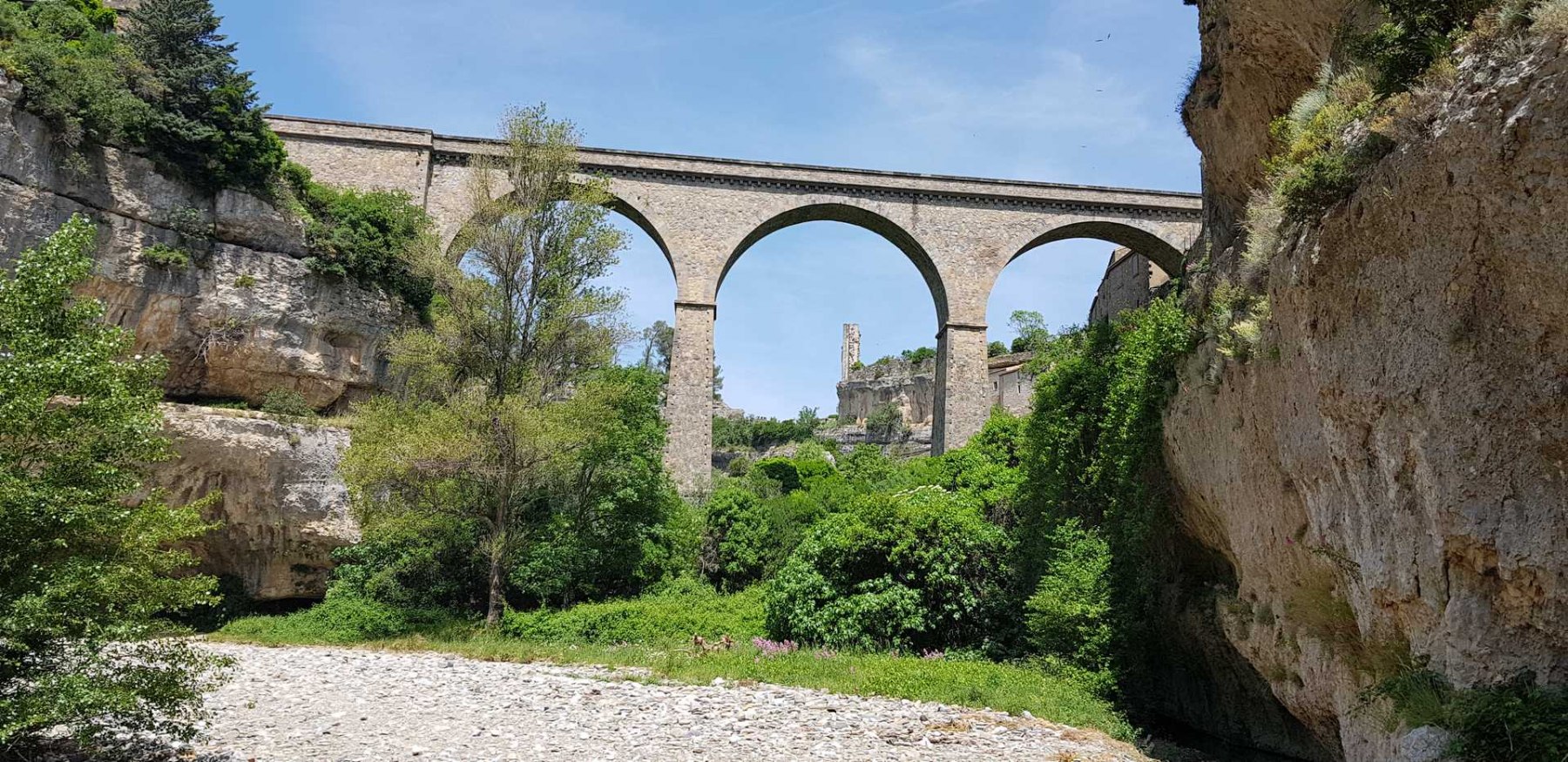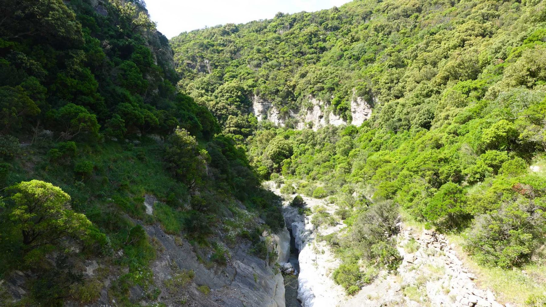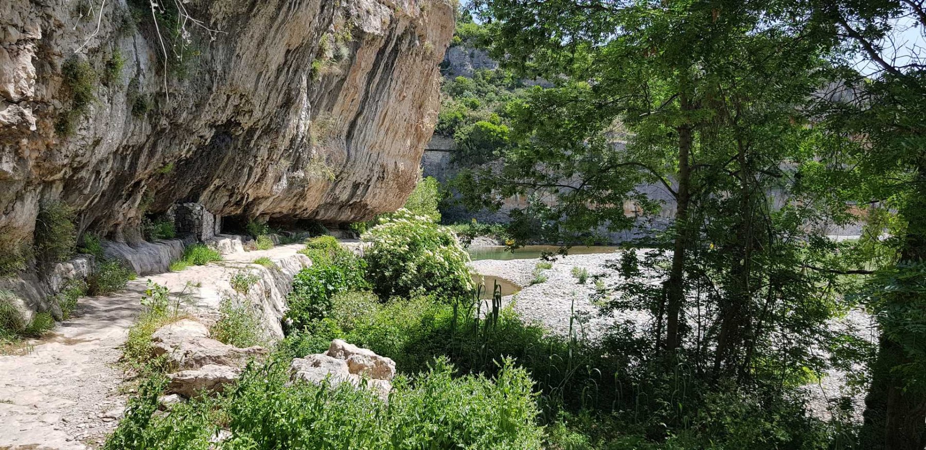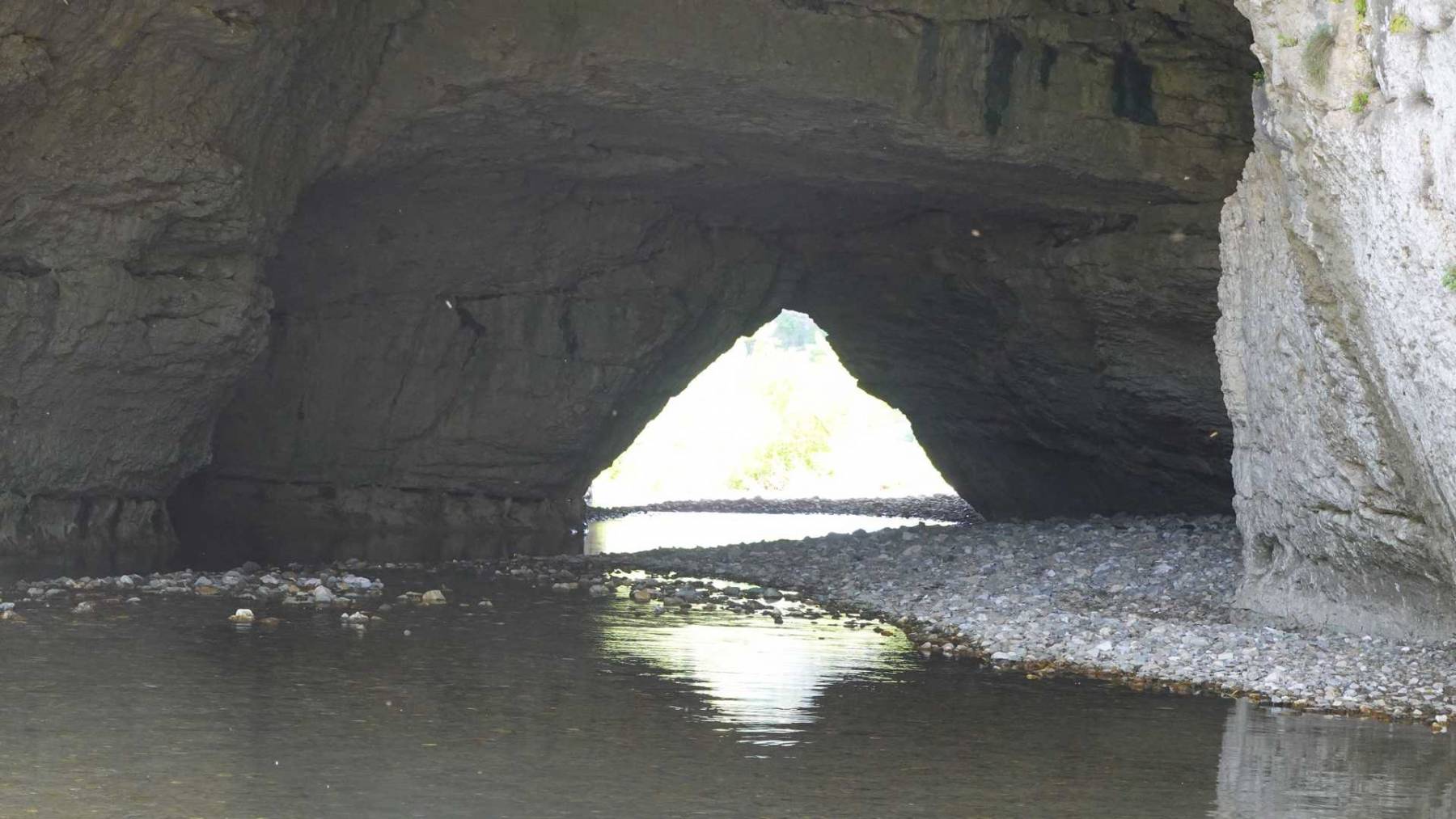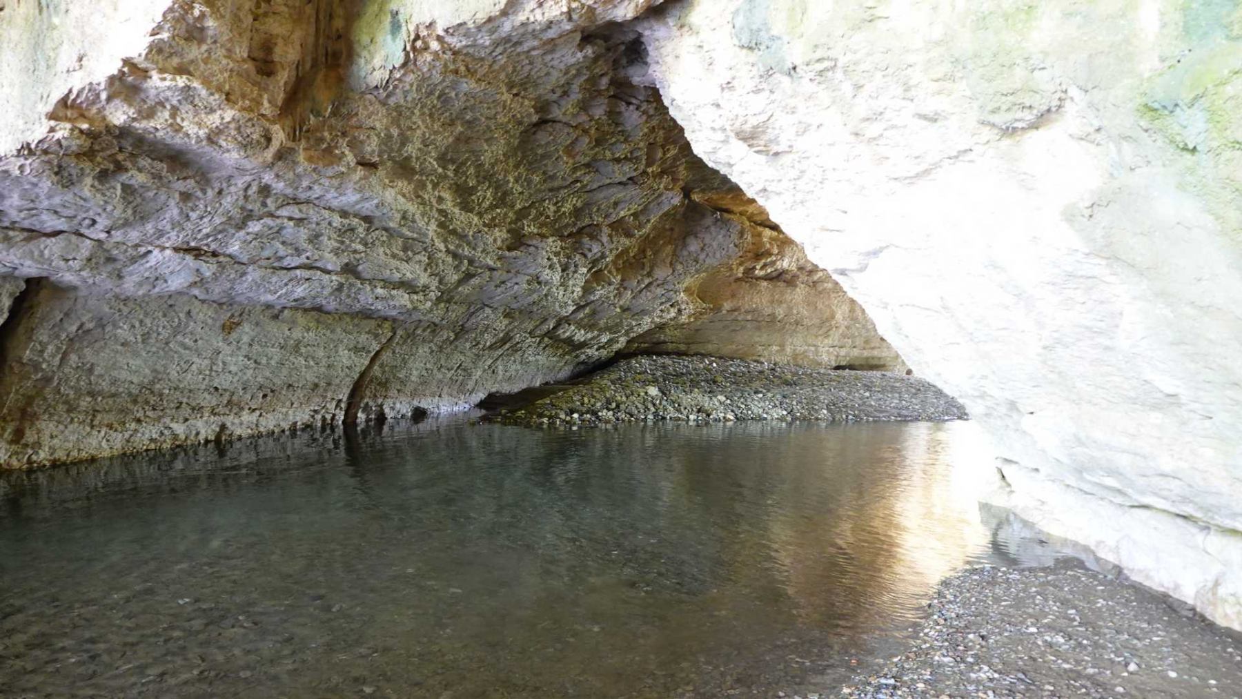 L’arrivée au village par ces tunnels naturels creusés par la rivière très pittoresque. A noter que la rivière n’est pas toujours à sec ! Un petit goût d’aventure avec de l’eau au-dessus des genoux : un lointain rappel d’aventures similaires vécues en Crète dans les gorges de Samaria !!