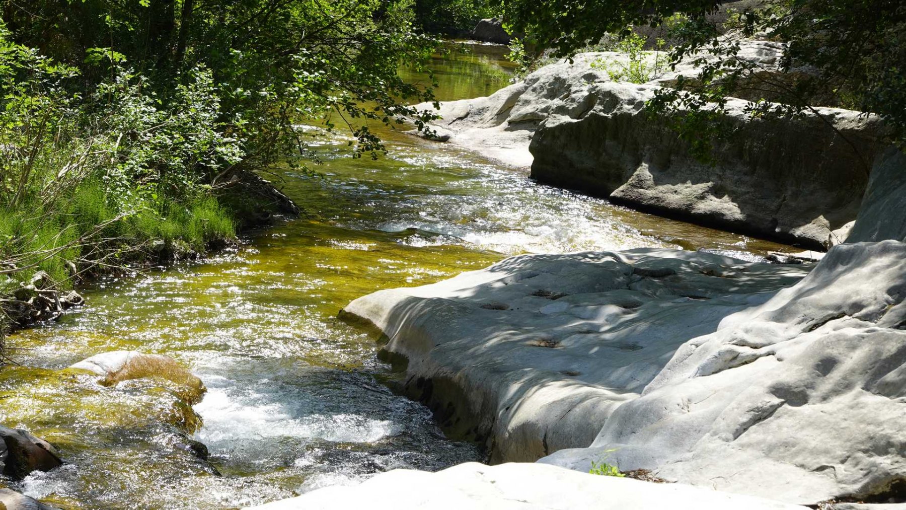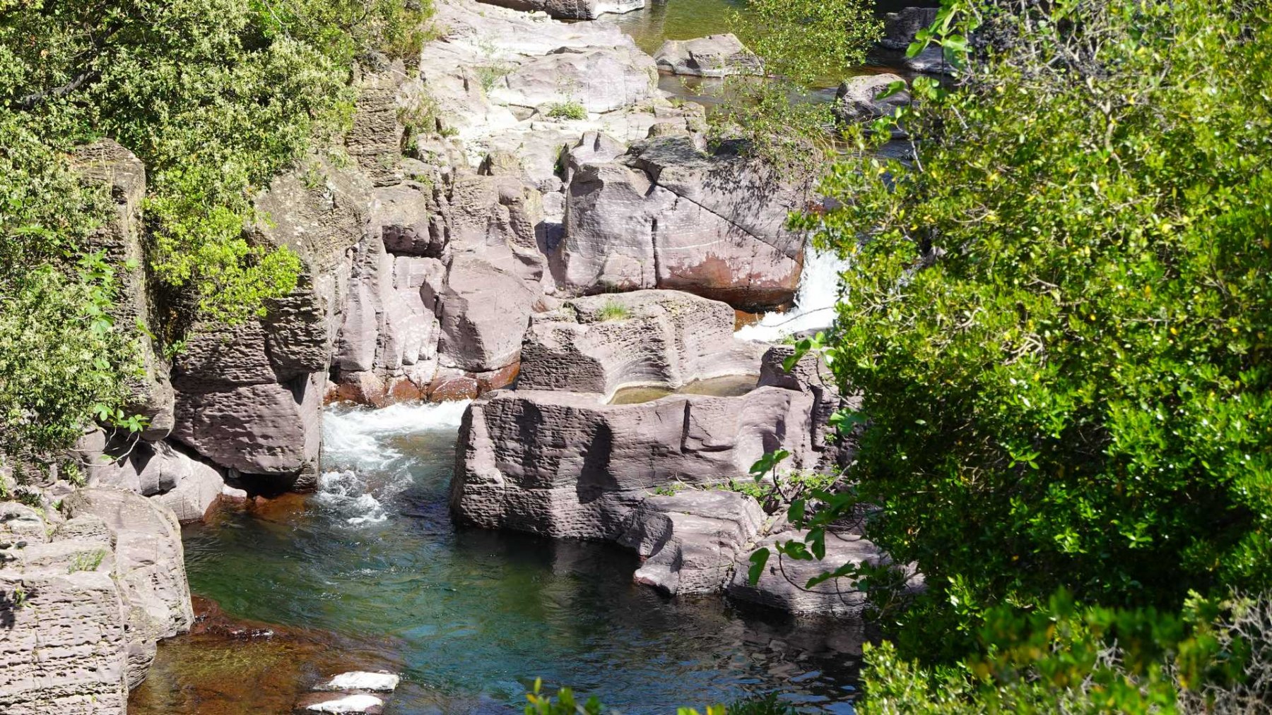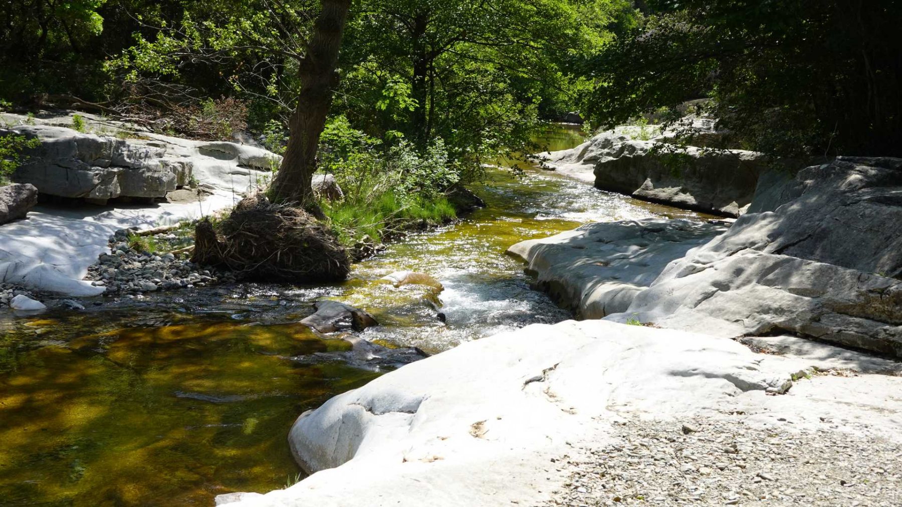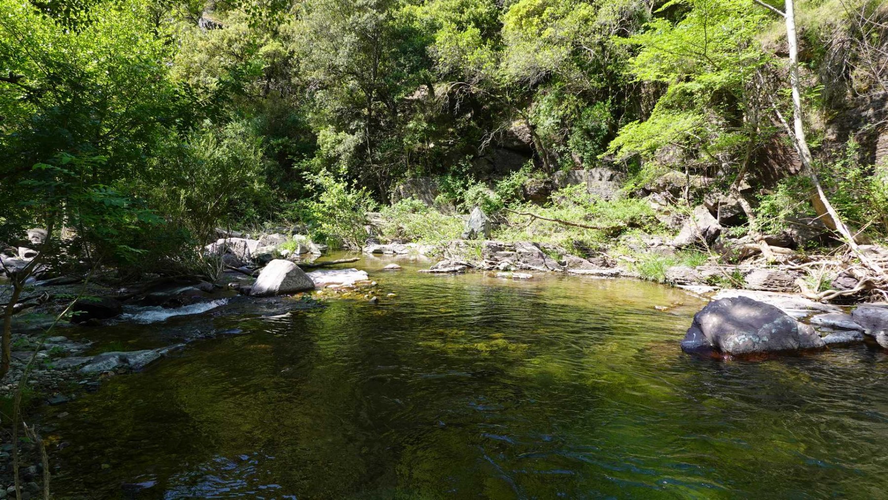 La remontée au fond du canyon jusqu’à une rafraîchissante cascade : enchanteur. Les formations géologiques étonnantes (marmites, grotte, cheminées de fées, schistes, etc… lire topo RC).
