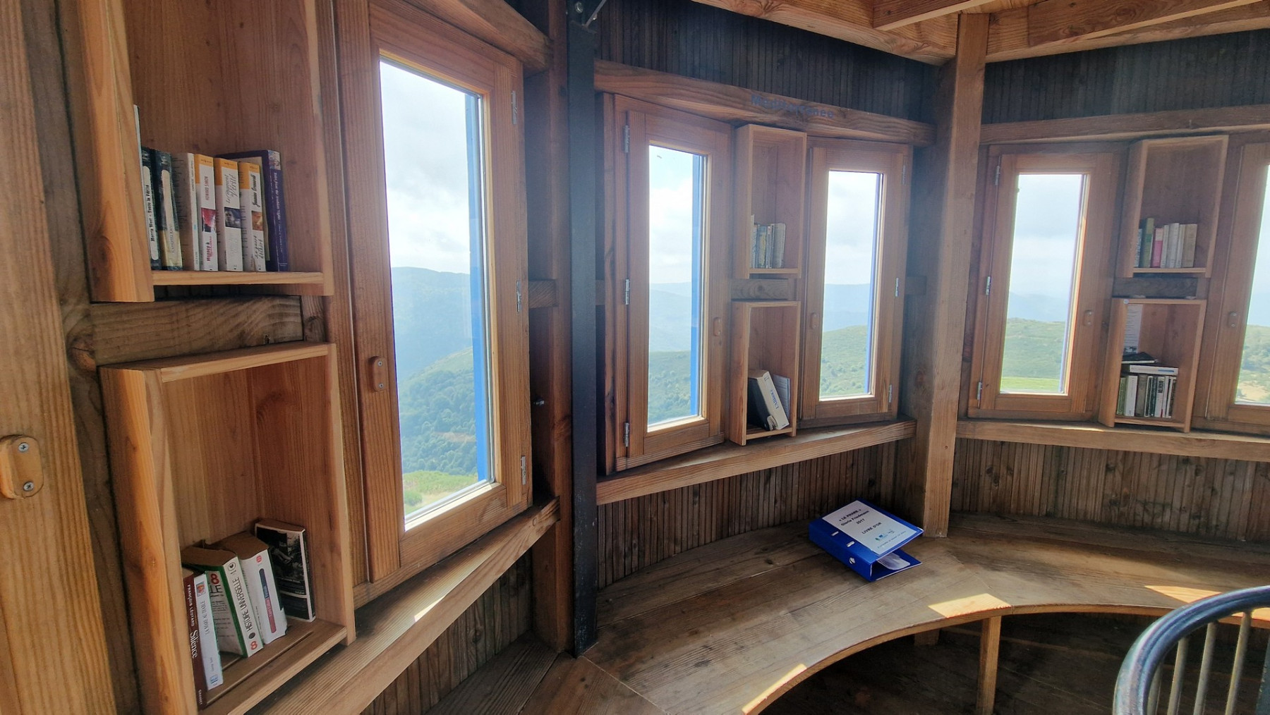 Déci, delà, sur le parcours des œuvres artistiques* comme cet incongru phare, véritable bibliothèque au milieu de nulle part dont seule la couleur bleu évoque la mer, pas la moindre mouette ! ou encore ce banc qui nous servit pour le pique-nique (acte sacrilège ?)
