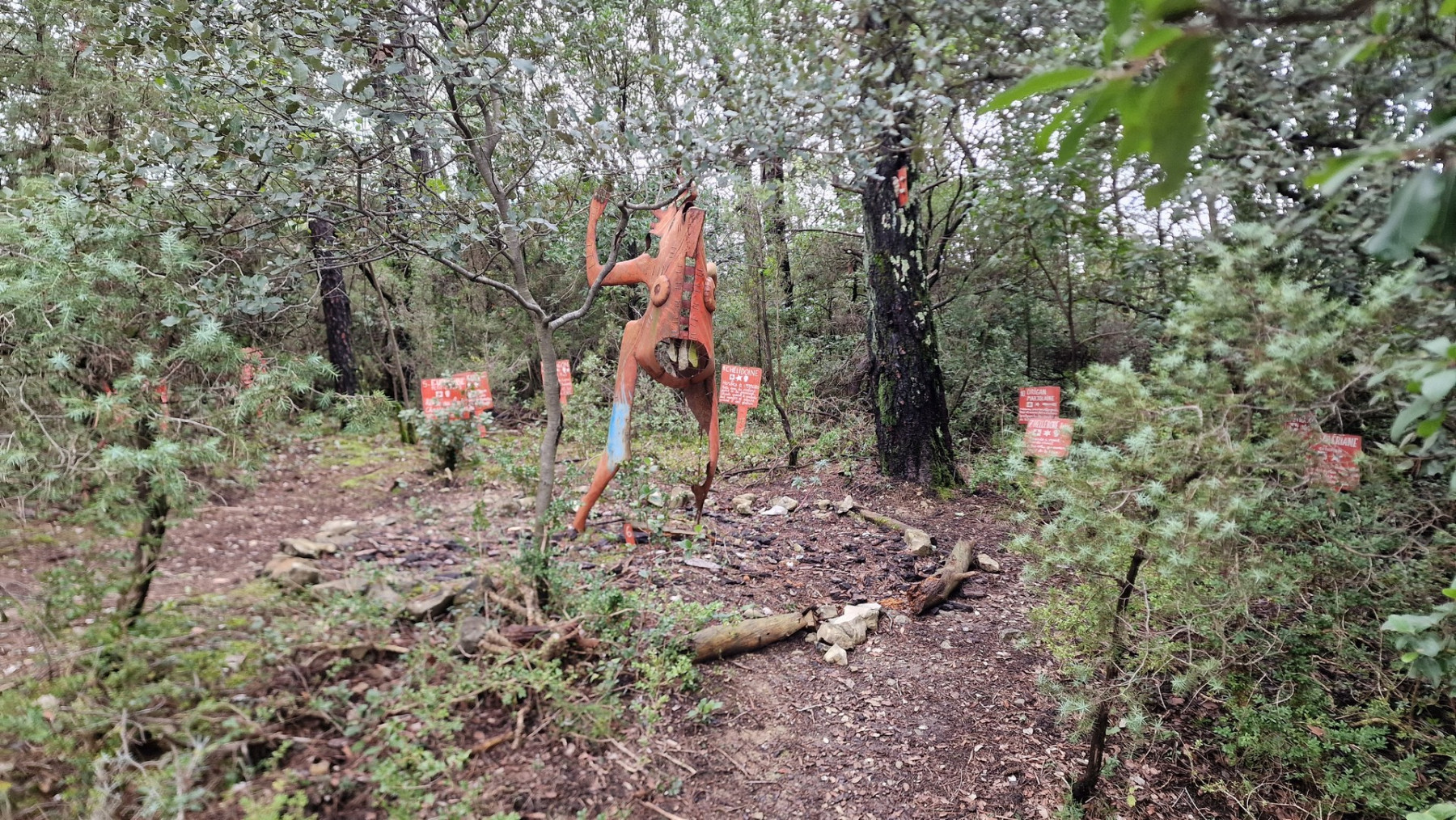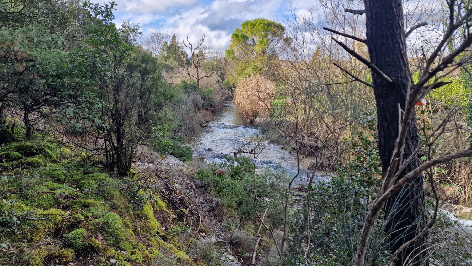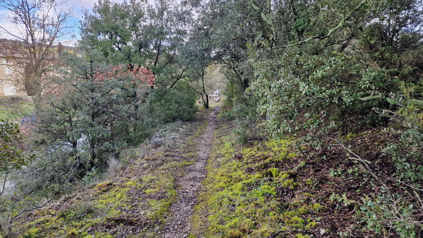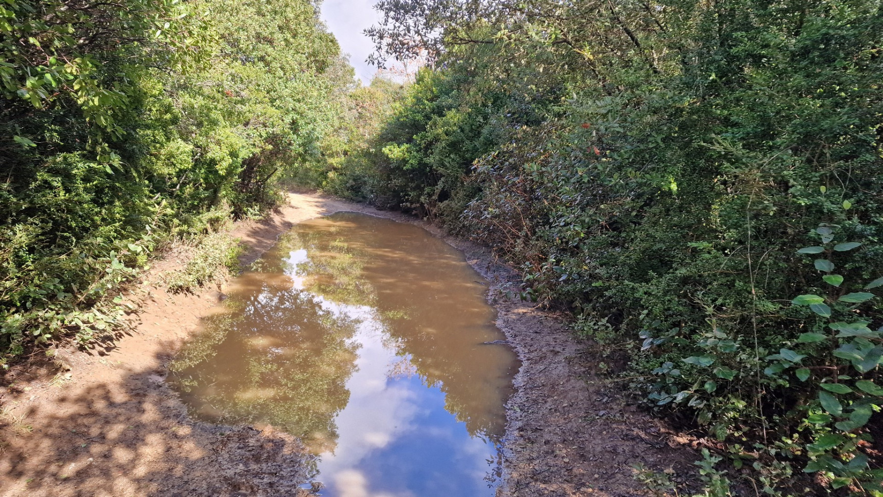 b. Soit il y a beaucoup d’eau, et dans ce cas vous empruntez un sentier fortement envahi de ronces et de salsepareilles (lors de notre visite, usage intensif du sécateur sur 200 m !). - Note (sur 20) : 15