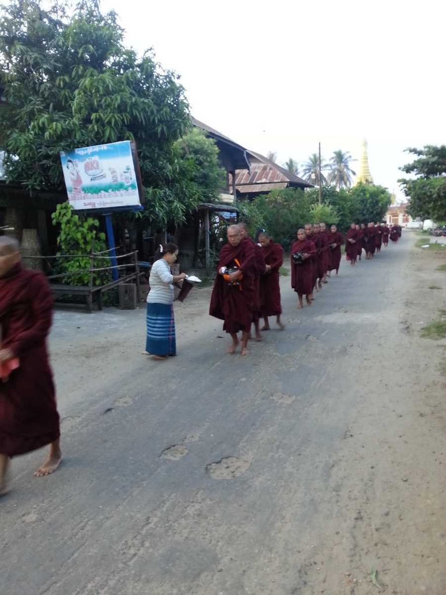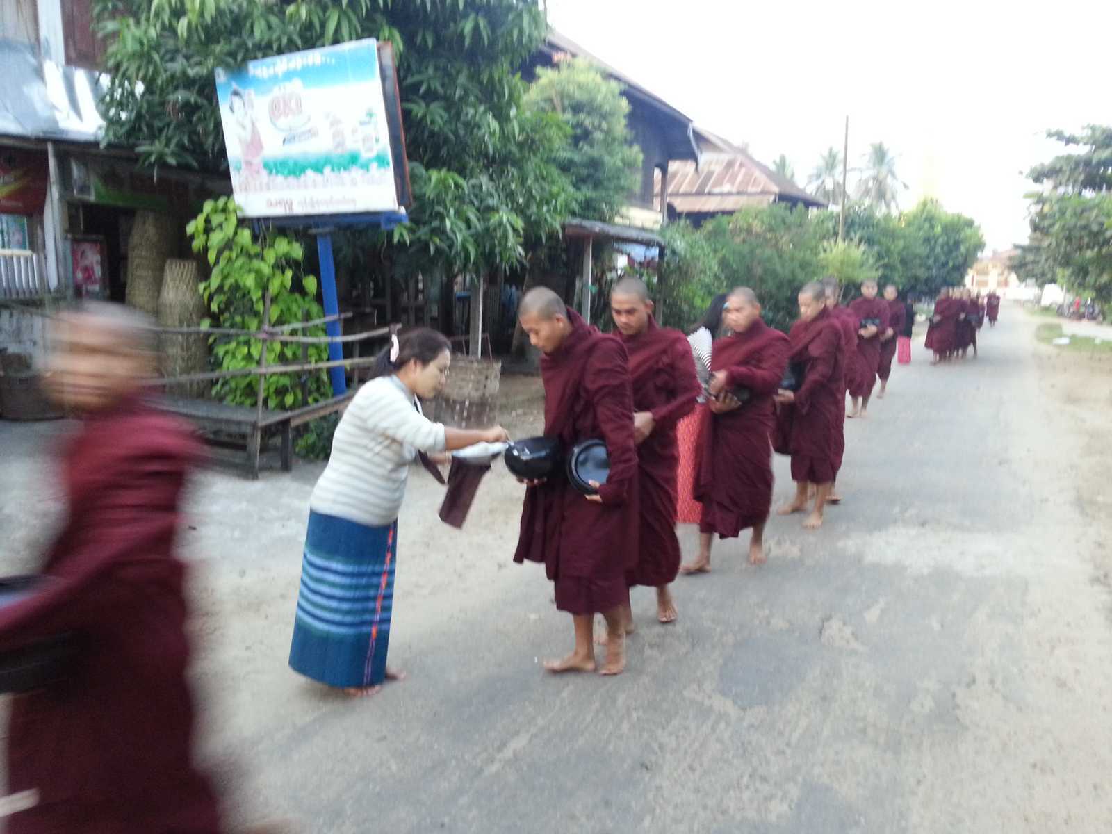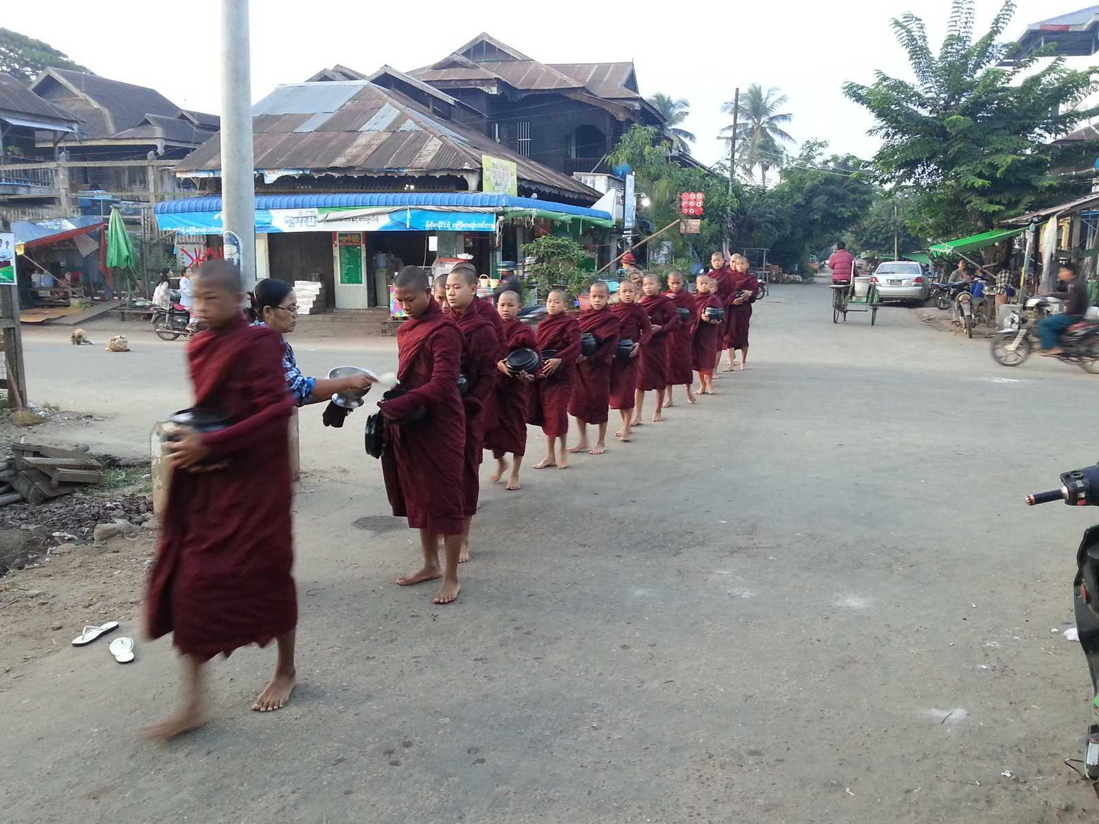 - distribution du petit déjeuner aux bonzes (hommes puis femmes)