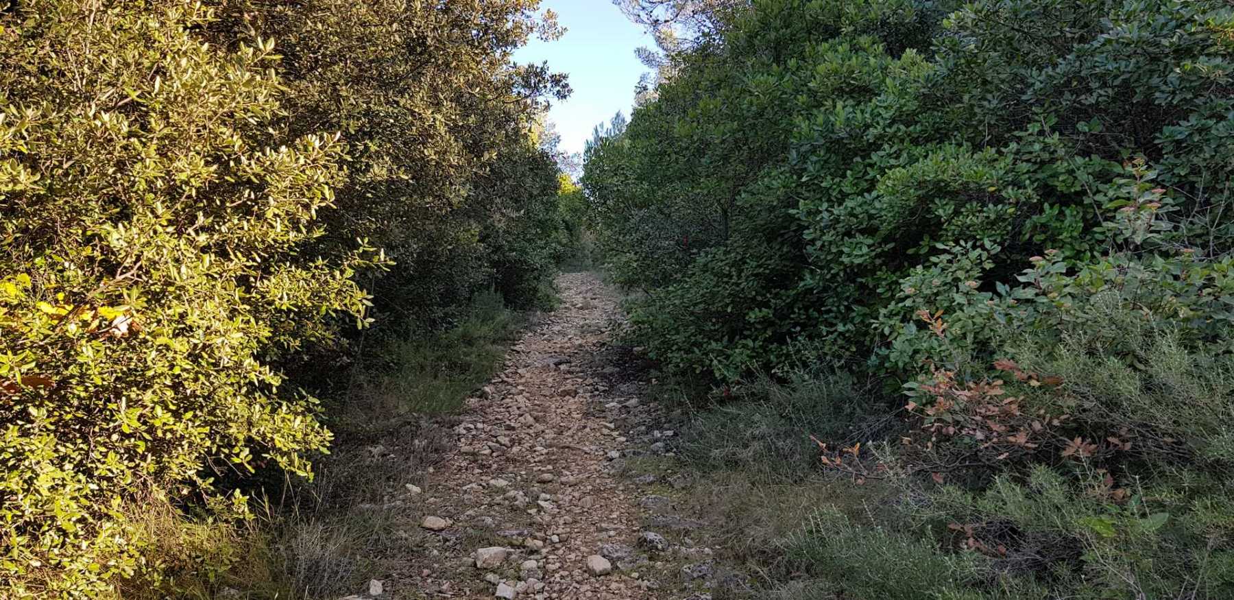 - Commentaires : Longue balade empruntant un sentier de petite randonnée (balisage jaune). On découvre le terroir languedocien typique : vigne, garrigue, forêt de chênes et de pins, manades avec pâturage pour taureaux.