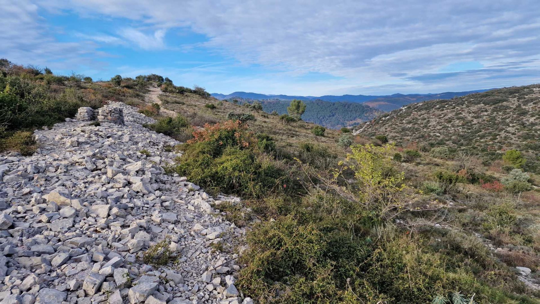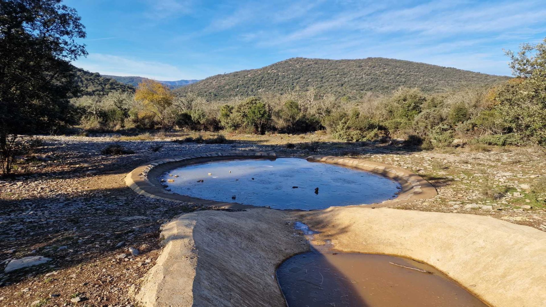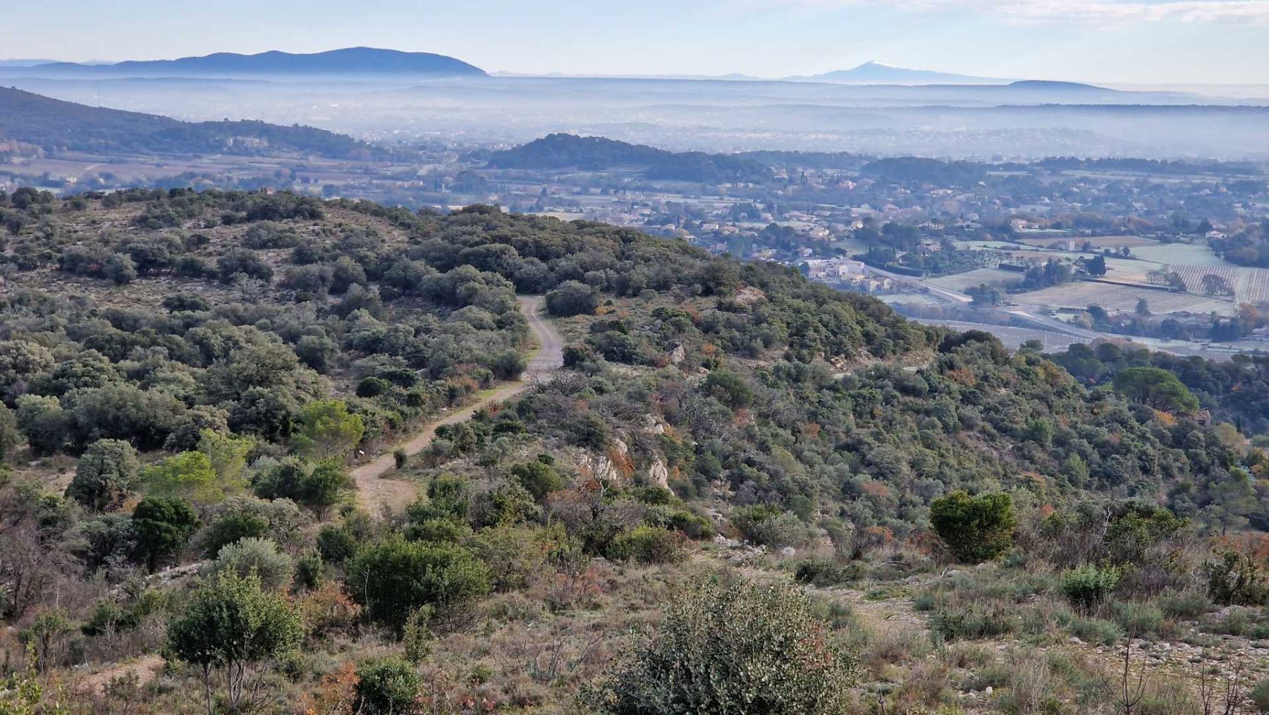 Ensuite, nous empruntons une piste (DFCI), jamais monotone qui permet de découvrir quelques élèments de la vie d’autrefois (Draille, ancienne bergerie et lavogne) et de profiter de très belles vue sur la plaine gardoise et plus loin vers l’est sur les Alpilles et le mont Ventoux.