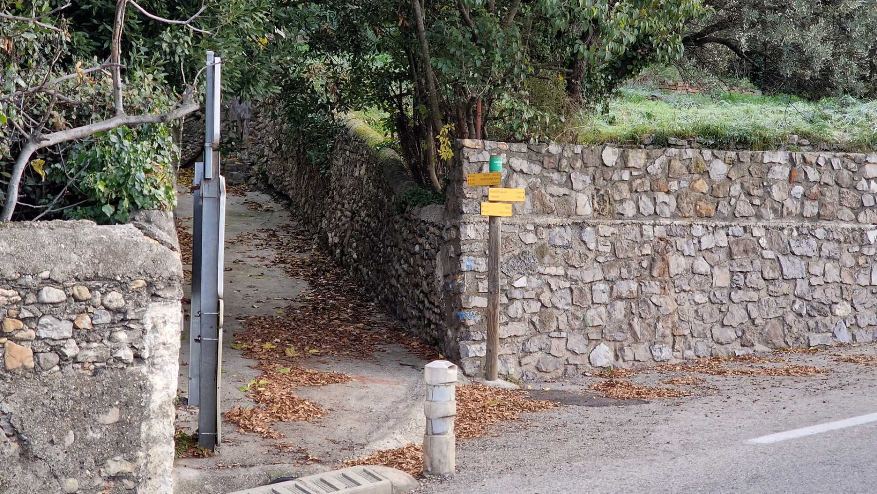Ensuite, grâce à plusieurs sympathiques sentiers à partir du Km 6,4 (en particuier la portion entre le Km 9,5 et 12 : qualifiée de non repertoriée sur la carte ci-dessous) on rejoint les ruines du château de Pouillan.