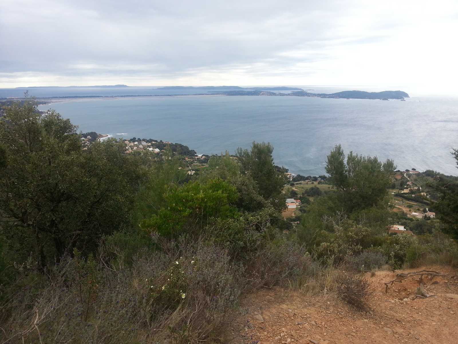 Très belles vues sur tout ce littoral : de la presqu’île de Giens, les îles du levant, jusqu’à la rade de Toulon.