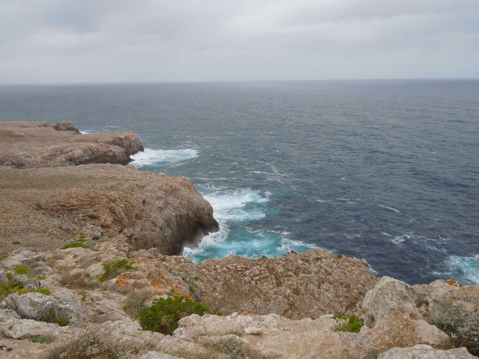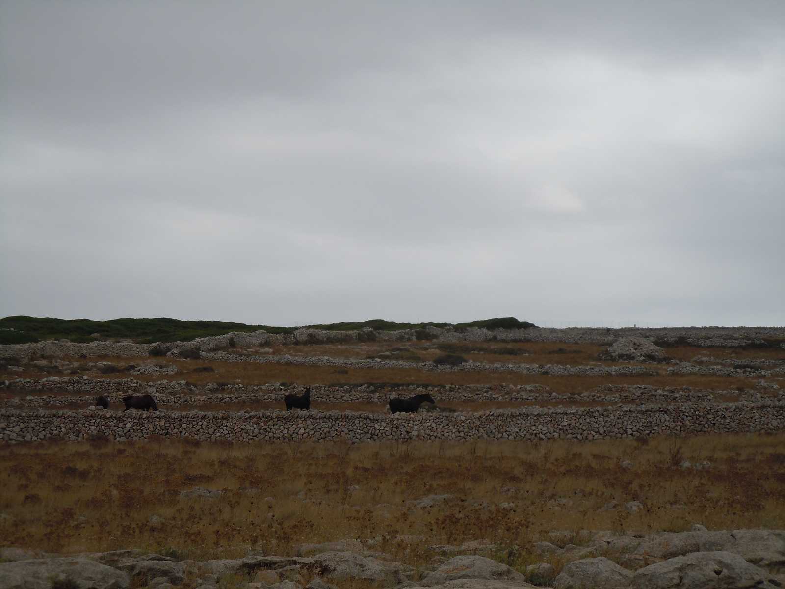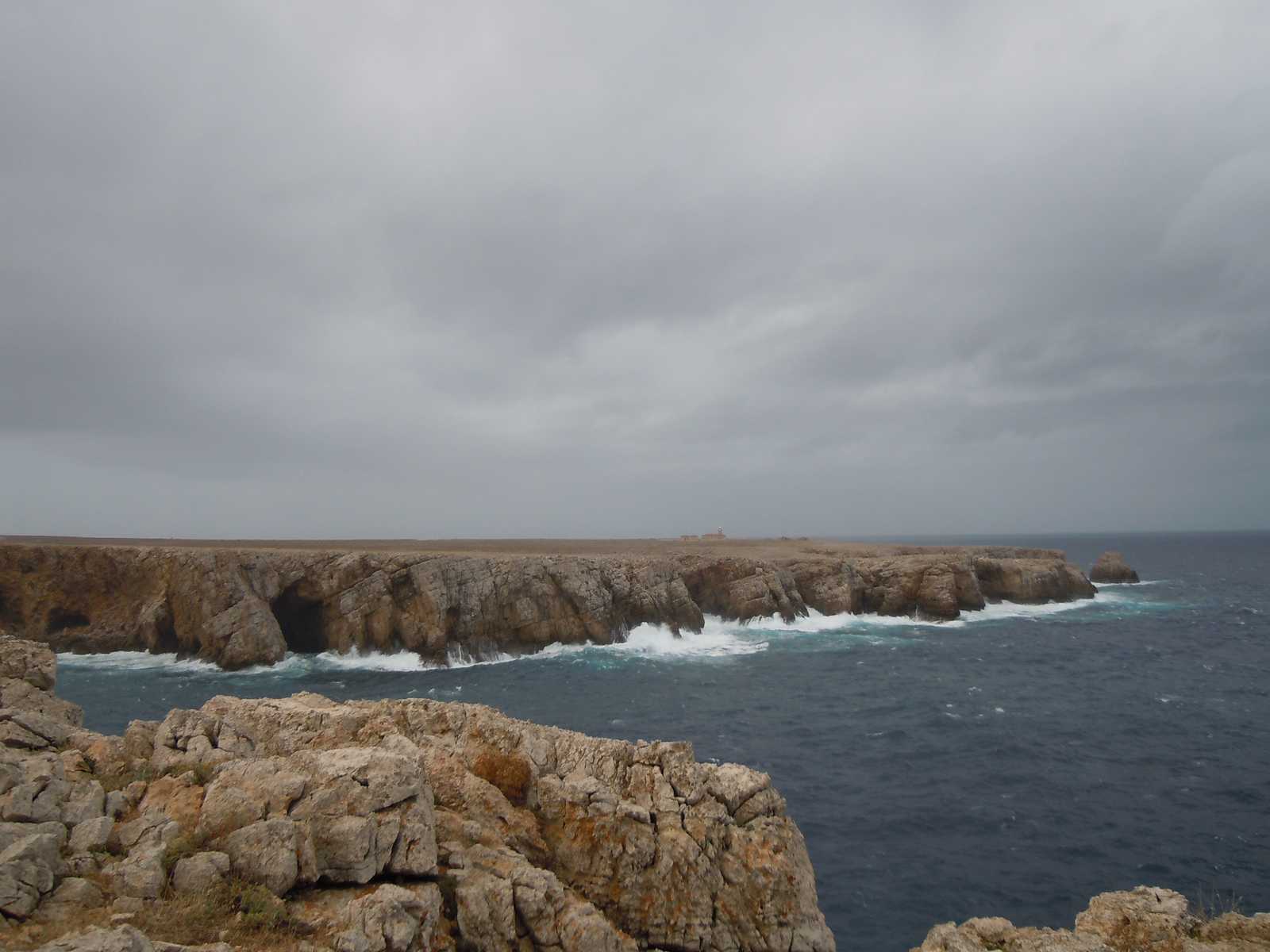 Départ de Ciutadella (Capitale ouest de l’île) par le bus, pour un retour le long d’une côte très minérale (paturage très pauvre, falaises) sauvage et battue par le vent.