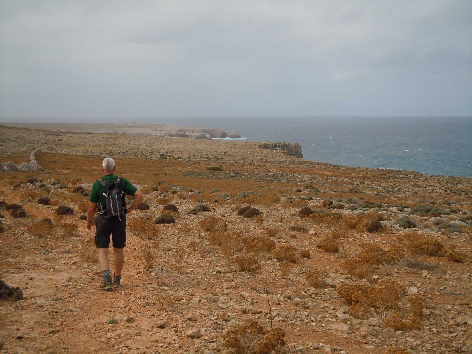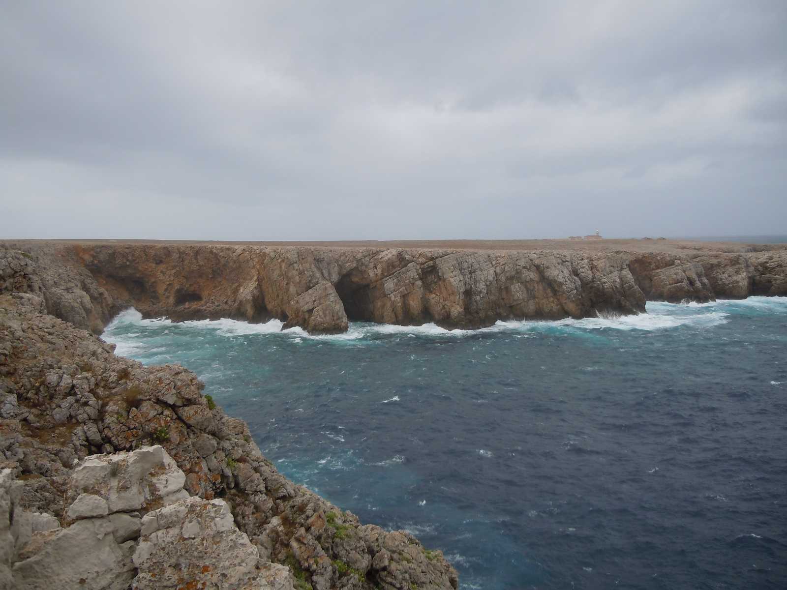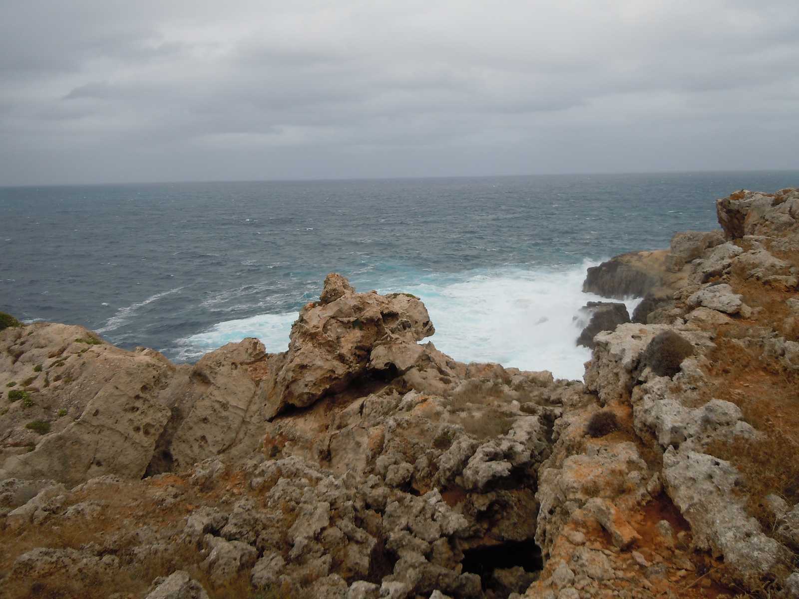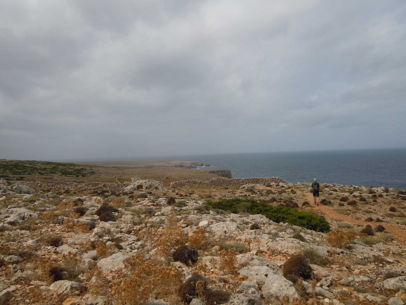 Départ de Ciutadella (Capitale ouest de l’île) par le bus, pour un retour le long d’une côte très minérale (paturage très pauvre, falaises) sauvage et battue par le vent.