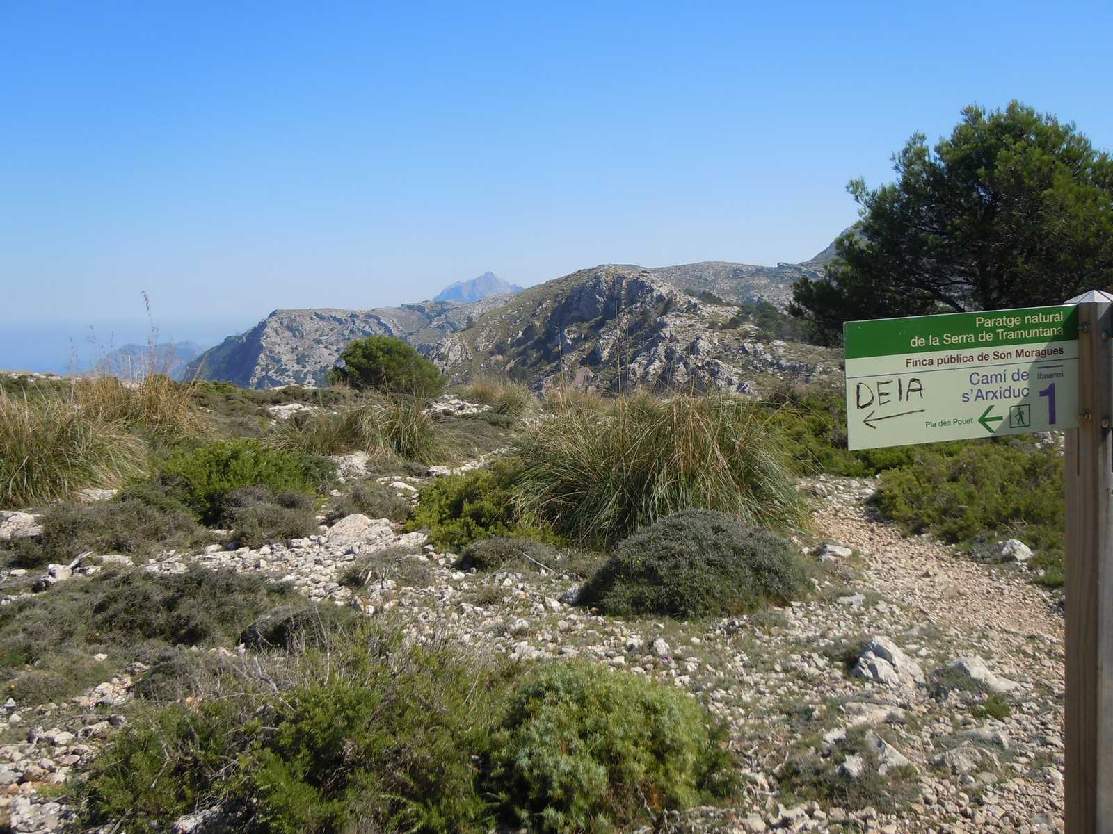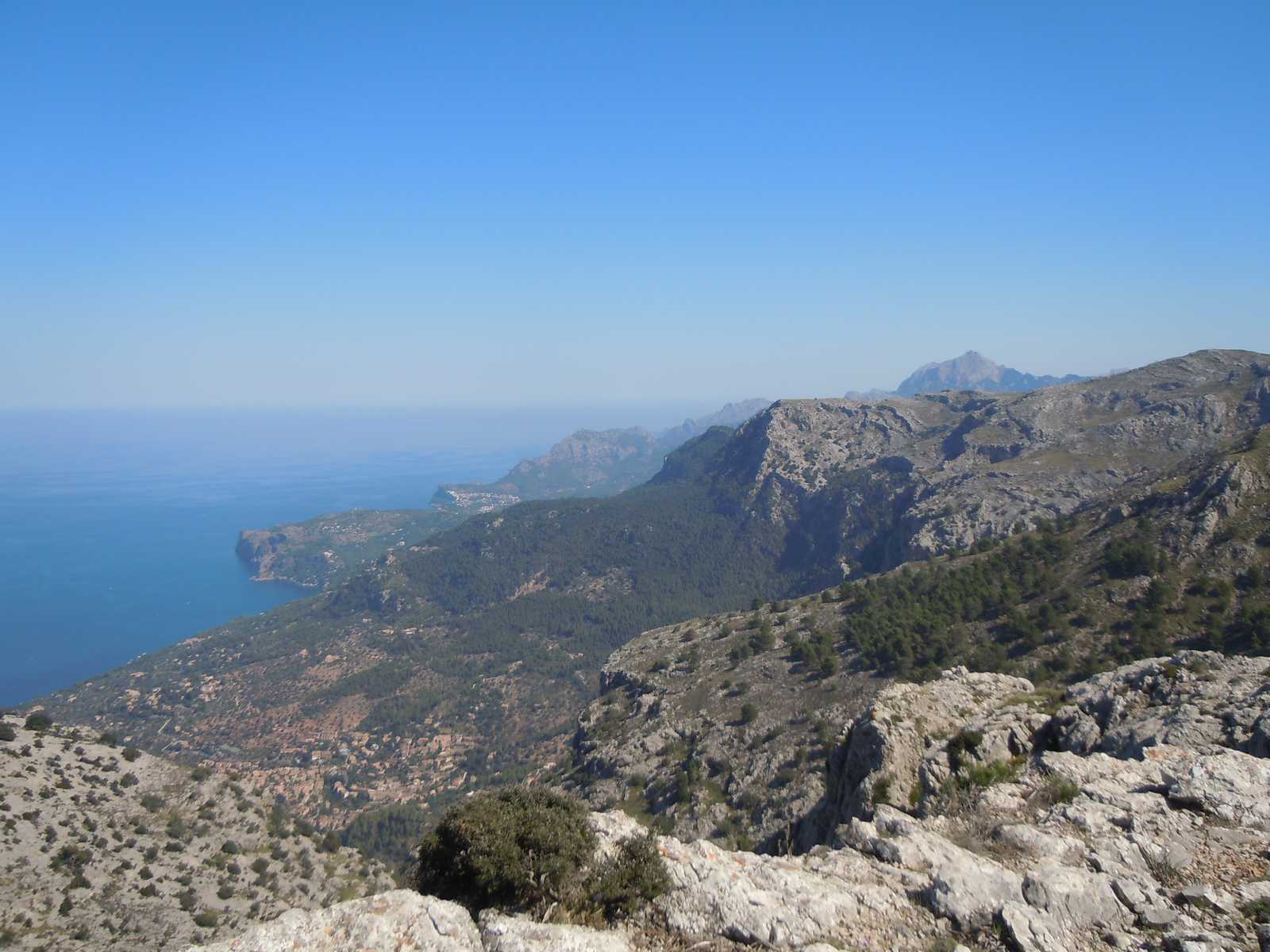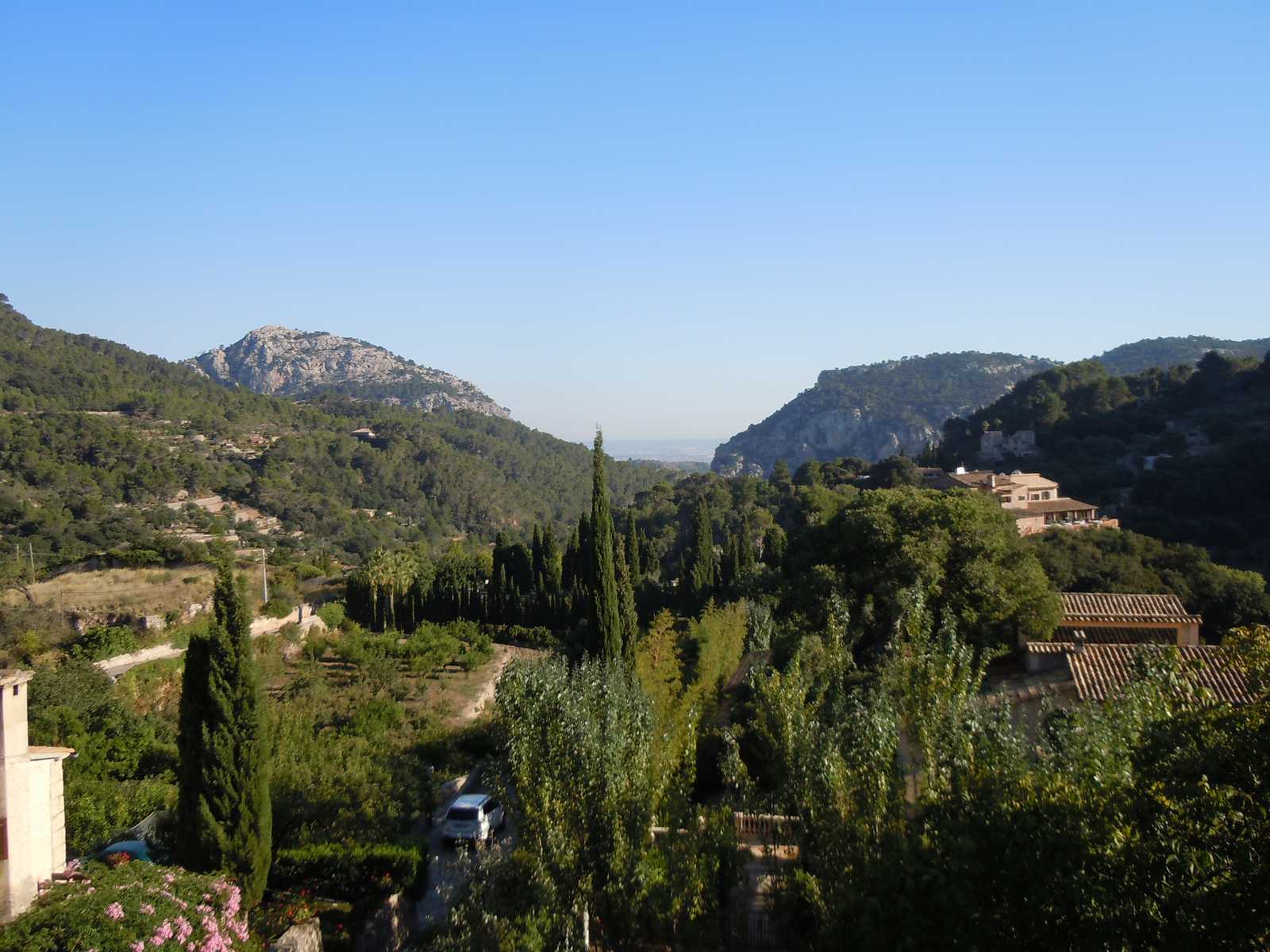 Sur le plateau de très belles vues sur le littoral nord jusqu’à Deia. Descente le long d’un torrent. Visite de la ville