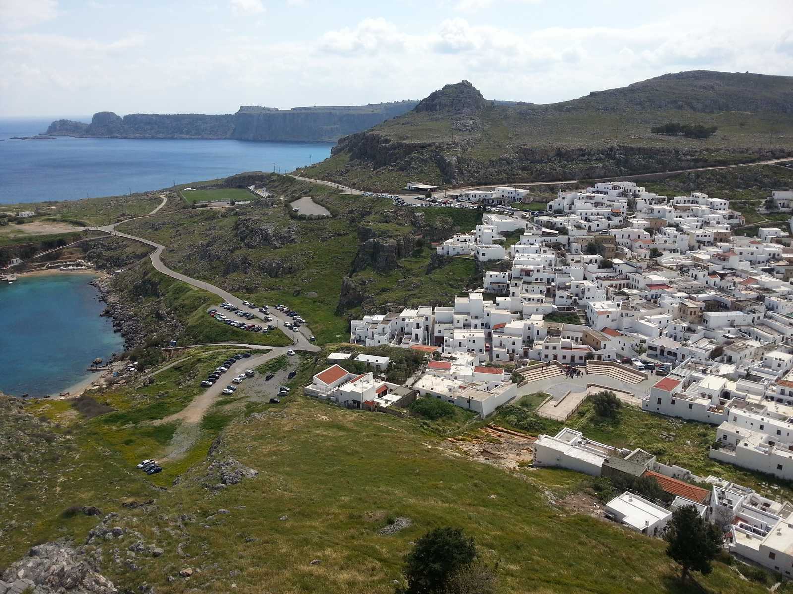 - Commentaires : Une forteresse et un temple sur les hauteurs, un petit air d’Acropole (seulement un petit air !). A ces pieds un village avec des allures plutôt village de vacances que village typiquement grec !!
