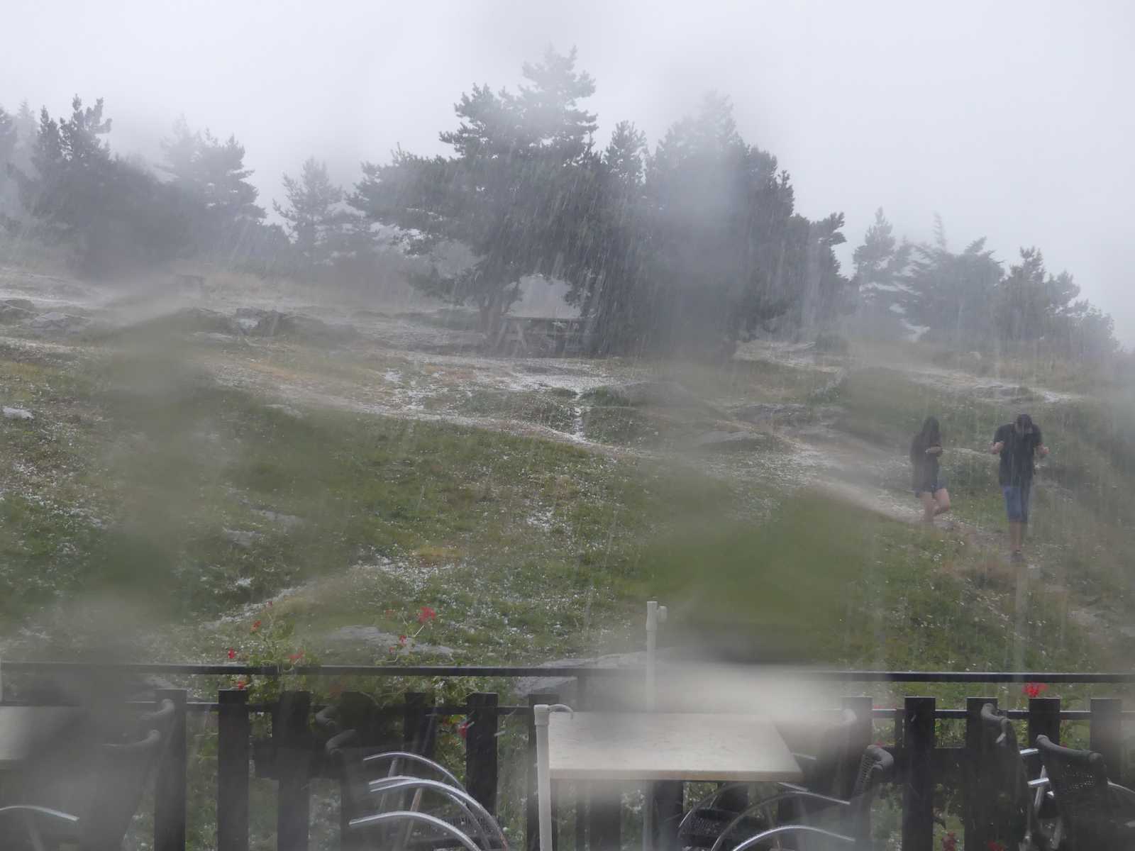 Comme l’orage sévissait, le commerçant nous a fortement déconseillé de faire l’ascension : un mort par la foudre une année précédente !!