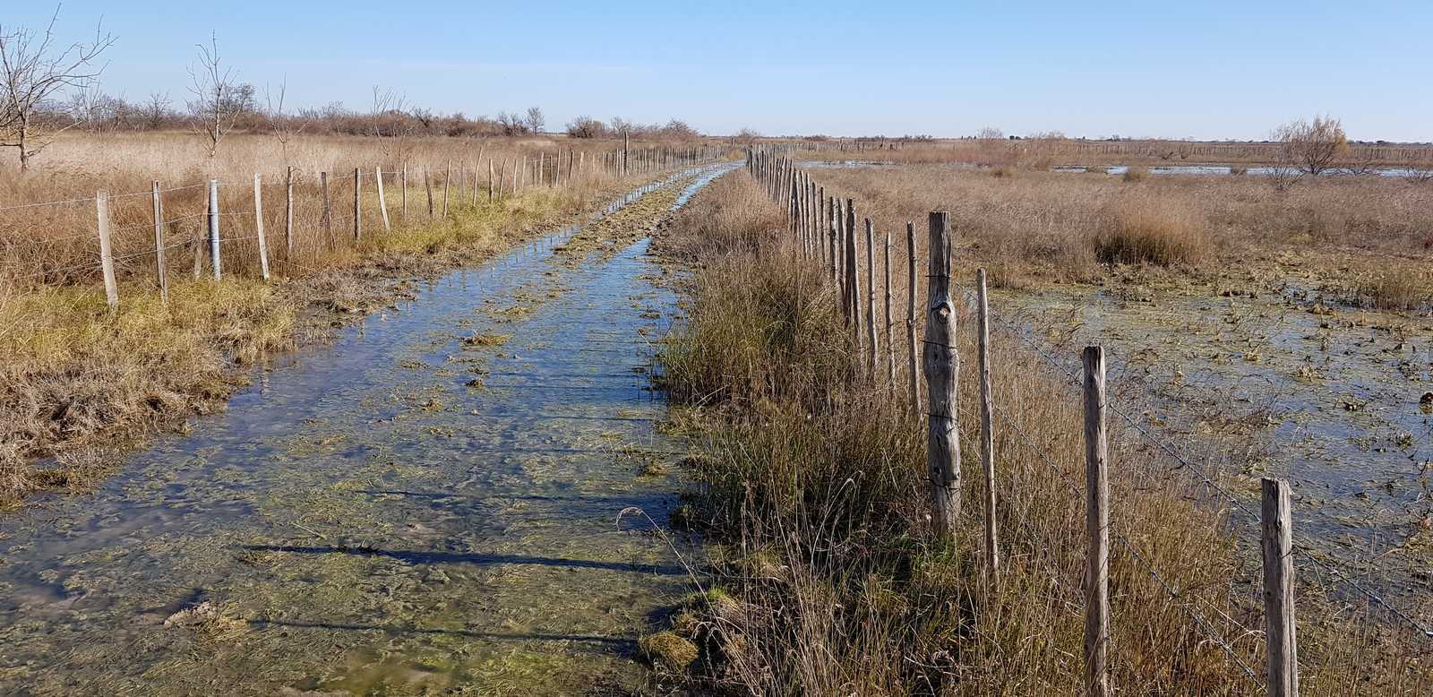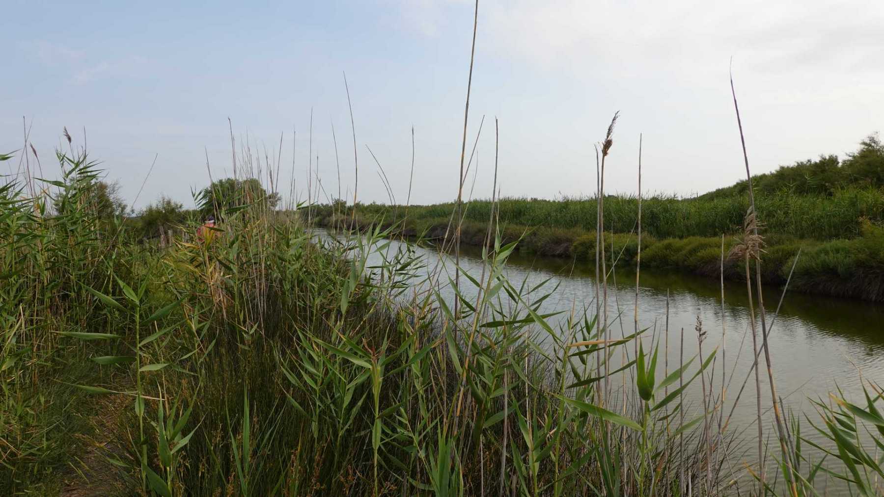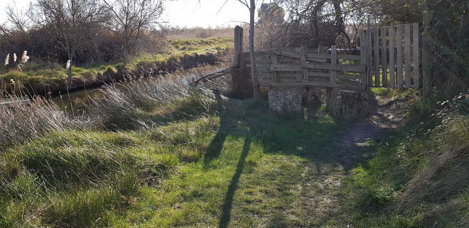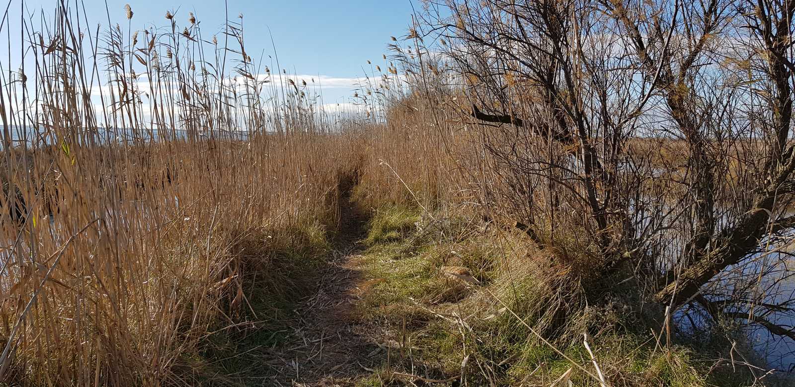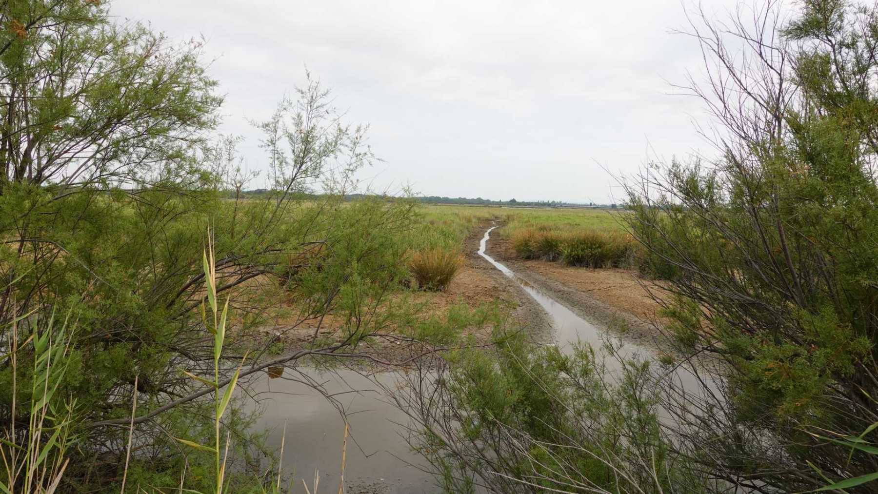 sentiers fermés par les tamaris et roseaux (portion en vert sur la carte ci-dessous)