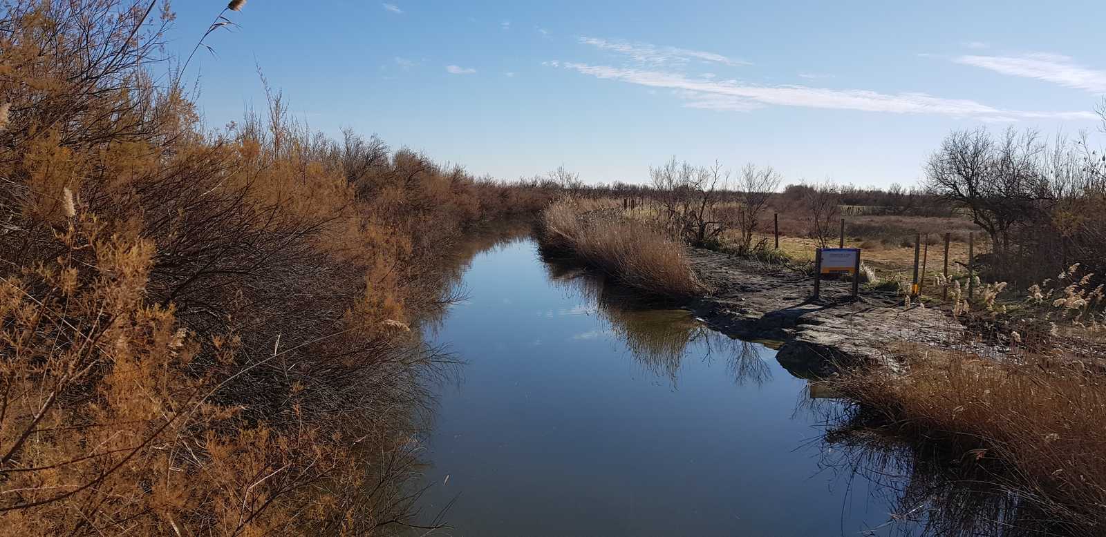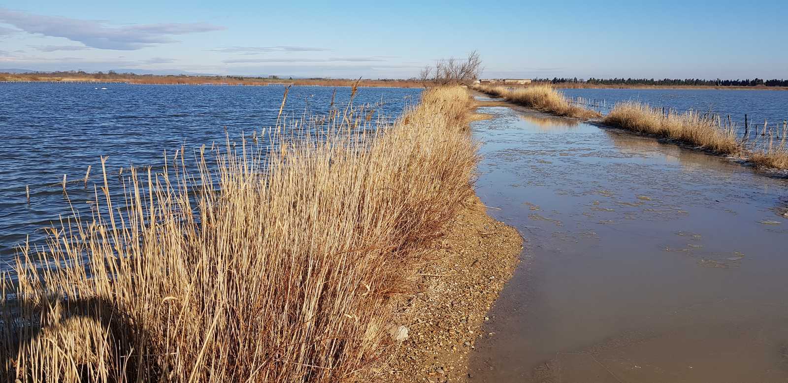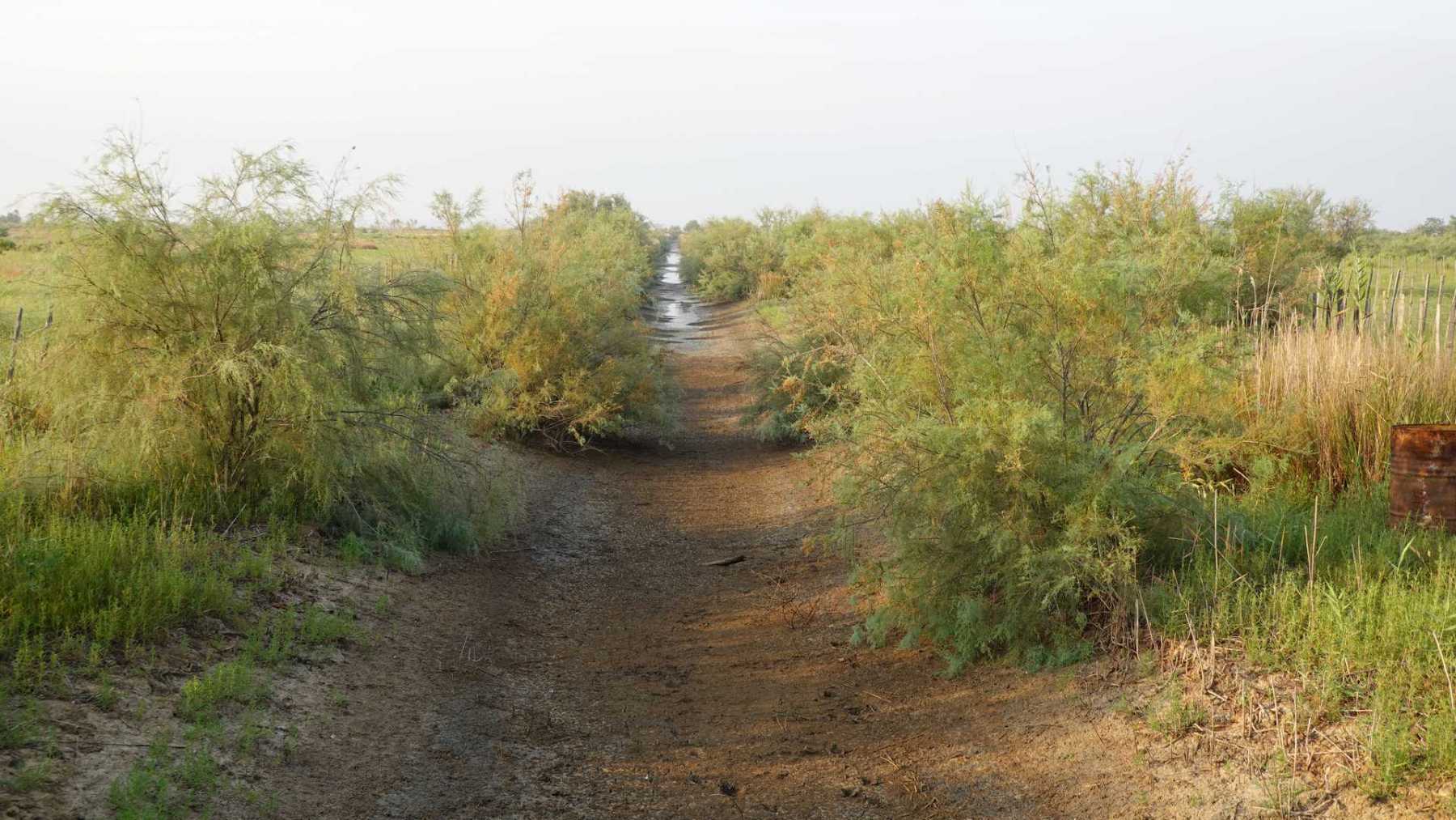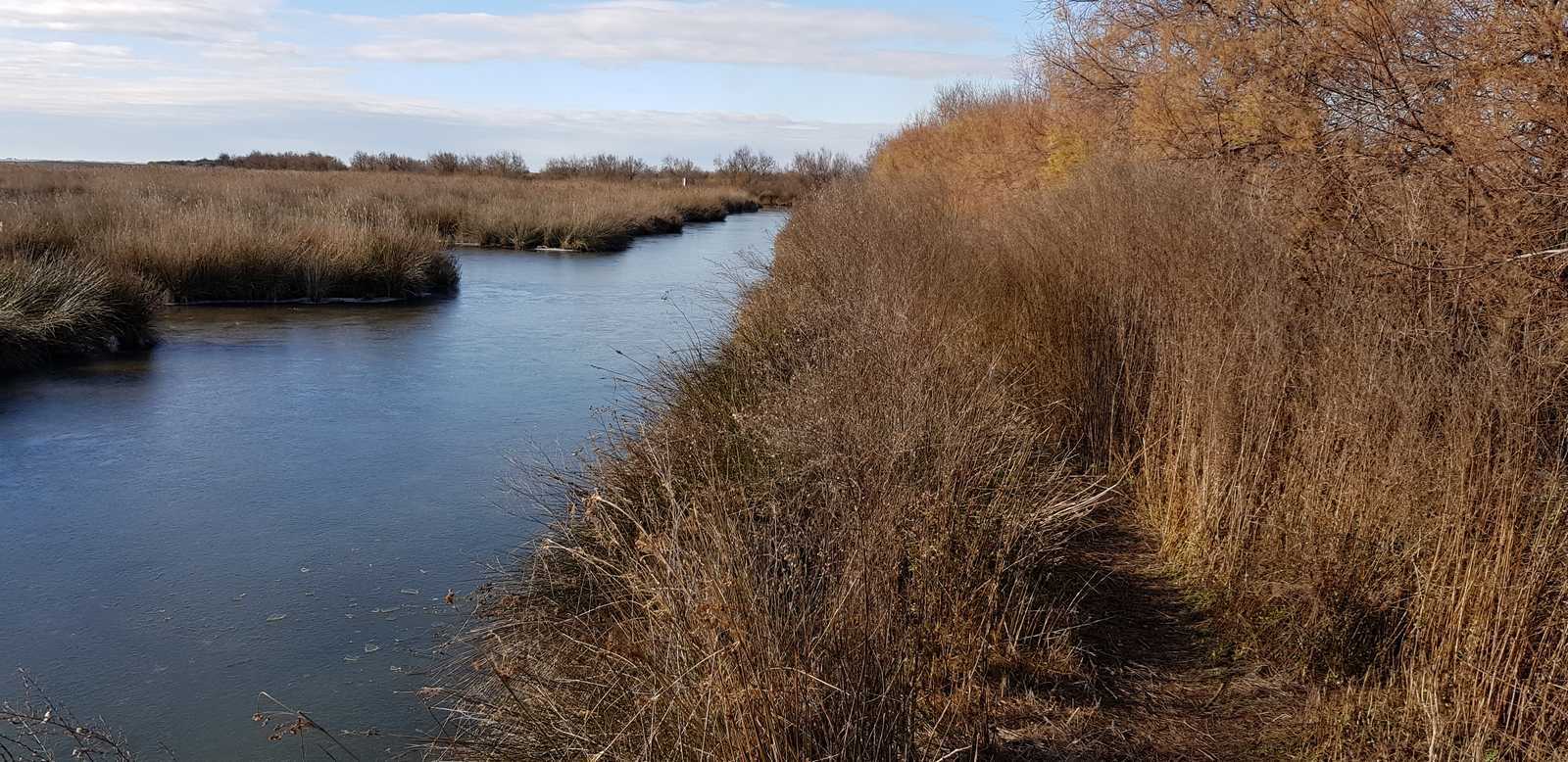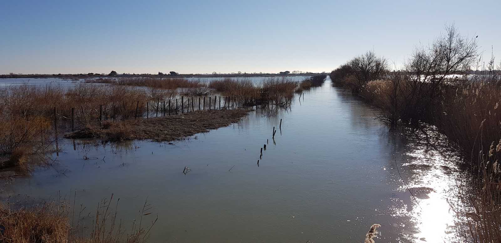 sentiers fermés par les tamaris et roseaux (portion en vert sur la carte ci-dessous)