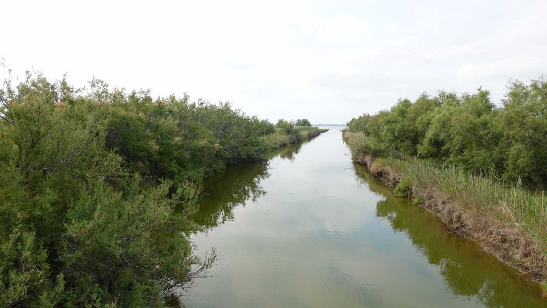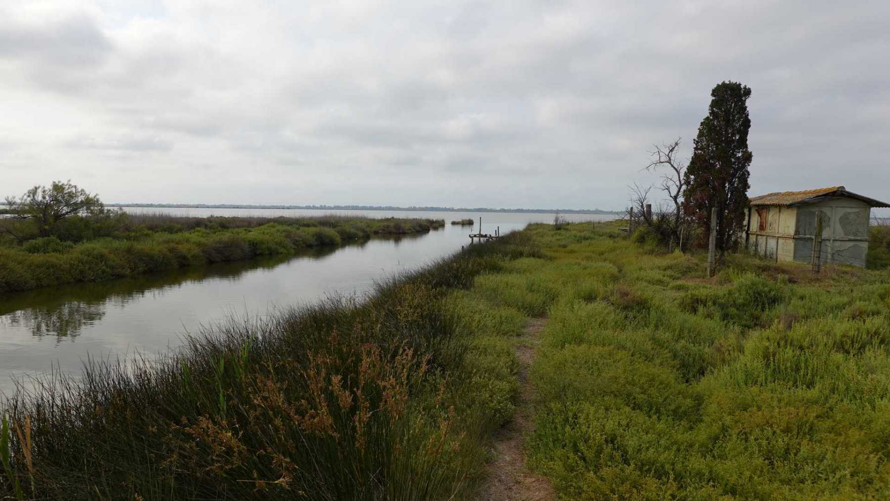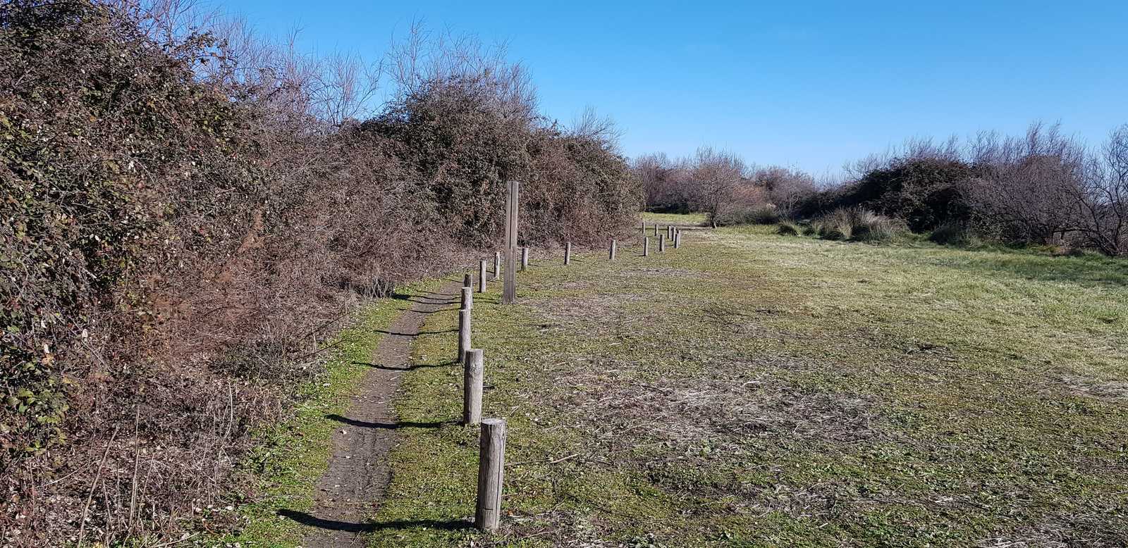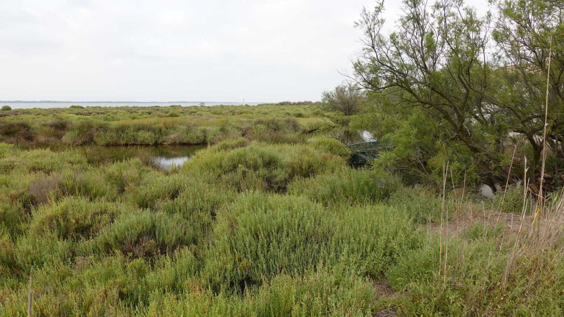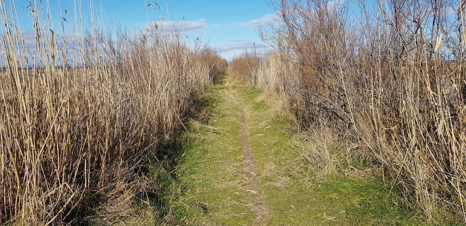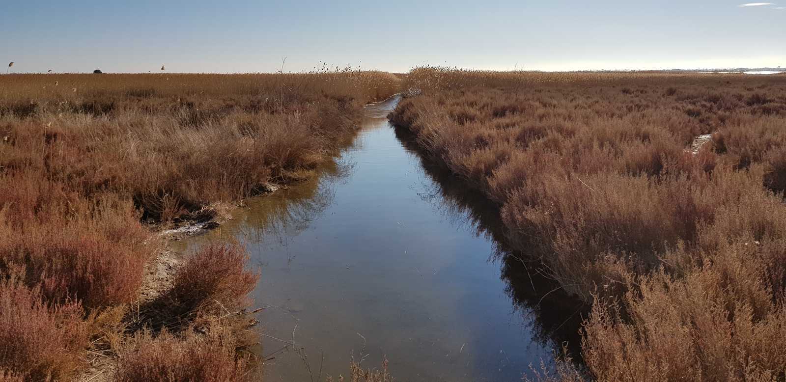 sentiers fermés par les tamaris et roseaux (portion en vert sur la carte ci-dessous)