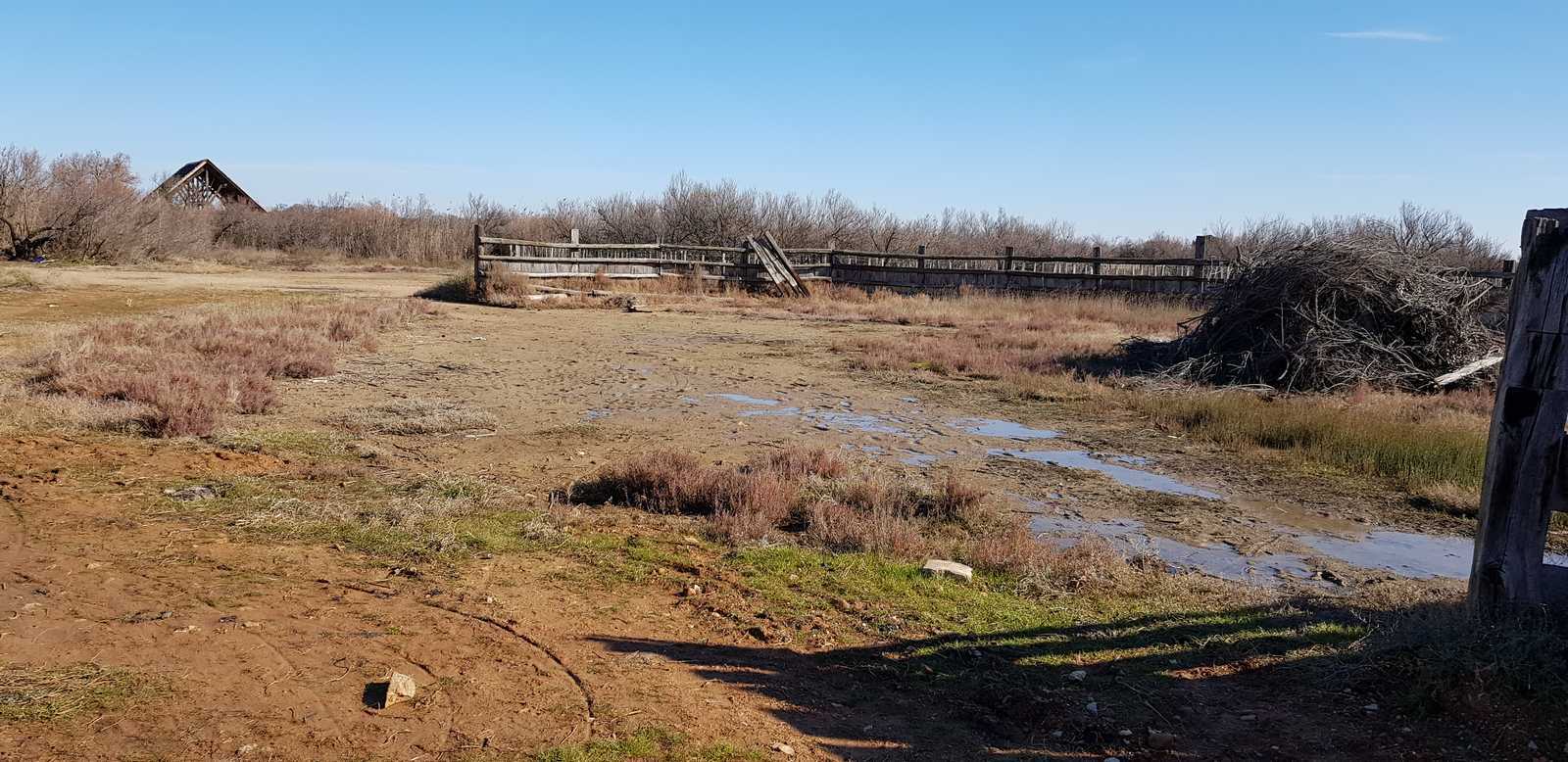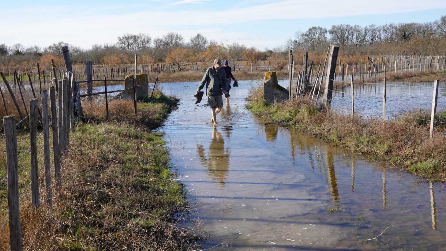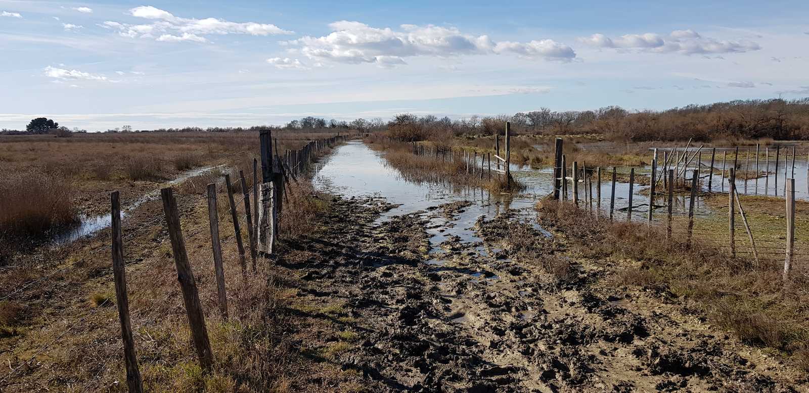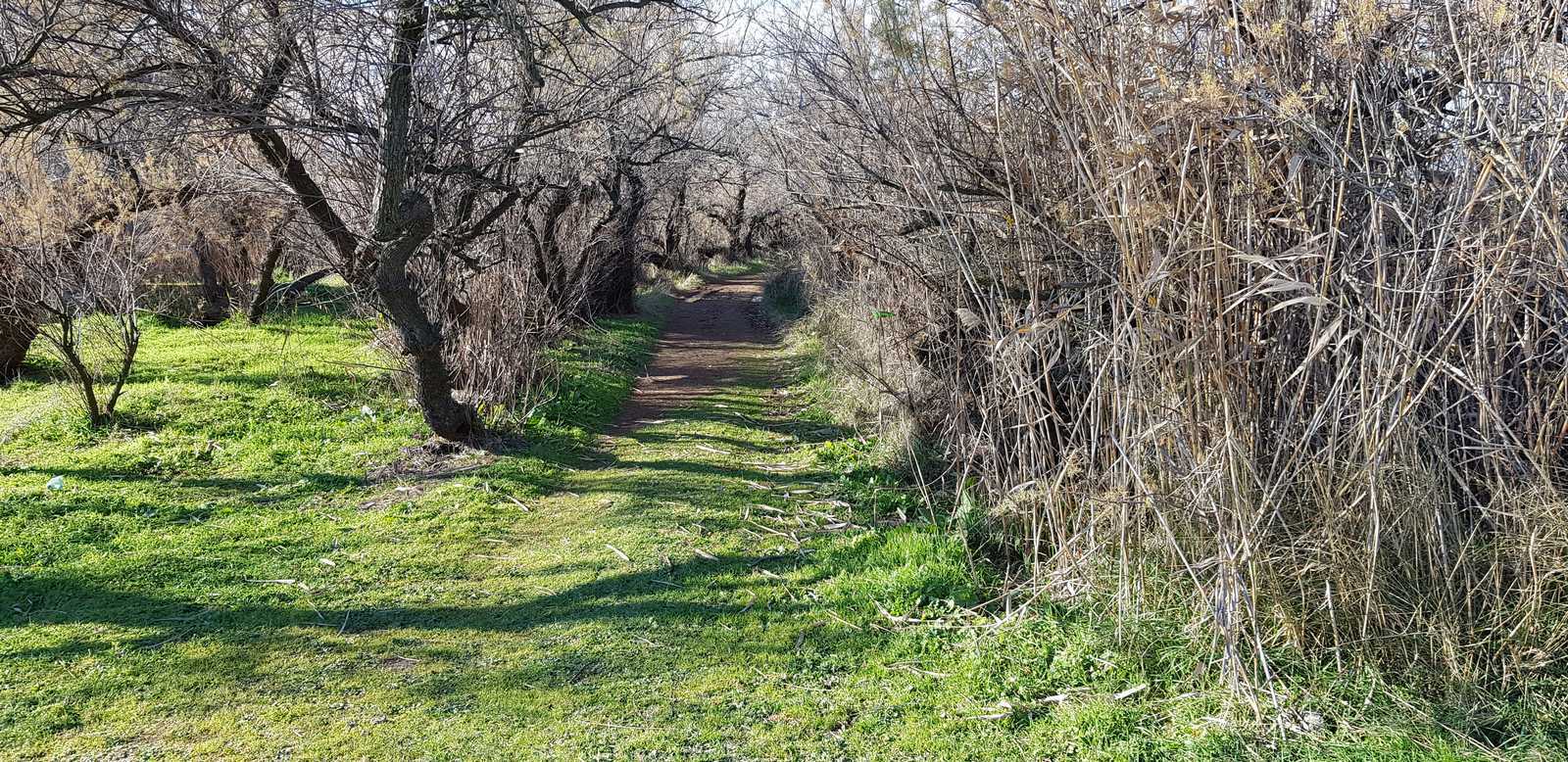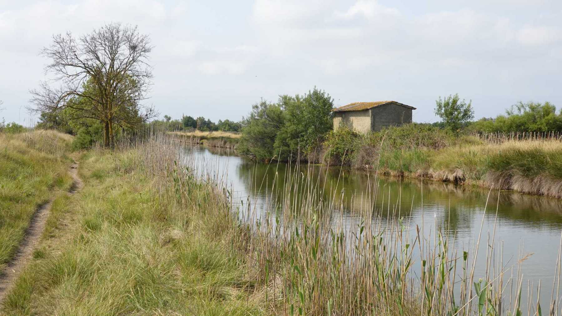 sentiers fermés par les tamaris et roseaux (portion en vert sur la carte ci-dessous)
