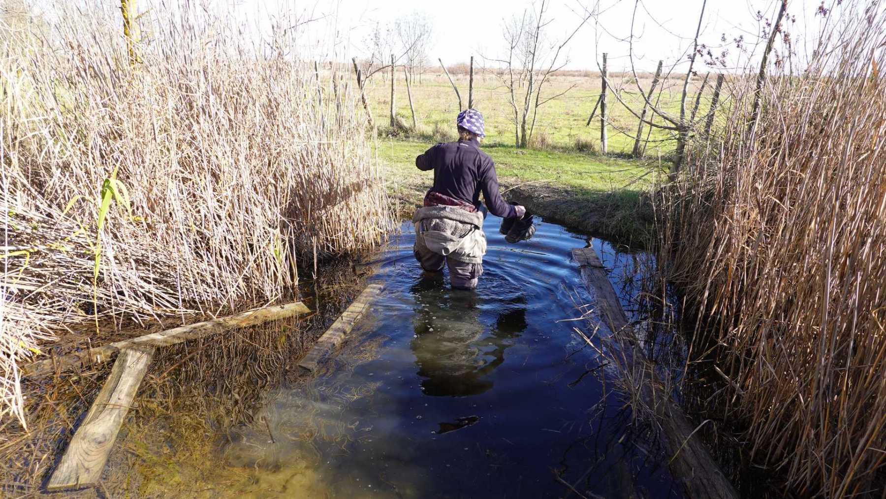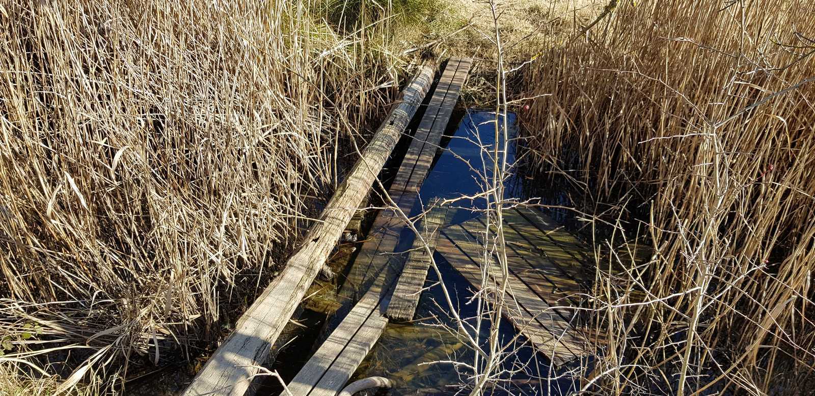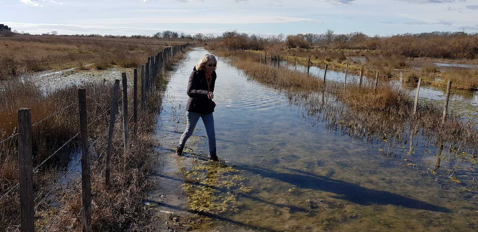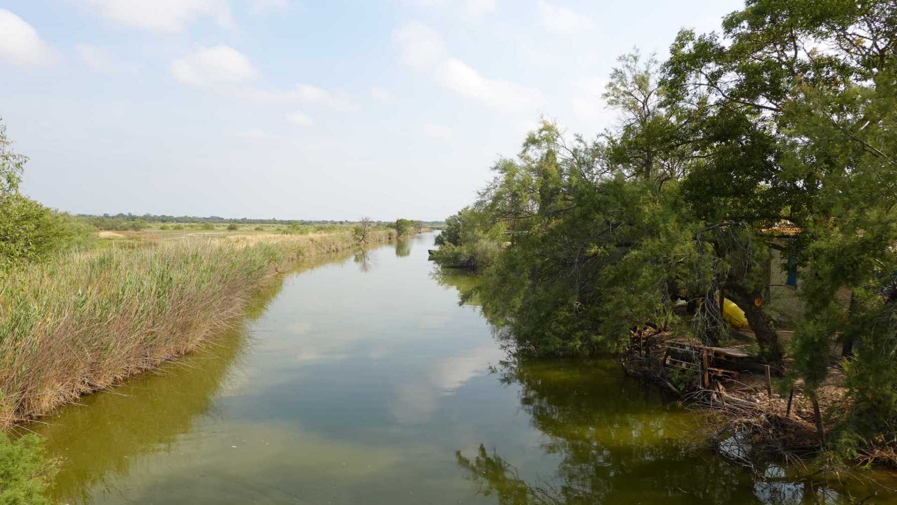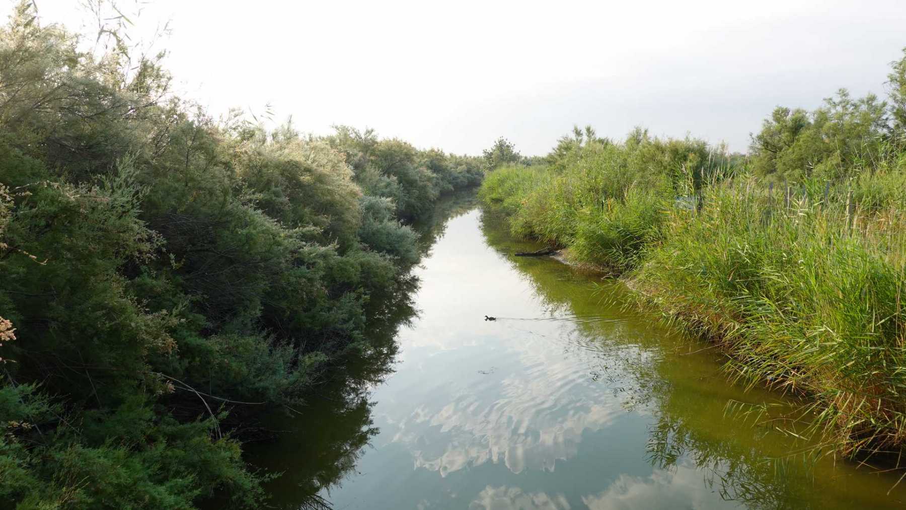 sentiers fermés par les tamaris et roseaux (portion en vert sur la carte ci-dessous)