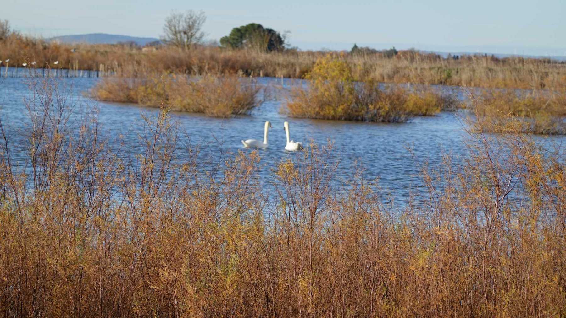 On retrouve toute la faune et la flore de Camargue avec des variations en fonction des périodes migratoires et des saisons.