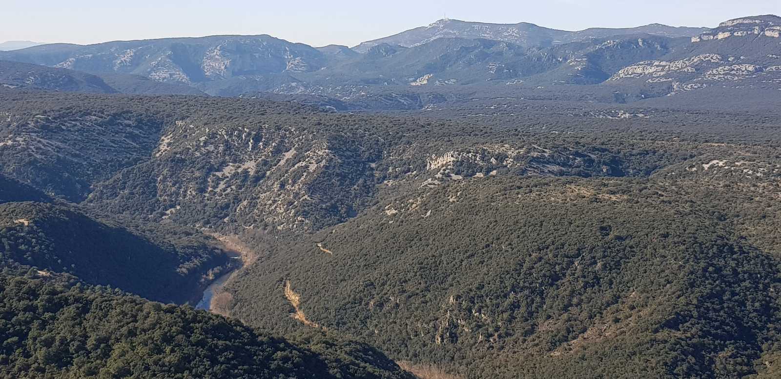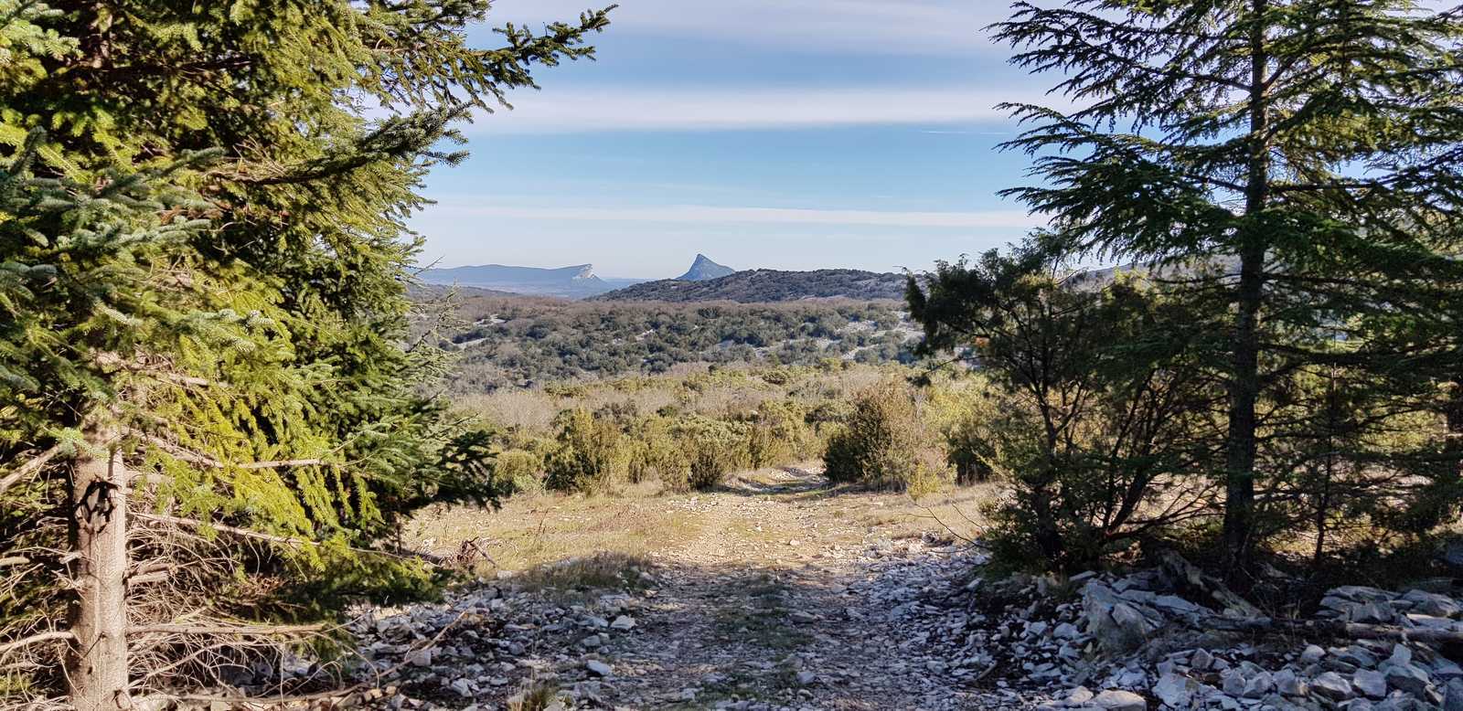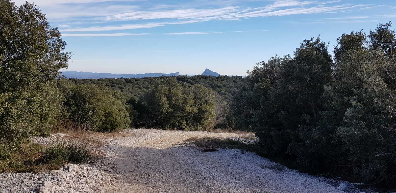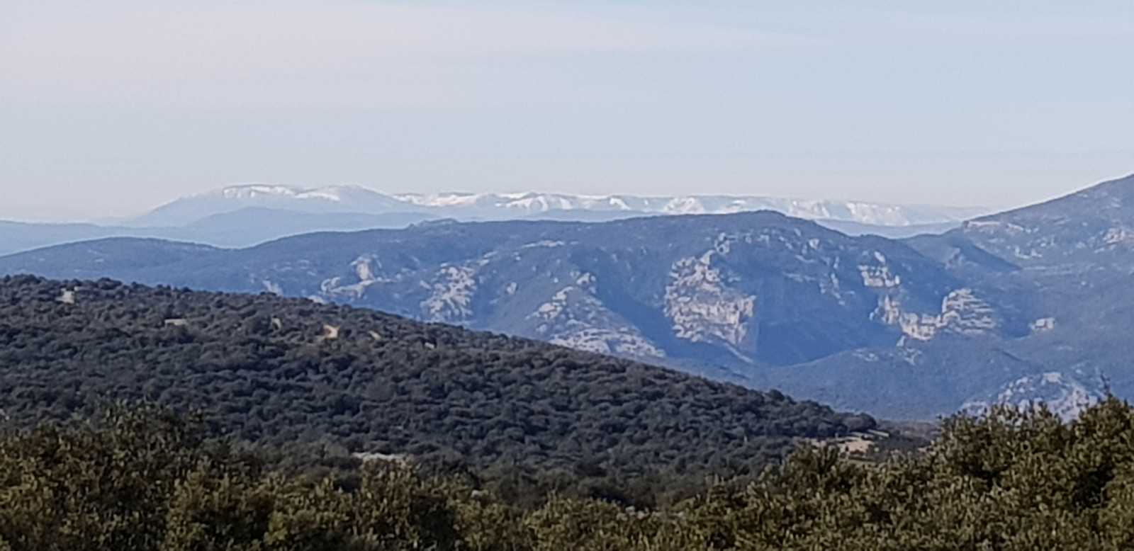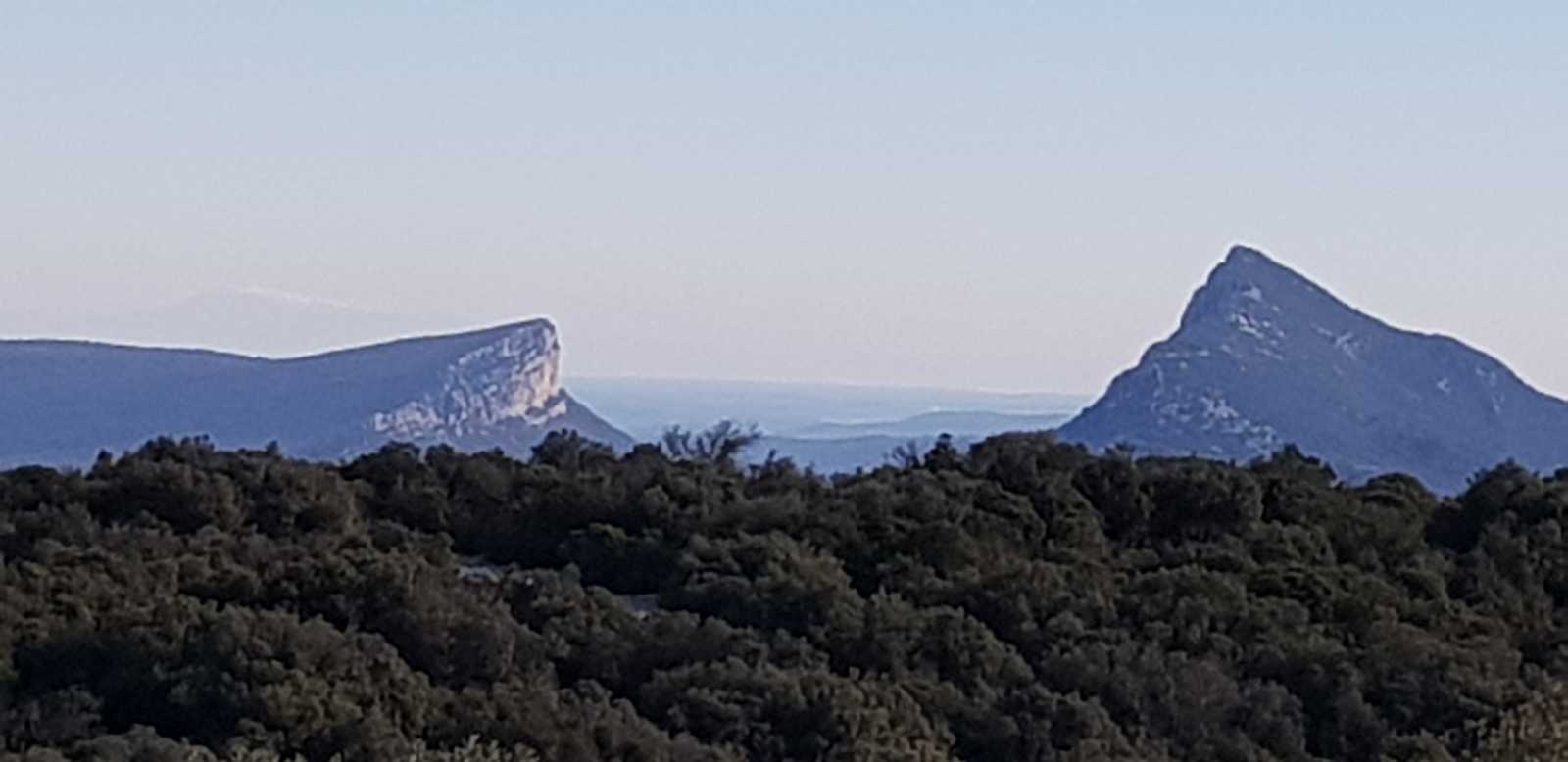 1. la vue proposée au sommet de la Sellette : si le temps est degagé vous apercevez à l’est : Hortus et Pic St Loup et Ventoux, vers le sud la mer et à l’ouest la chaîne des pyrenéées et le massif du Haut Languedoc.